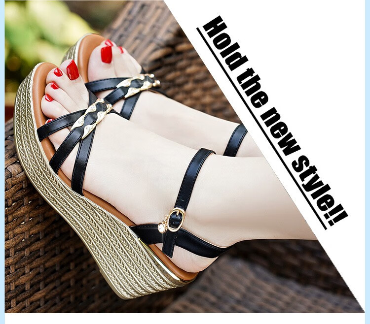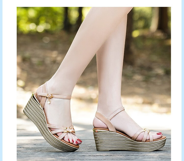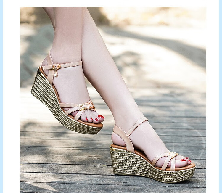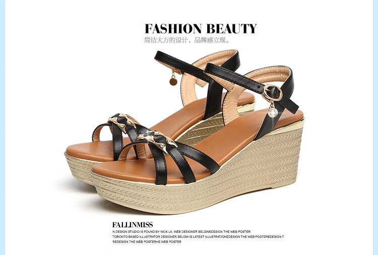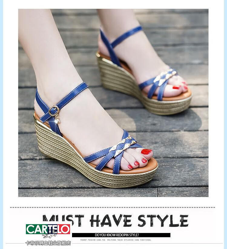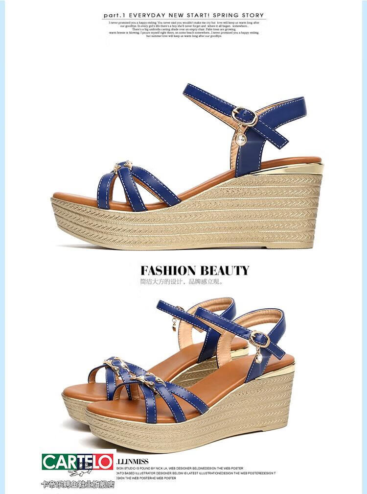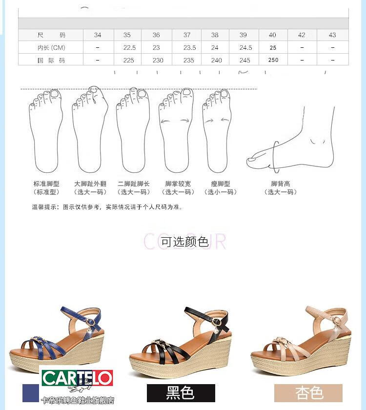 CARTELO genuine leather wedge sandals for women 2026 summer new versatile flat soft sole thick sole high heels women's casual shoes 126 black 37