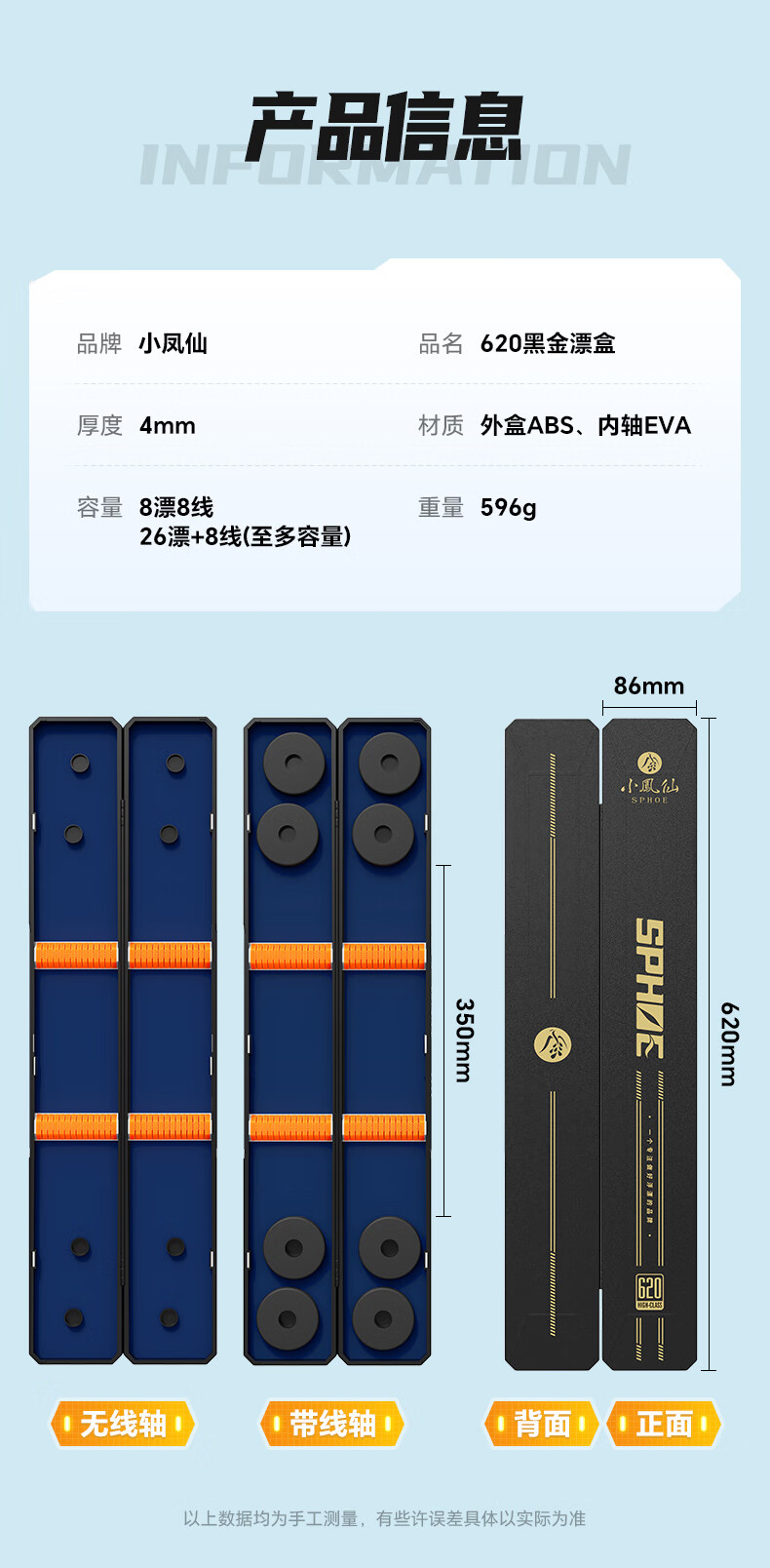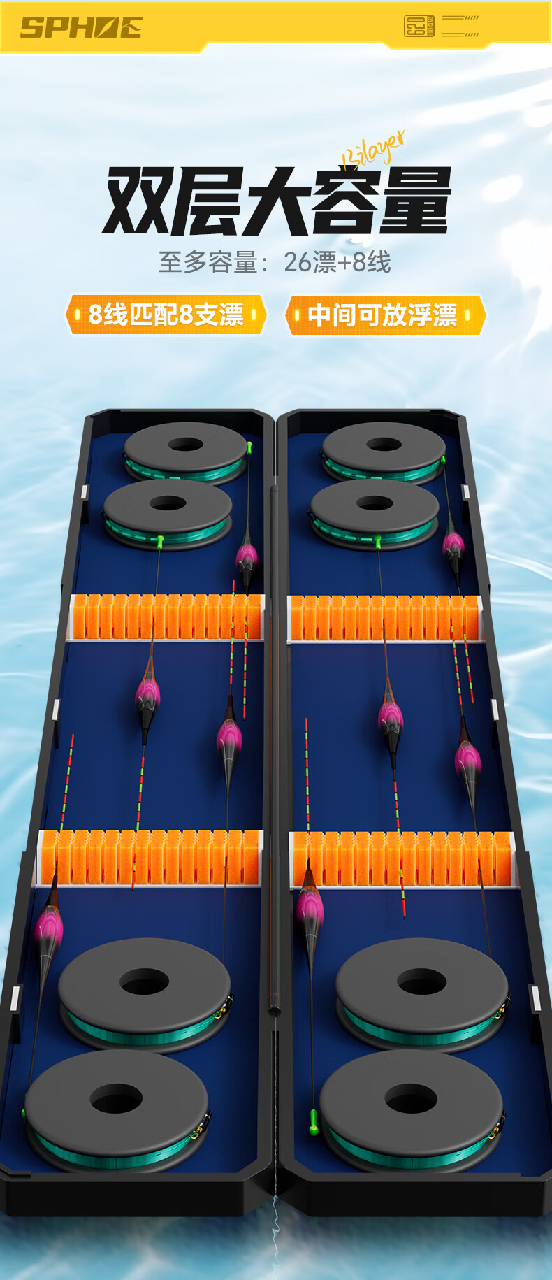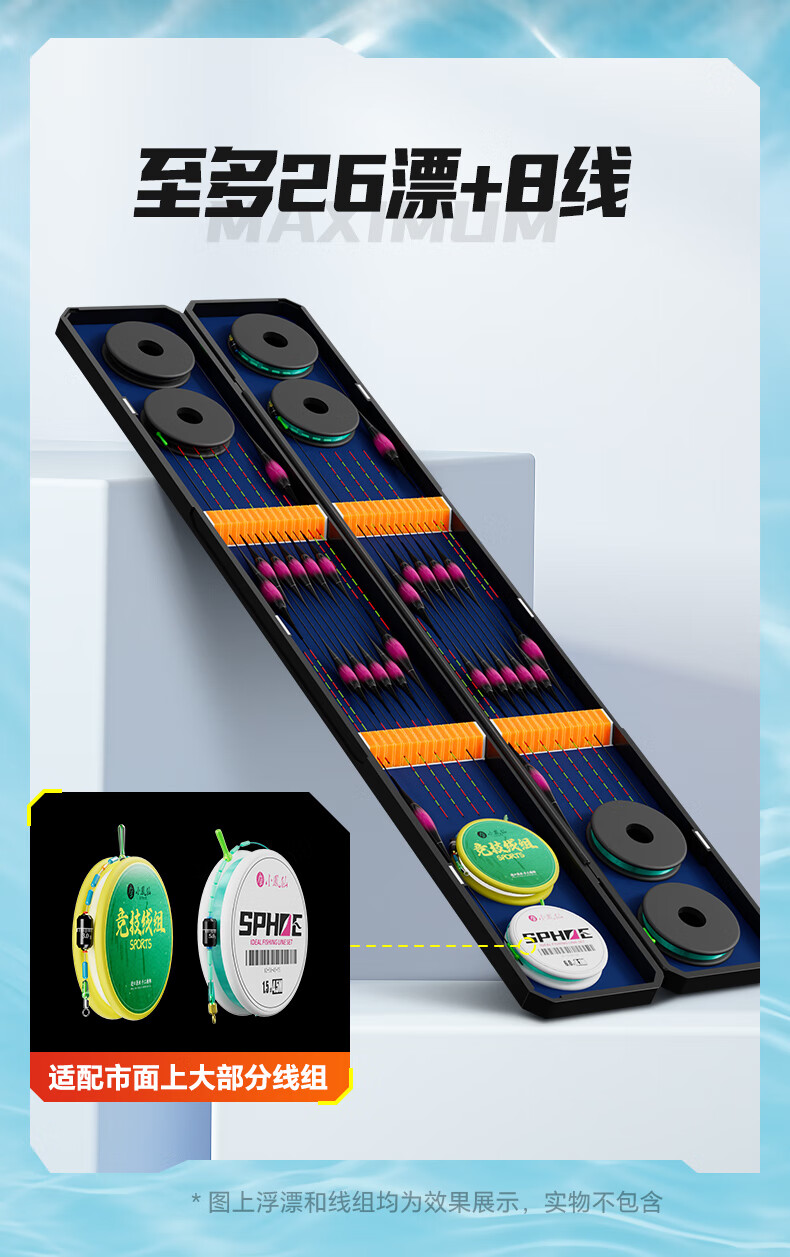 Xiaofengxian two-in-one float box multi-functional double-layer large-capacity fish float box 26 float 8-line box fishing gear thickened storage box 26 float 8-line black gold float box (wireless shaft) 62*8.6*3.3CM