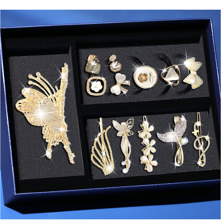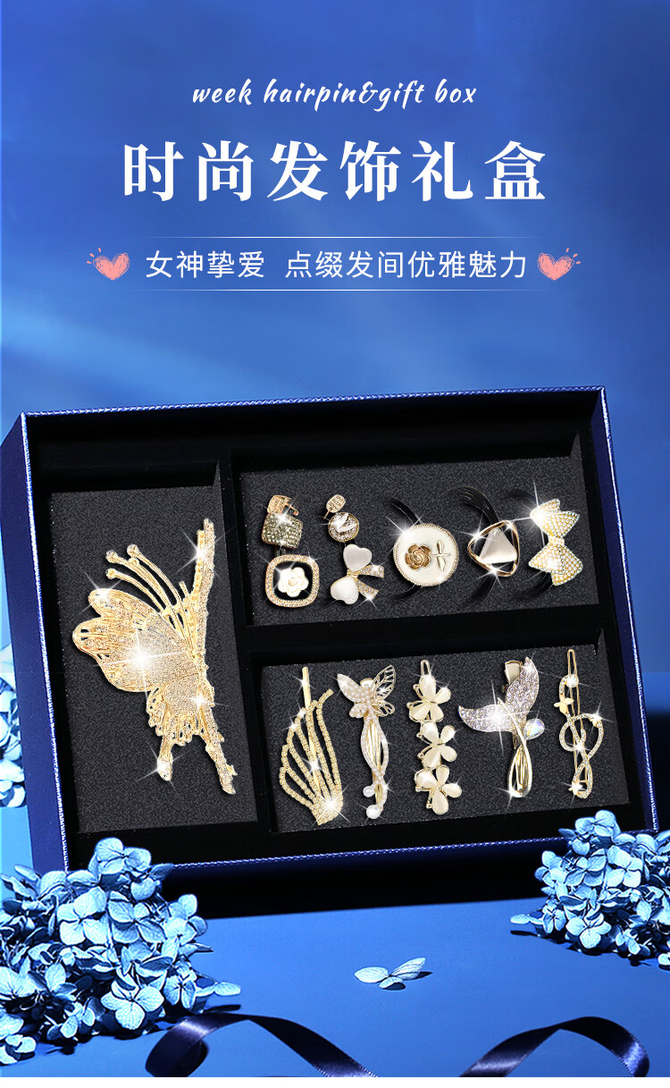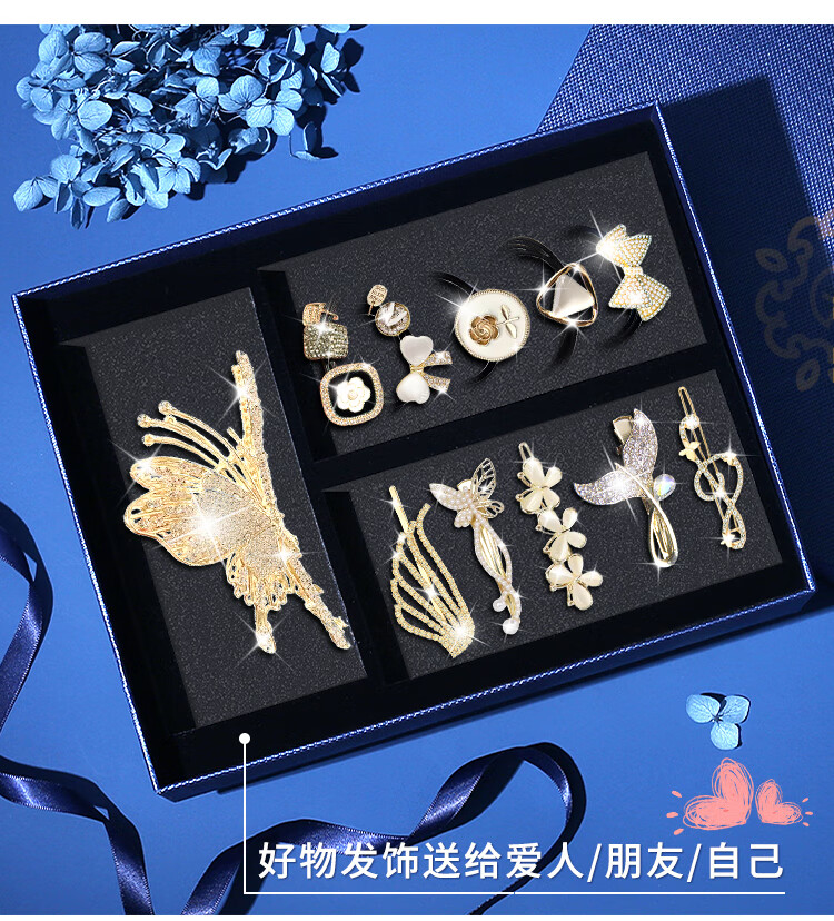Gunai high-end hairpins for the back of the head 2025 new hairpins, headwear, headbands, women's high-end light luxury hairbands, rubber bands, small grabbers, romantic butterfly hair accessories gift box