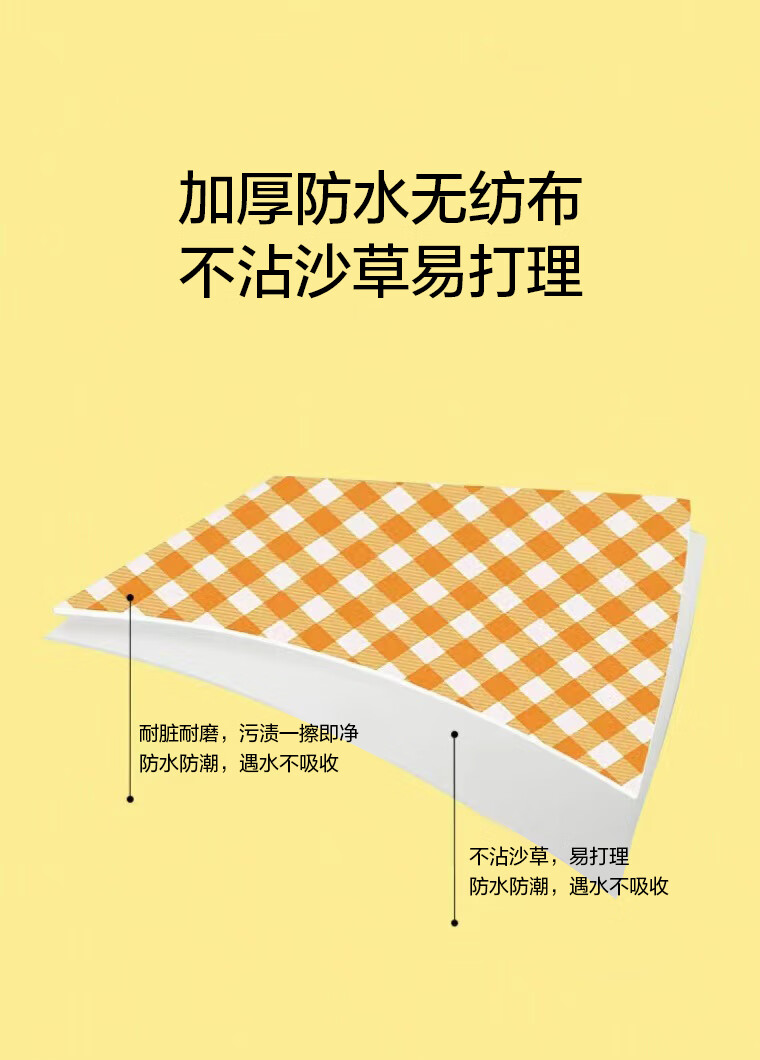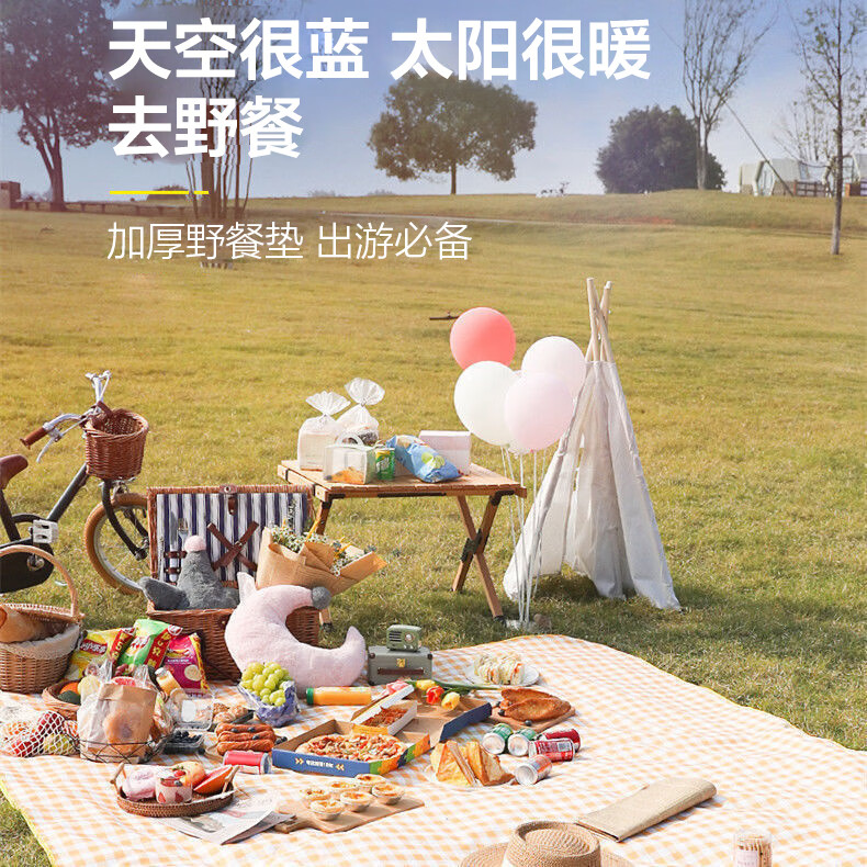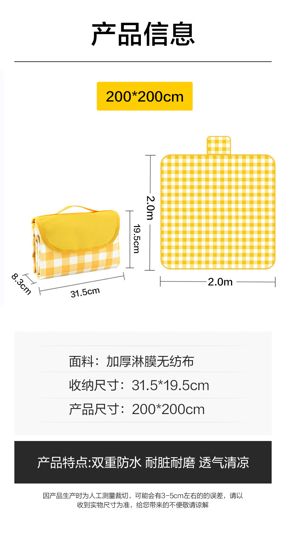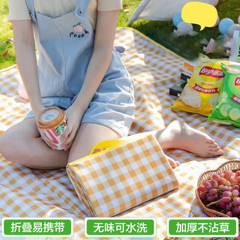 Picnic mat moisture-proof mat thickened outdoor picnic camping beach tent mat waterproof lawn mat portable picnic 1*1.5 meters (sitting around 1-3 people) yellow plaid (Oxford cloth edge)