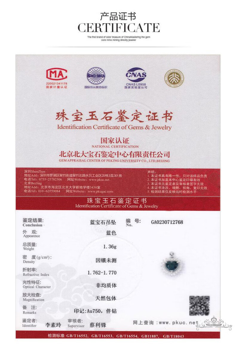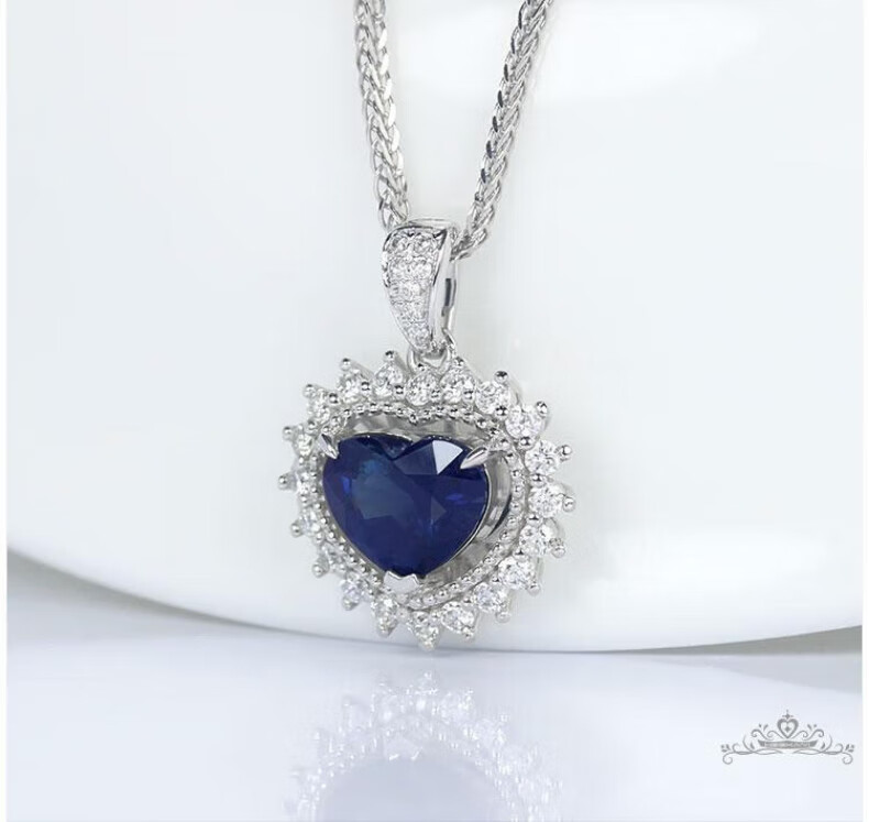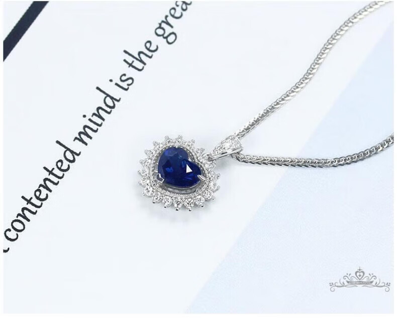 Haikai Necklace Women's Sapphire Ocean Heart Necklace Luxury Jewelry Valentine's Day Birthday Gift for Wife Royal Sapphire Heart Necklace (0.9CT/Selected Flawless)