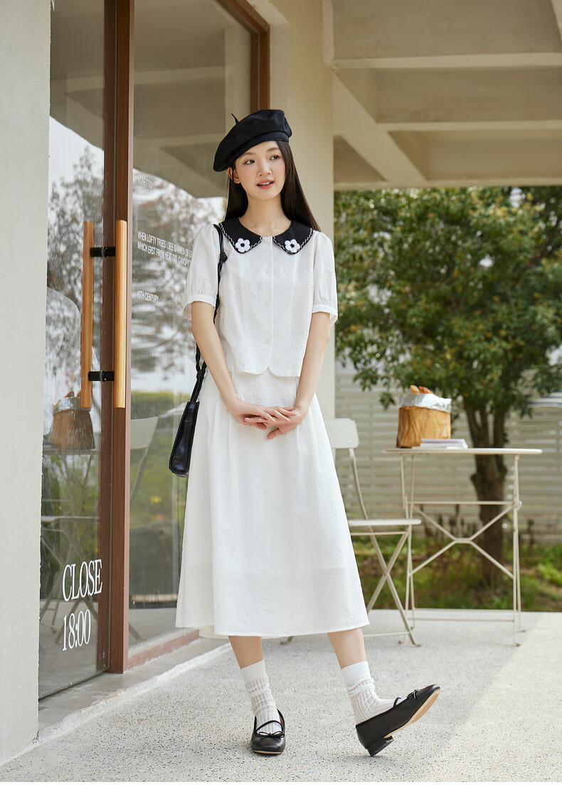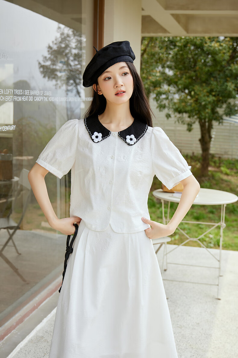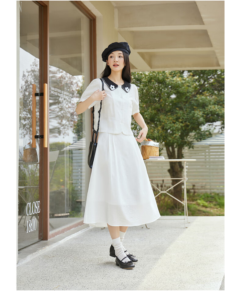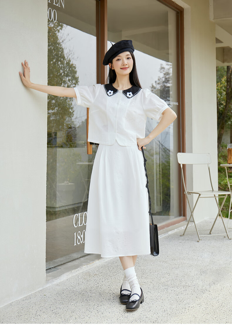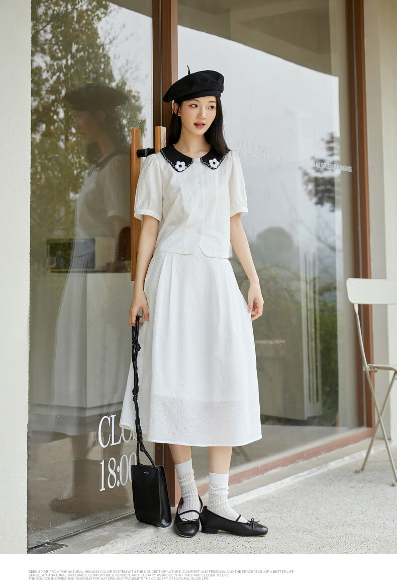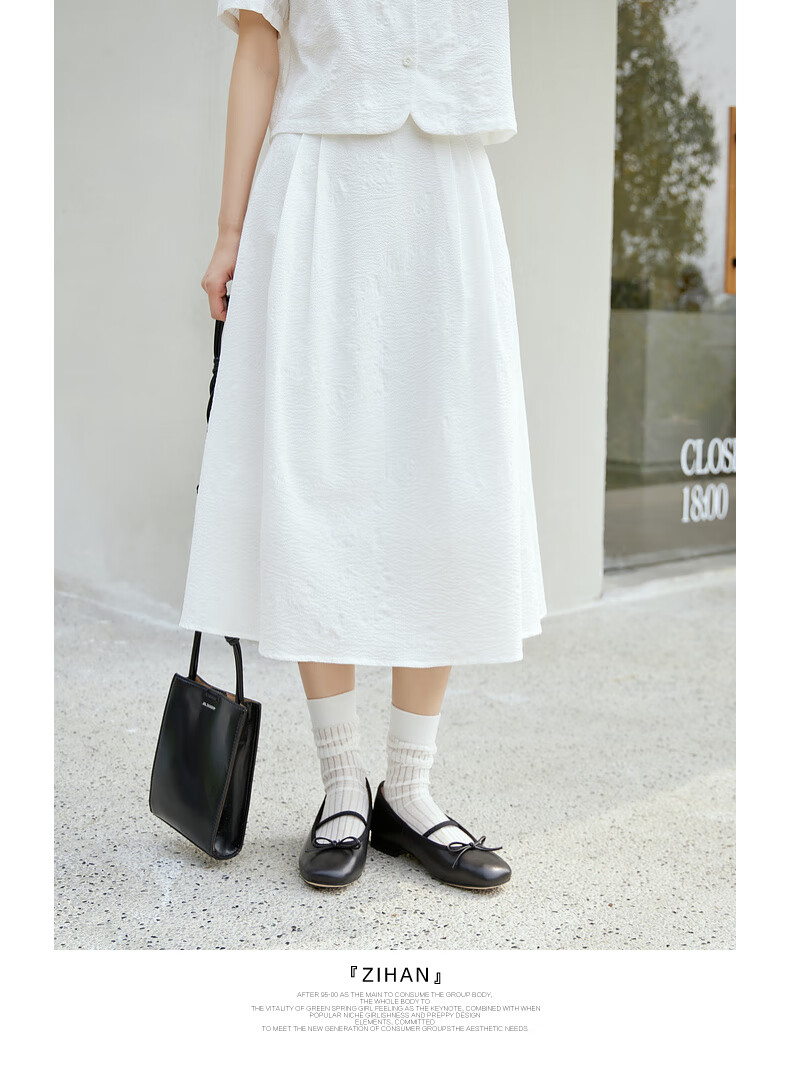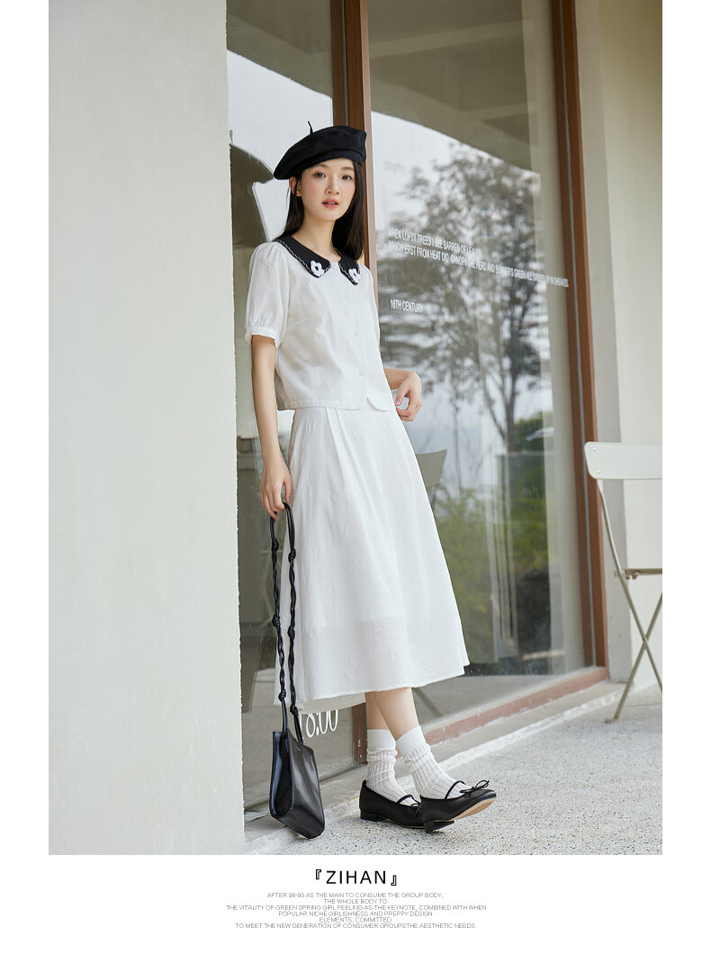 Zihan (ZIHAN) Zihan shirt skirt suit women's summer new forest style sweet jacquard shirt mid-length skirt two-piece set white XS