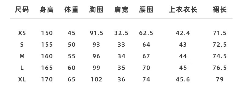 China (cm) 160-165/84-86 165-170 / 88-90 167-172 / 92-96 168-173 / 98-102 170-176 / 106-110