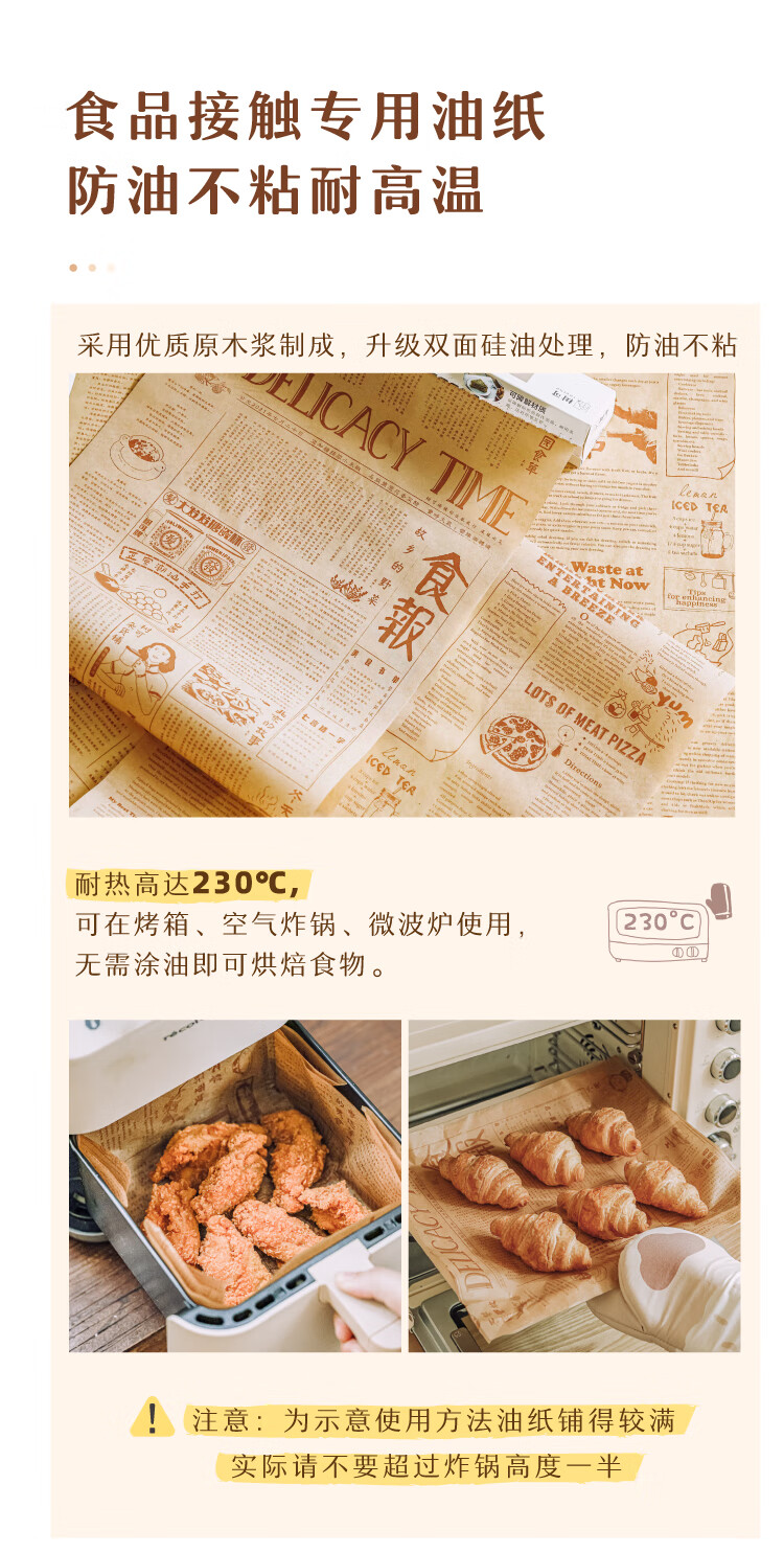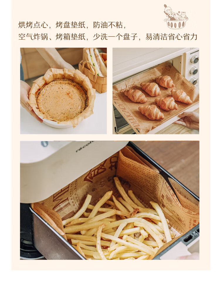 Shuke hand-painted oil paper for air fryer, oil-absorbing baking pan for food, special baking and barbecue silicone oil paper for household use, Chinese tabloid, two volumes
