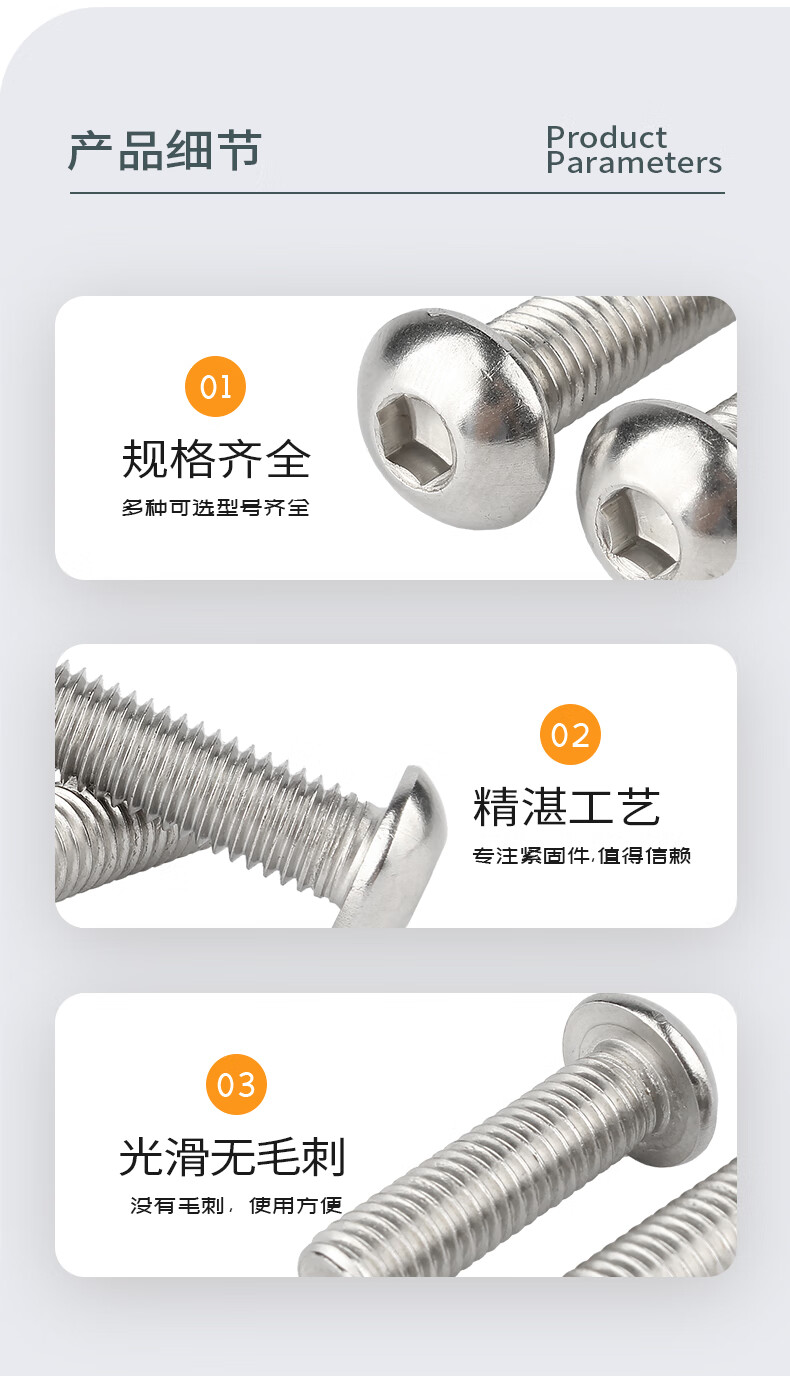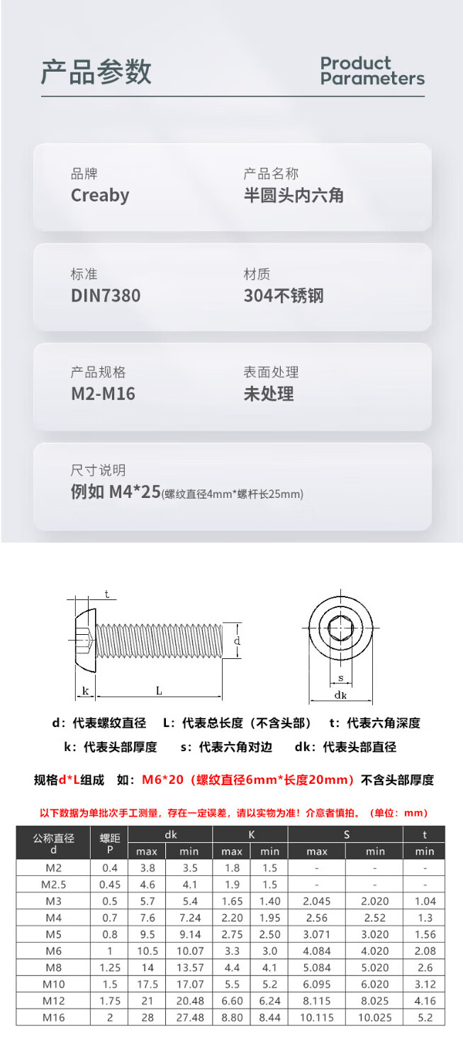 Creaby304 stainless steel round head hexagonal screw pan head bolt Yuan cup screw round cup mushroom umbrella head machine screw M4x10 40 pieces