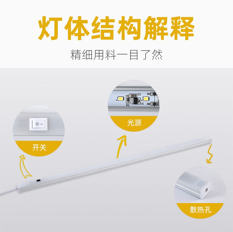 Lamp Lover Exposed 220v Cabinet Light LED Cabinet Bottom Light Kitchen Cutting Light Plug-in Light Strip Mechanical Switch Warm Light Neutral Light White Light Remarks