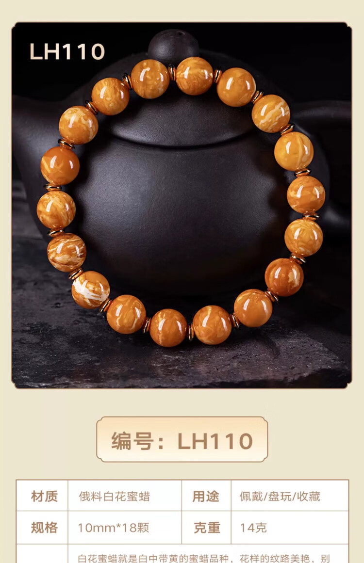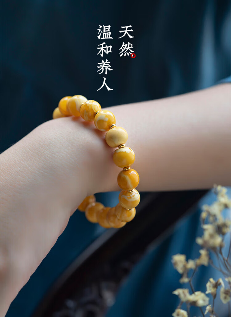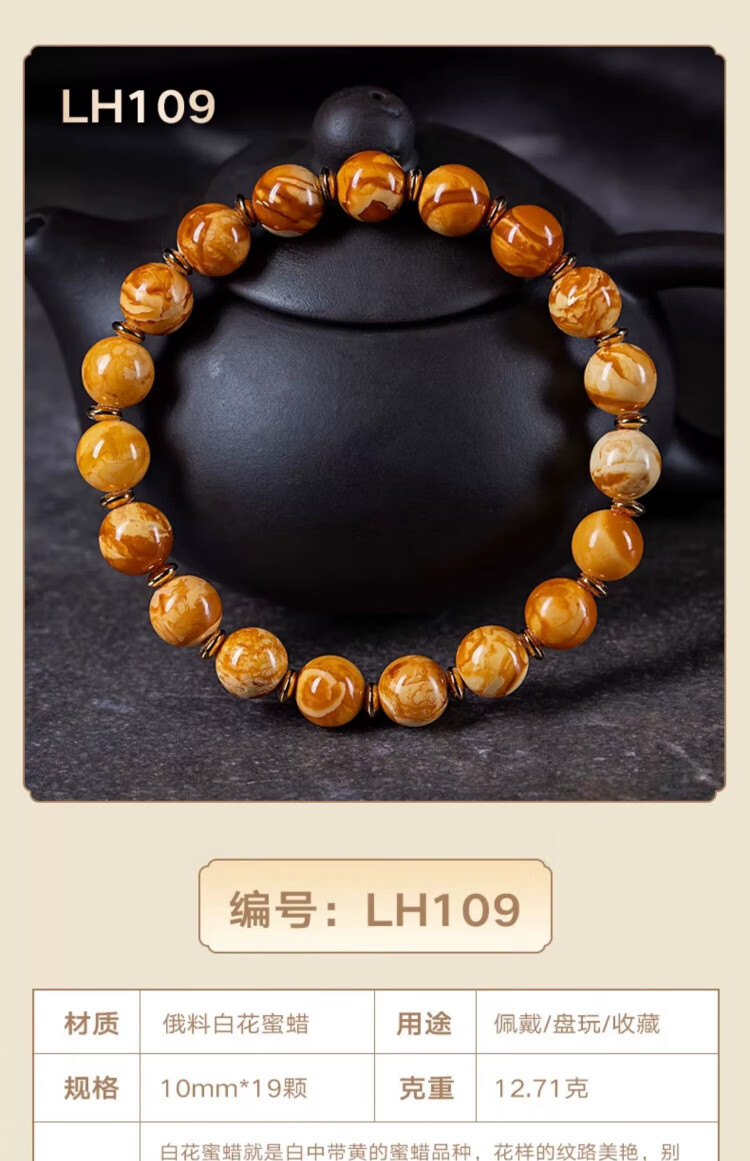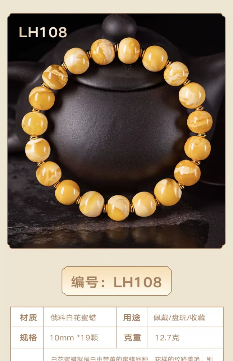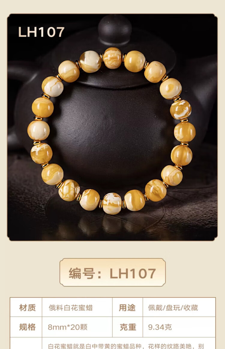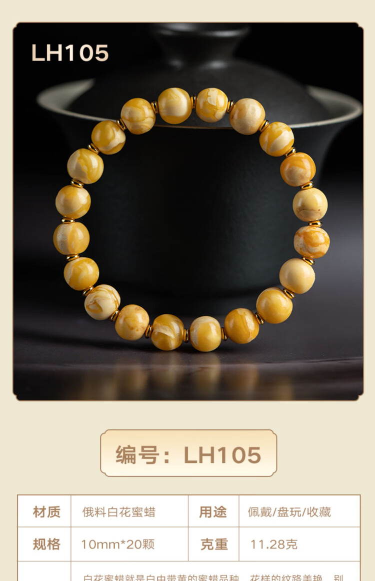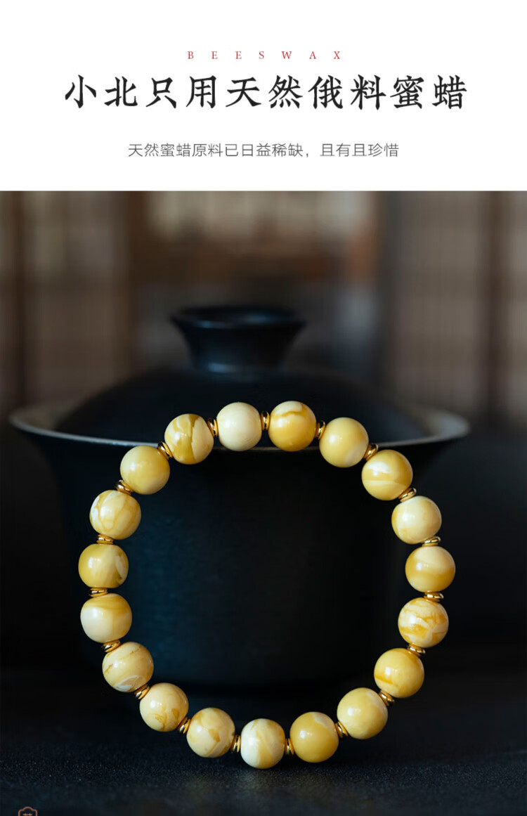 Su Xiaobei Zhenzhen authentic Russian material white demon flower gold twist old beeswax bracelet men's old style barrel bead bracelet women's natural amber rough stone LH109