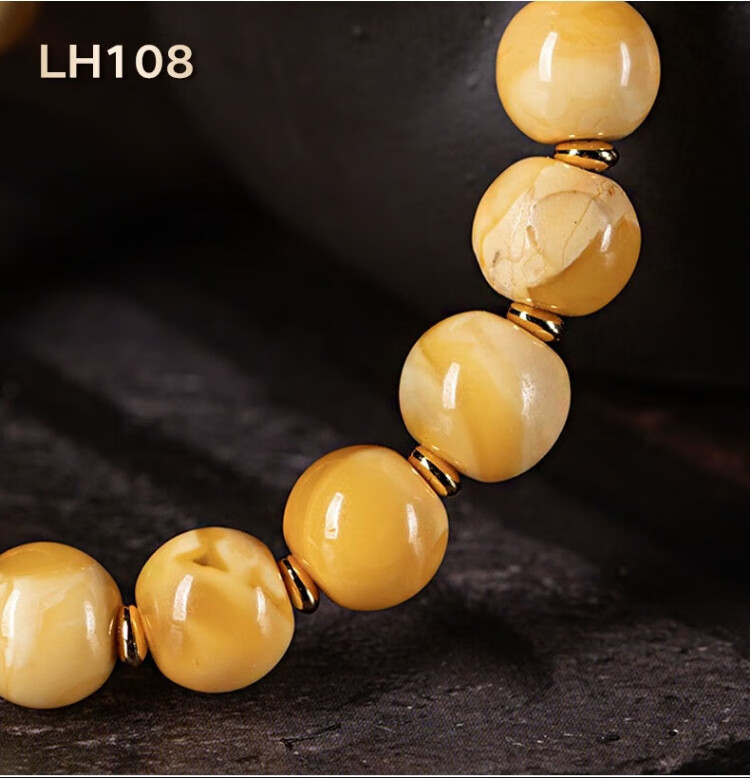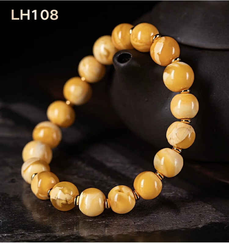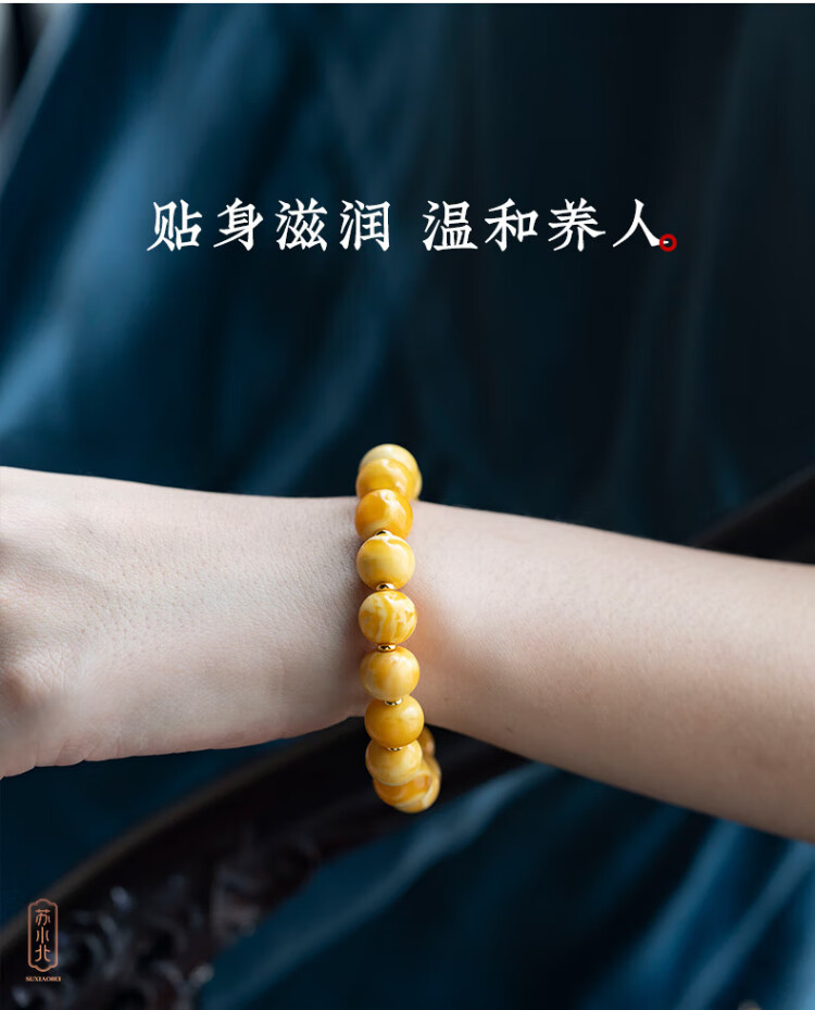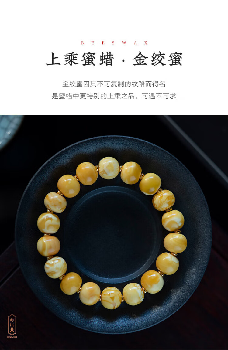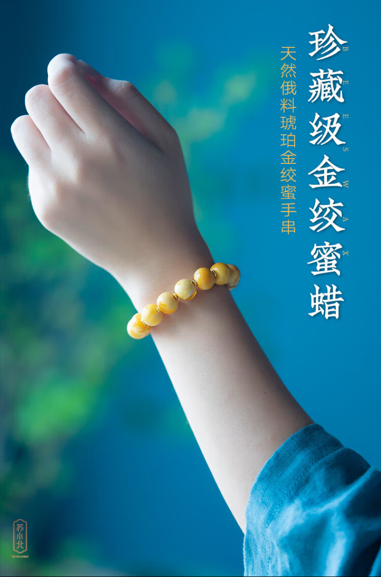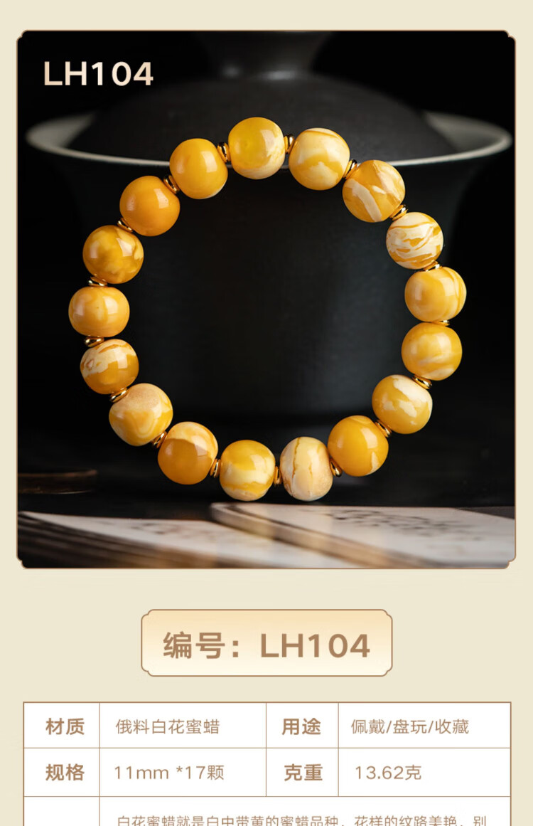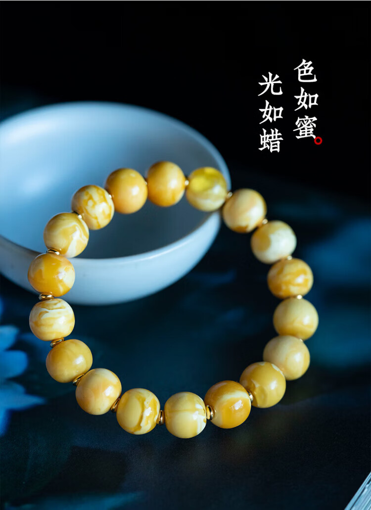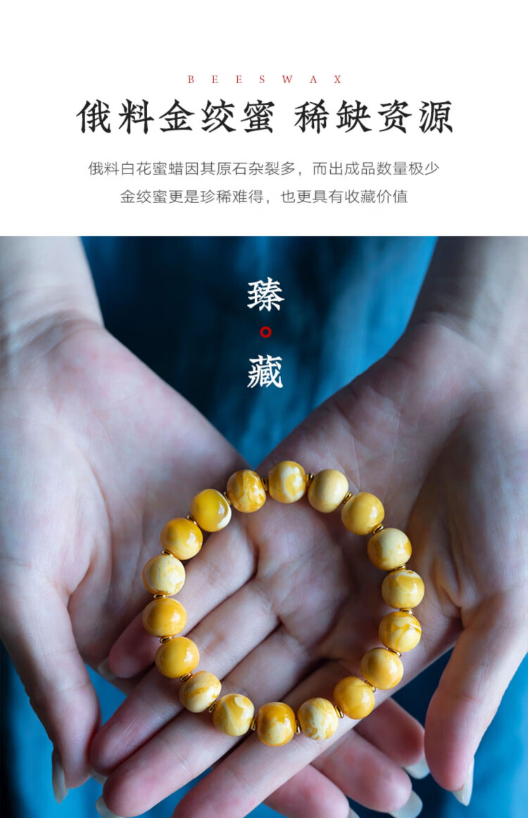 Su Xiaobei Zhenzhen authentic Russian material white demon flower gold twist old beeswax bracelet men's old style barrel bead bracelet women's natural amber rough stone LH109