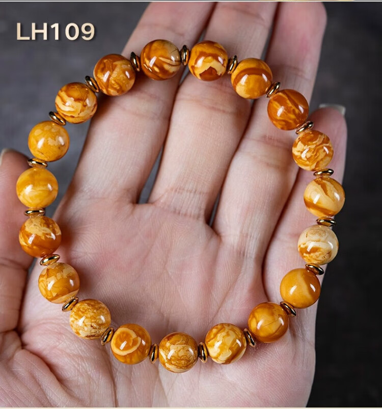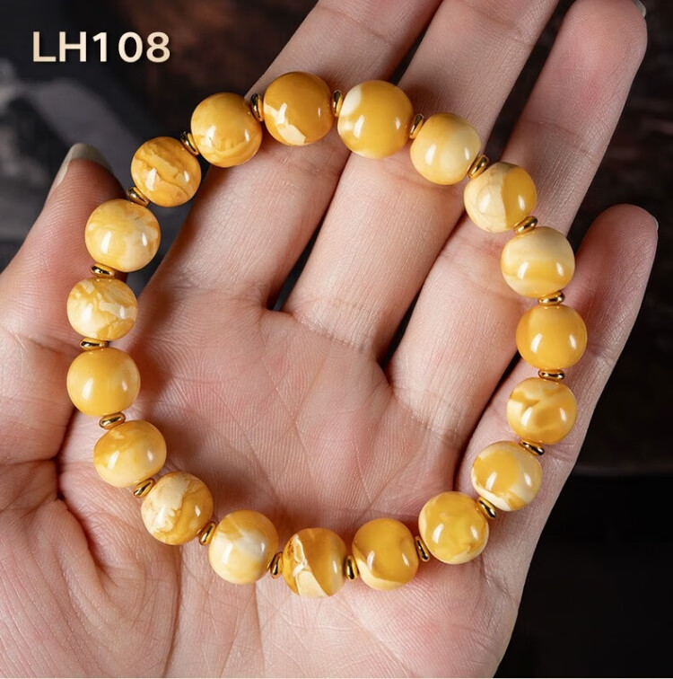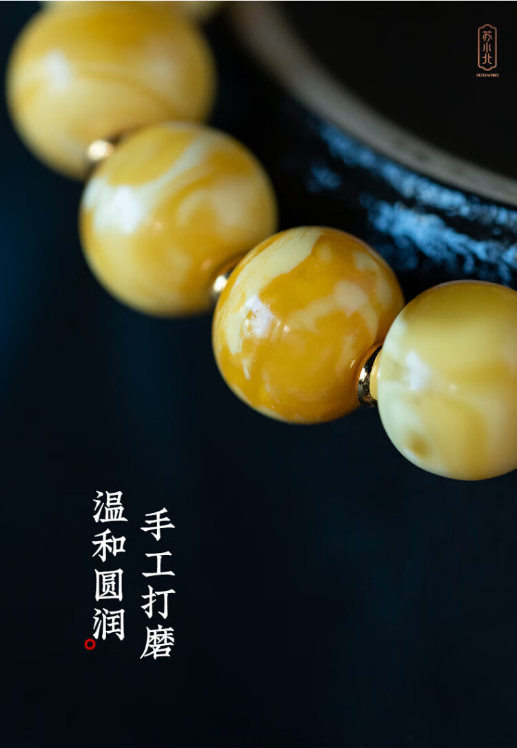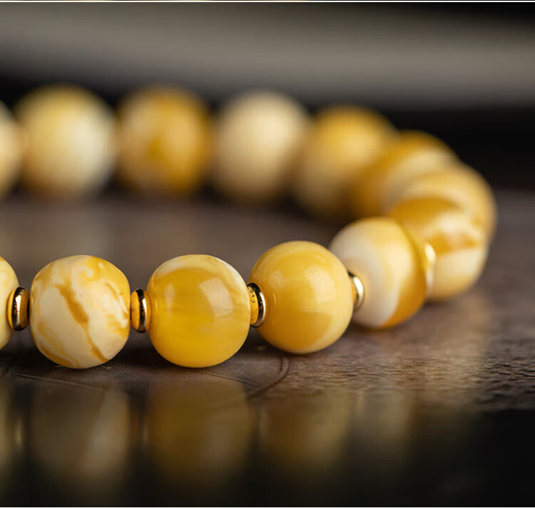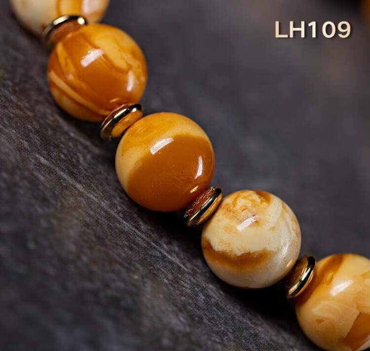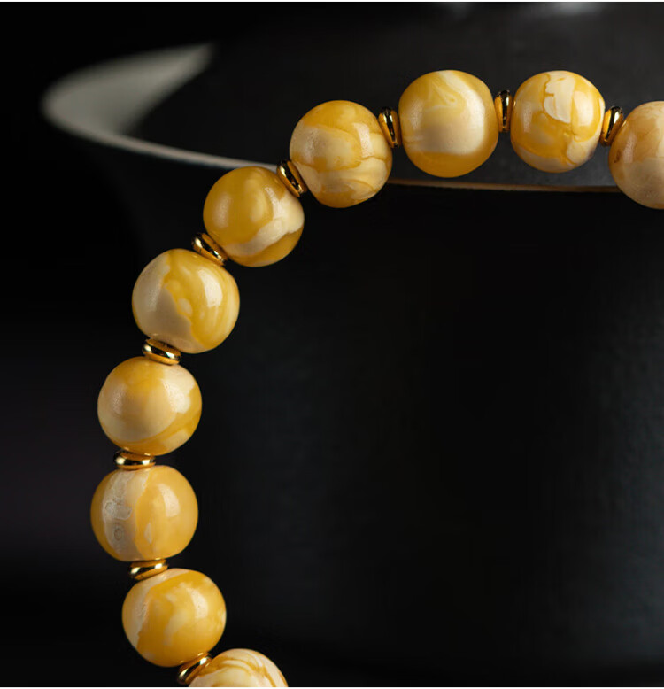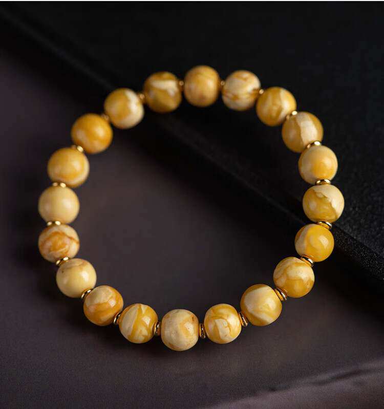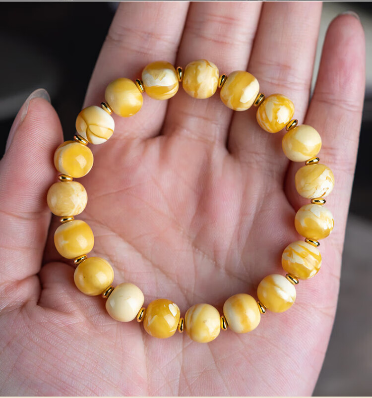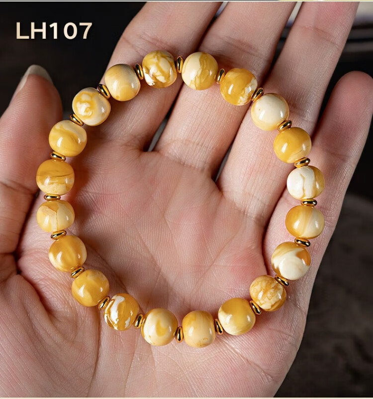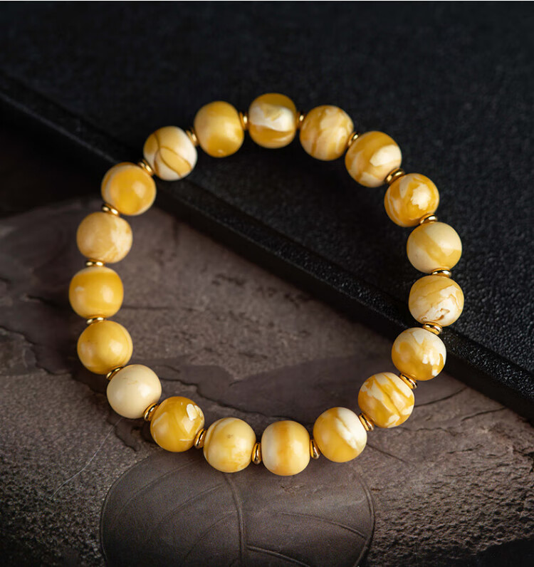 Su Xiaobei Zhenzhen authentic Russian material white demon flower gold twist old beeswax bracelet men's old style barrel bead bracelet women's natural amber rough stone LH109