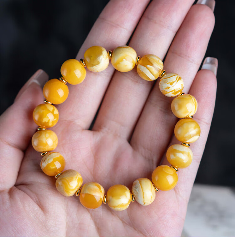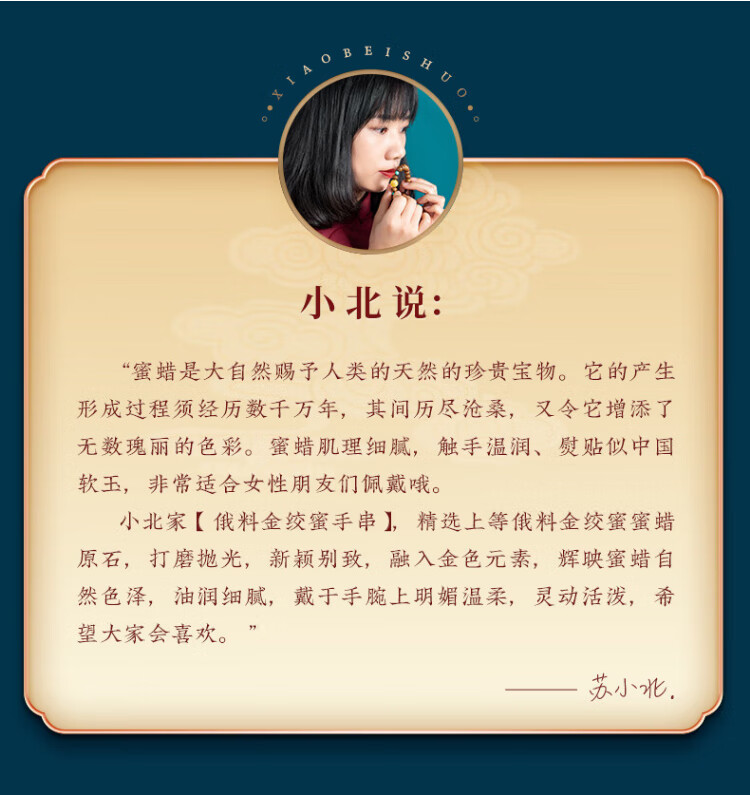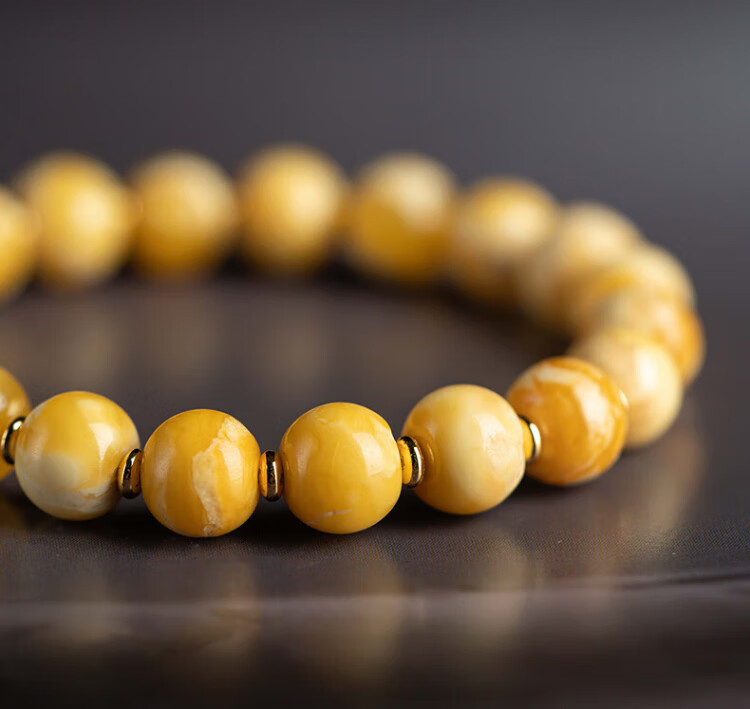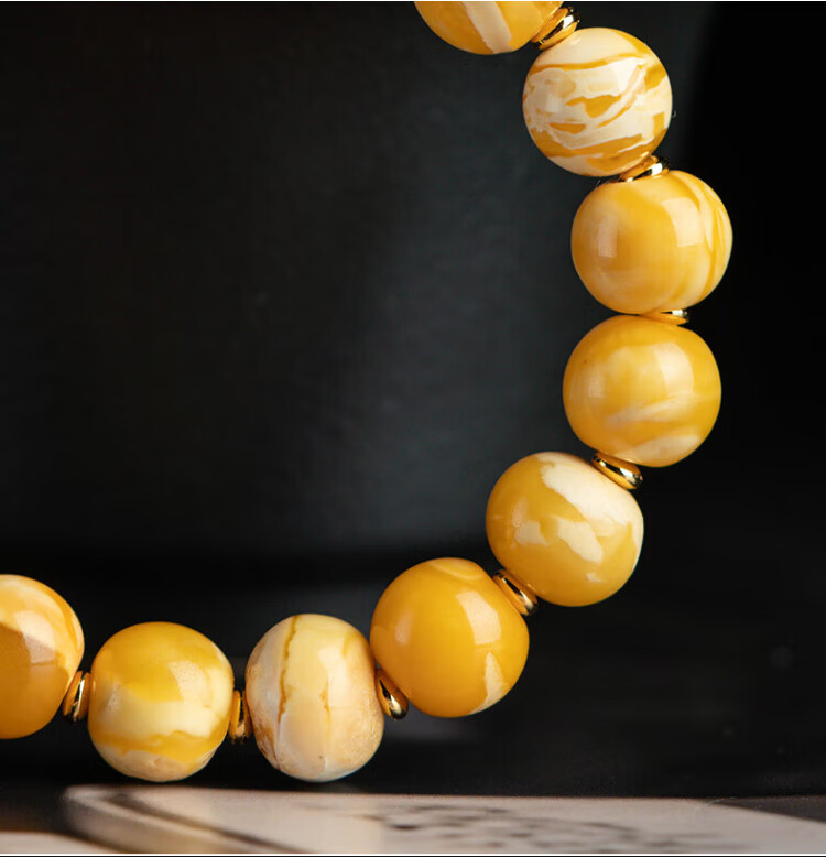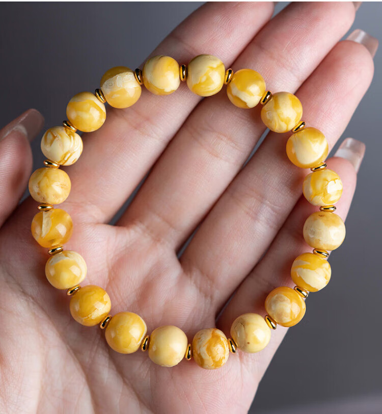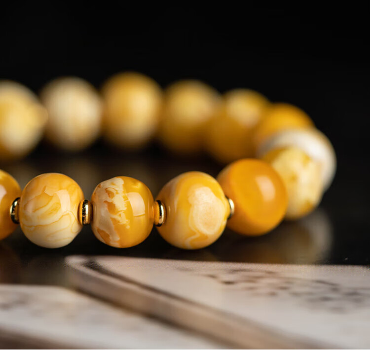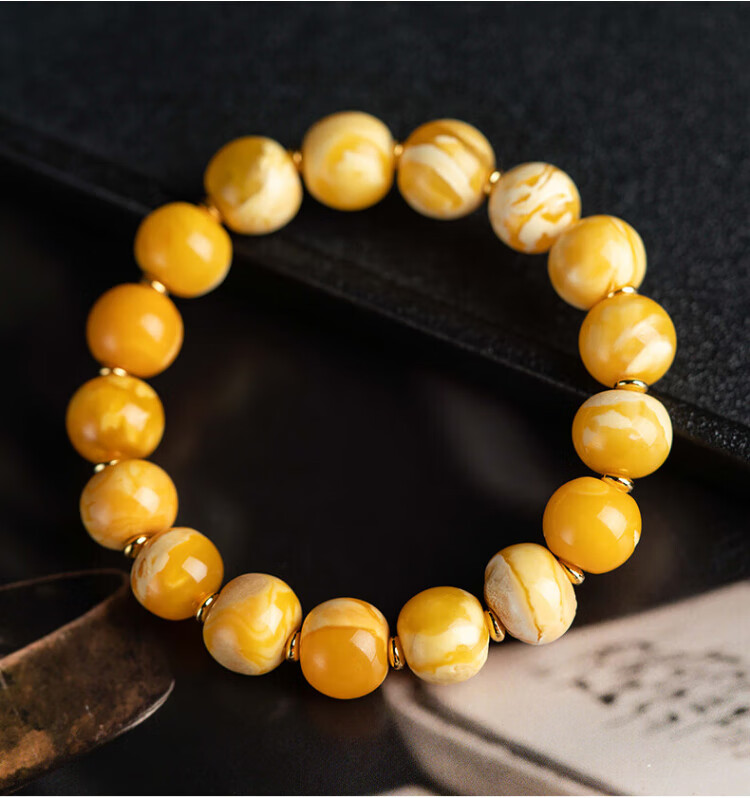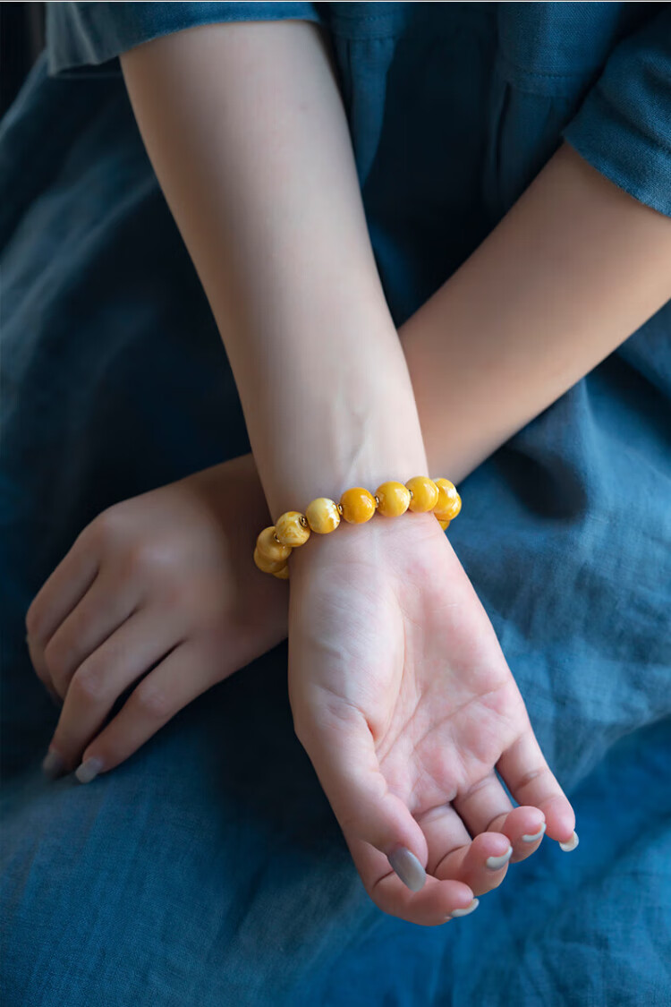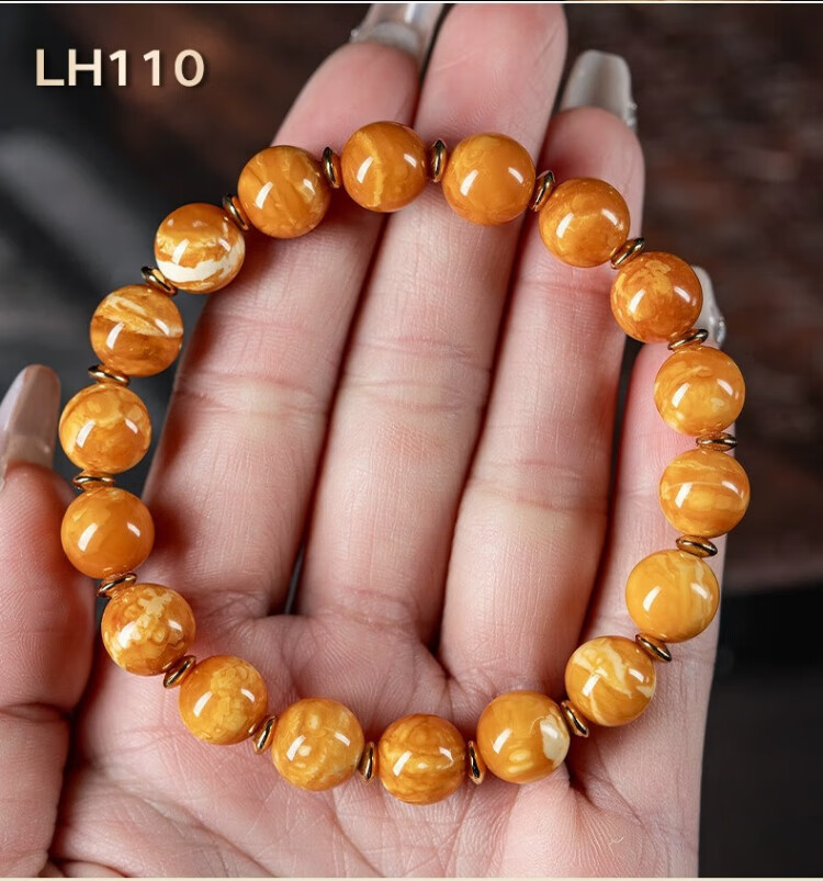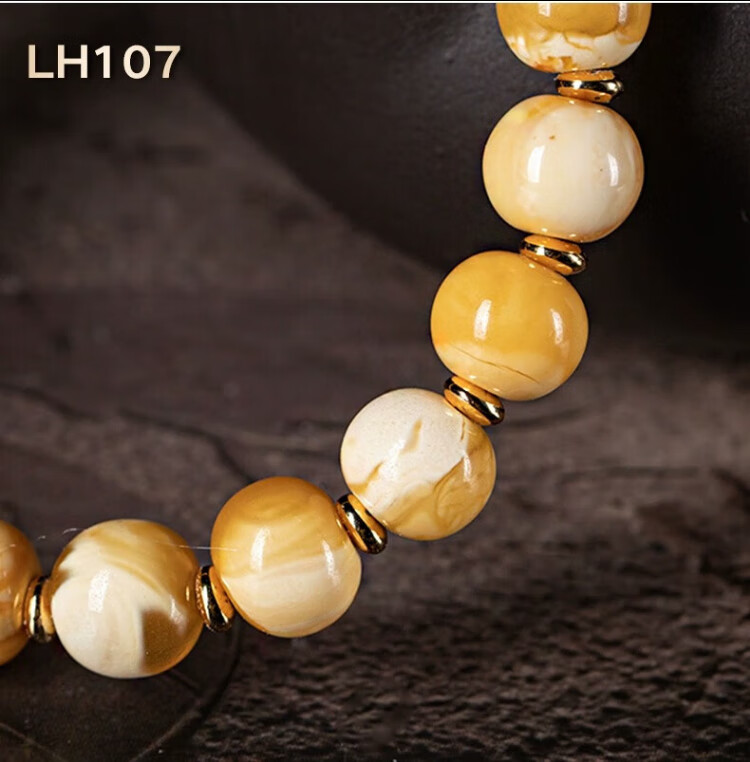 Su Xiaobei Zhenzhen authentic Russian material white demon flower gold twist old beeswax bracelet men's old style barrel bead bracelet women's natural amber rough stone LH109