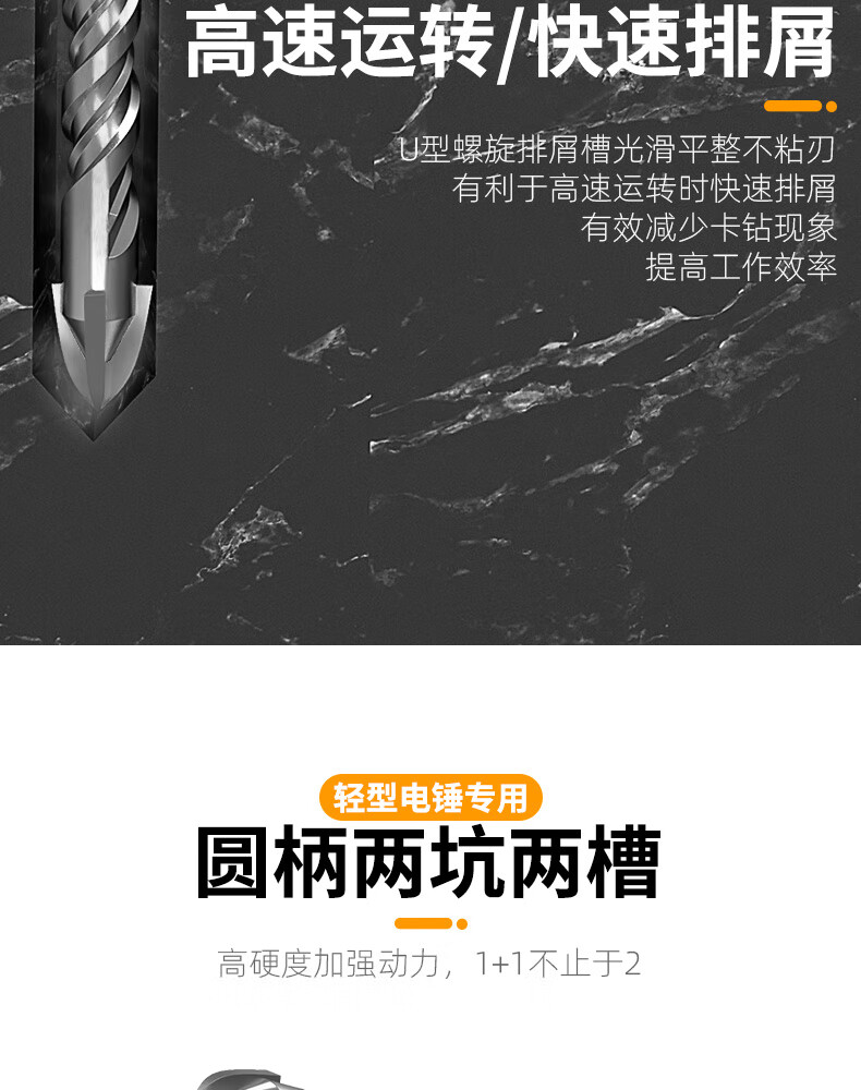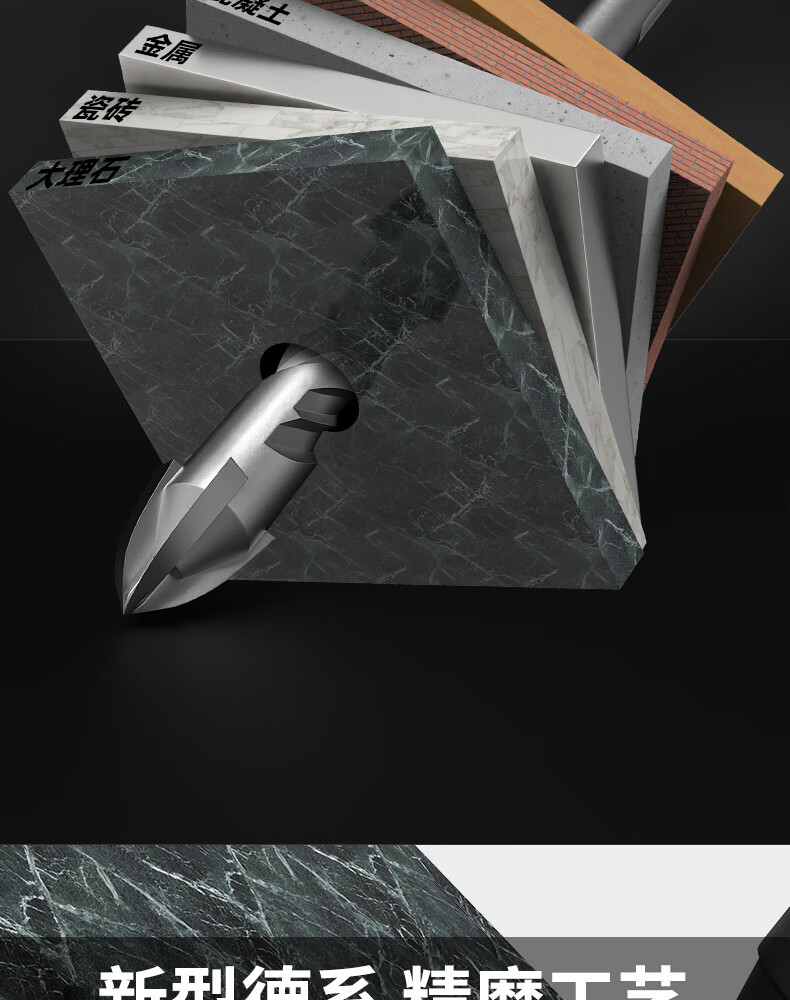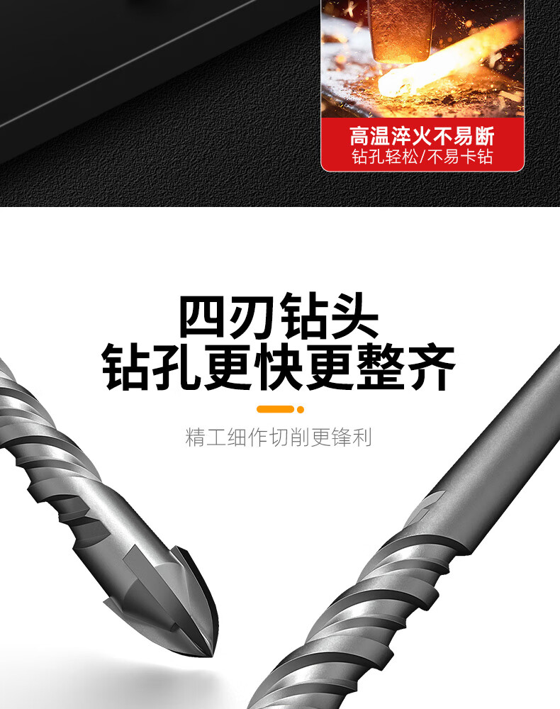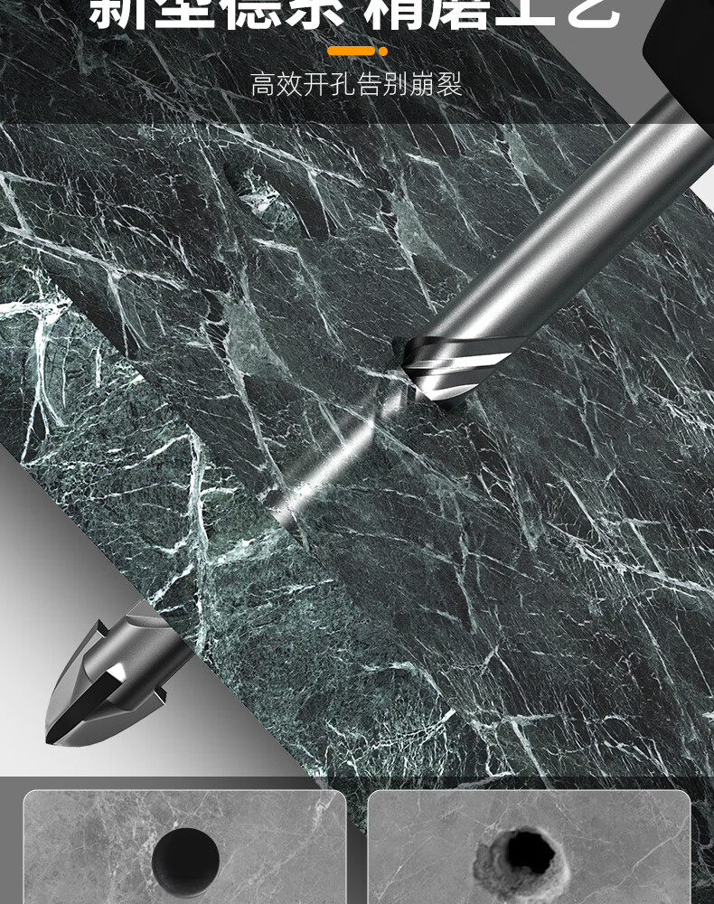 MeiKeLa tungsten steel alloy drill bit for ceramic tiles, cross electric hammer impact drill, round handle, two pits, two slots, four-edged triangle drill, upgraded four-edged, full Specifications, 5-pack