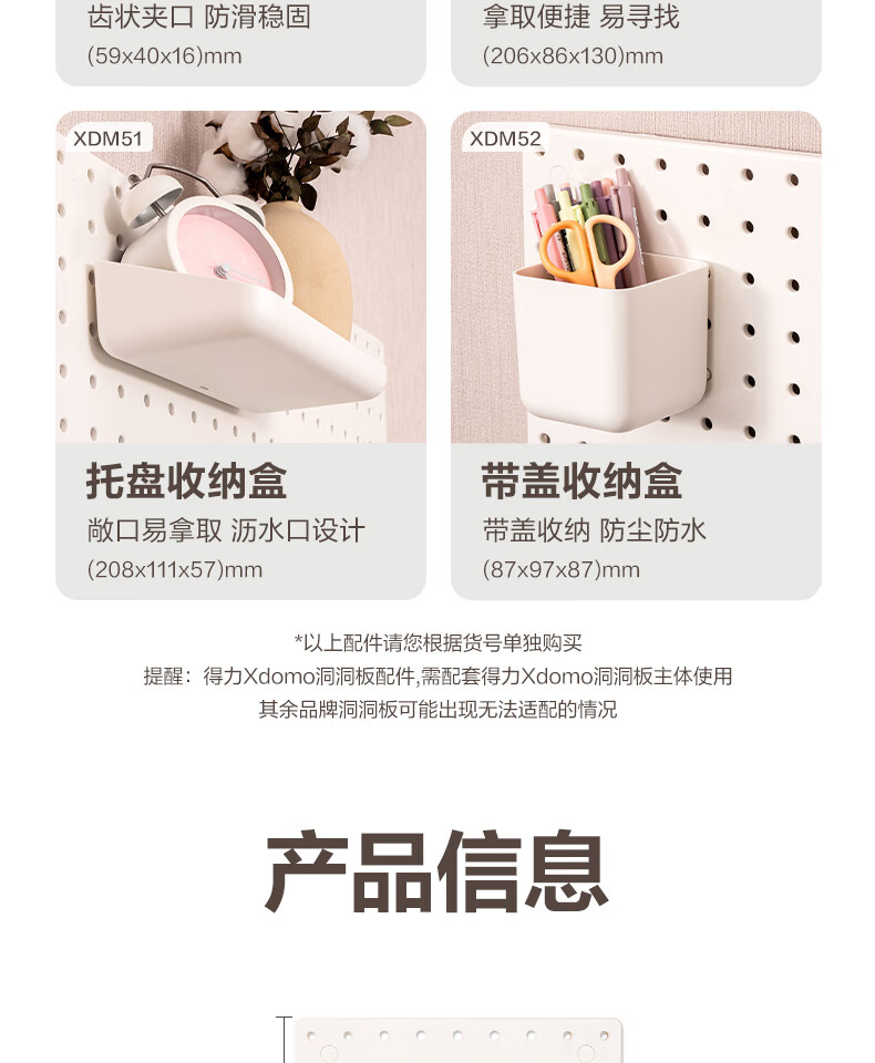 Deli (deli) punch-free household hole board dormitory kitchen bathroom wall shelf wall hanging entry storage rack partition tray storage box 20.8*11.1*5.7cm