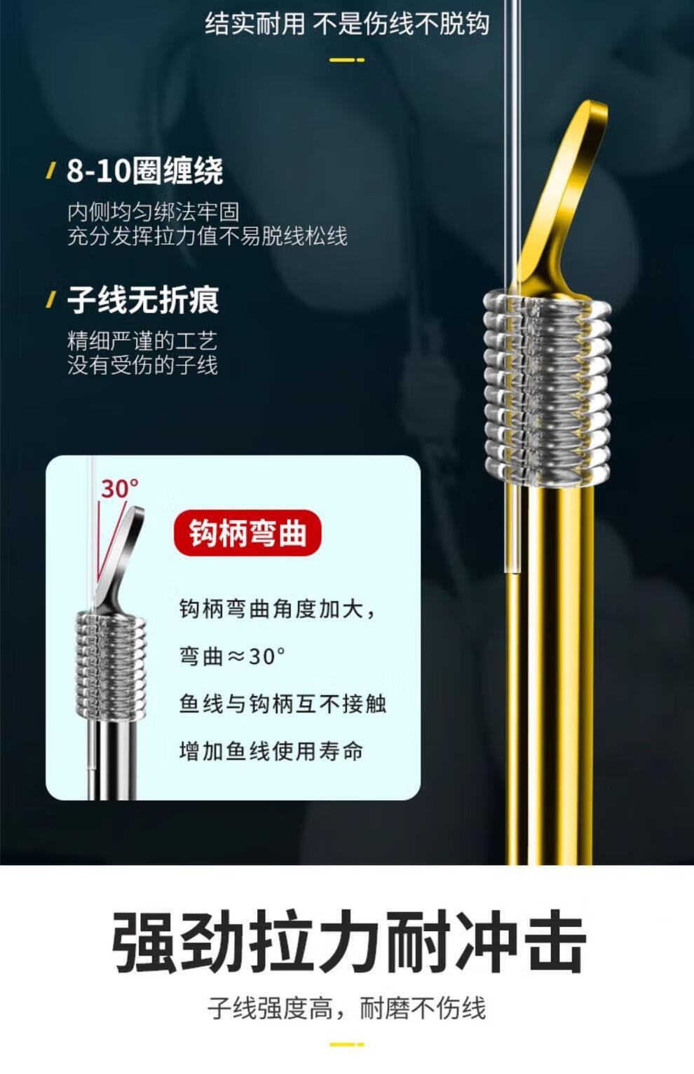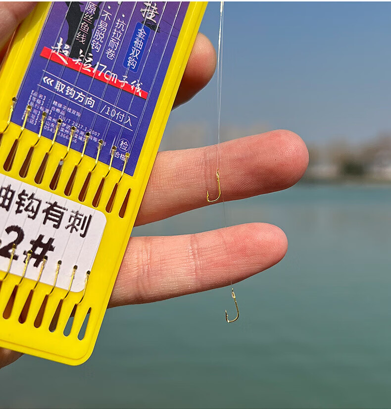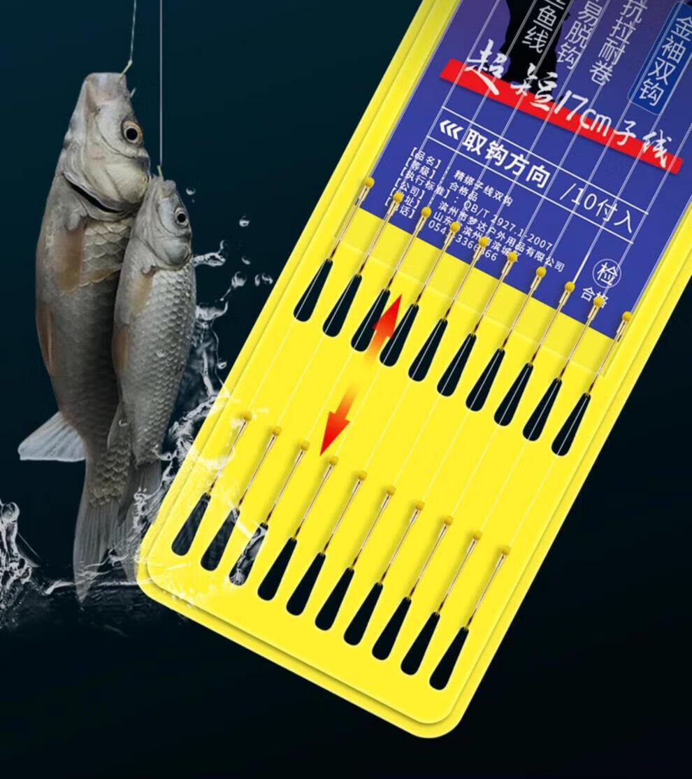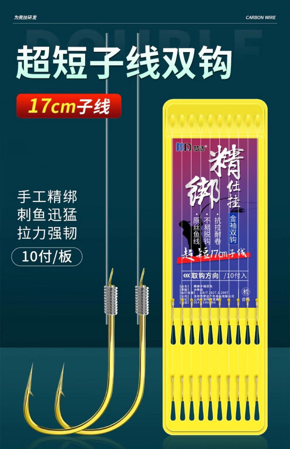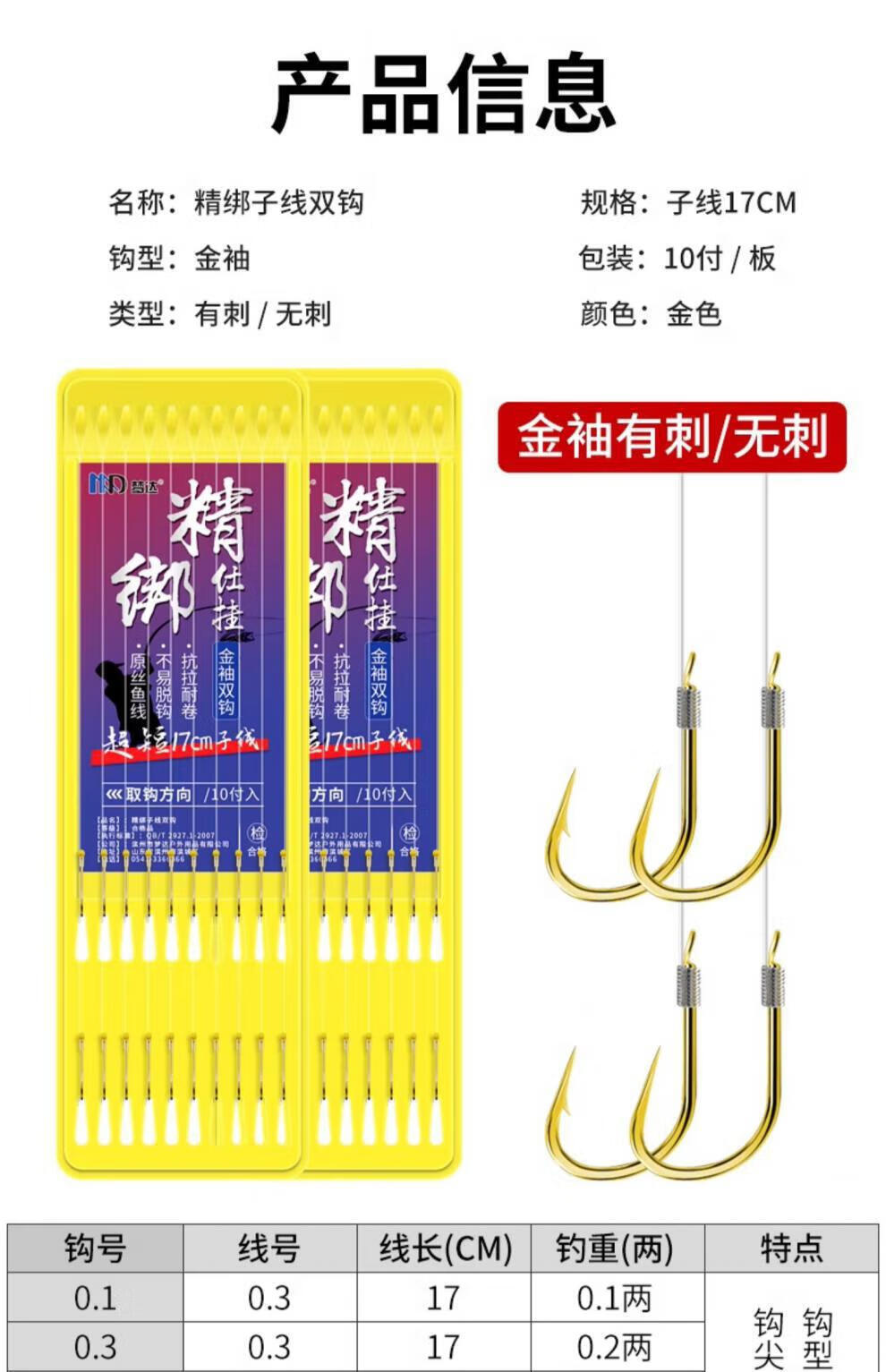 Yuyongji (YUYONGJI) short sub-thread double hook finished fish hook tied with sub-thread double hook gold sleeves with thorns and no thorns Taiwan fishing wild fishing crucian carp hook gold sleeves with thorns 10 packs No. 1