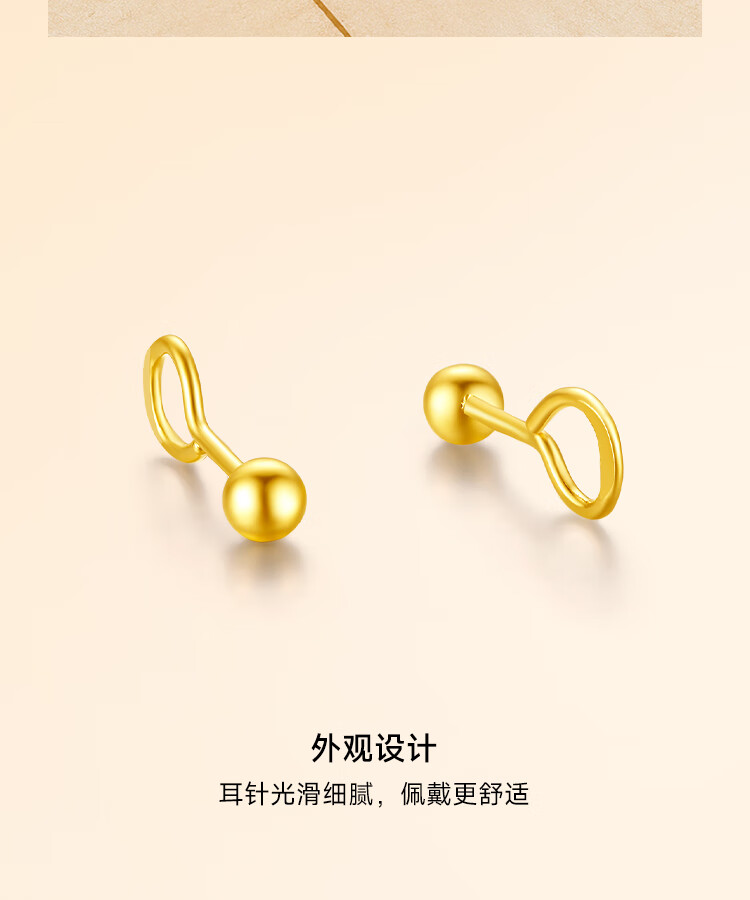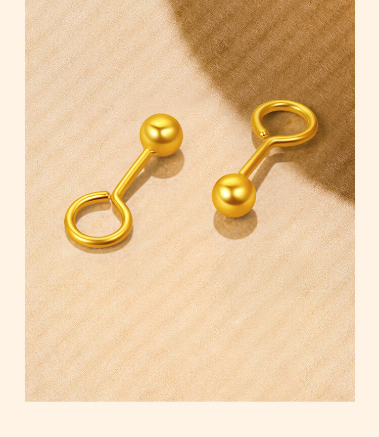 ZLF Gold Earrings Women's Pure Gold 999 Round Beads Price 1.27g