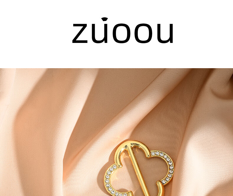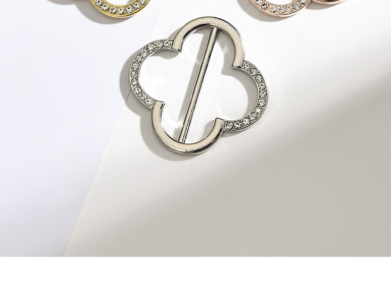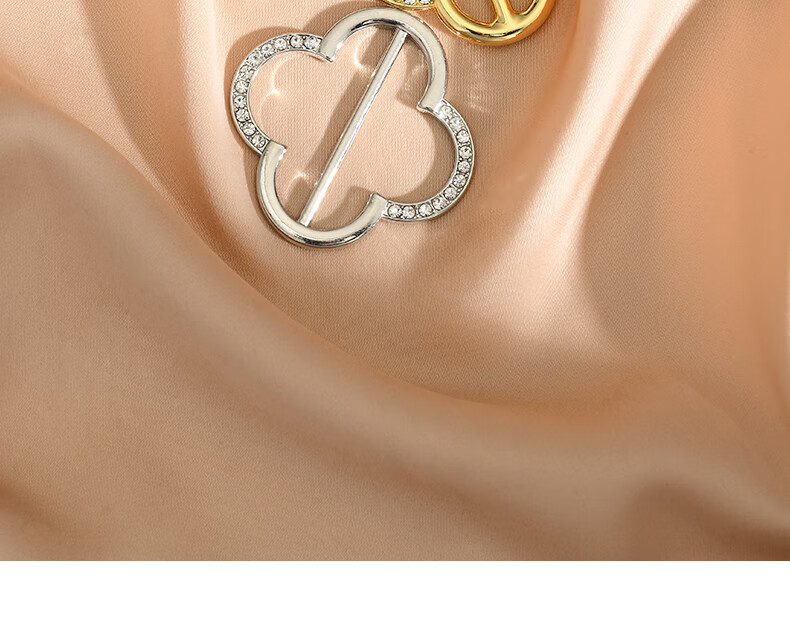 Zuoou four-leaf clover silk scarf buckle high-end small square scarf knotted buckle multi-purpose shirt streamer scarf corner new fixed button rhinestone four-leaf clover rose gold