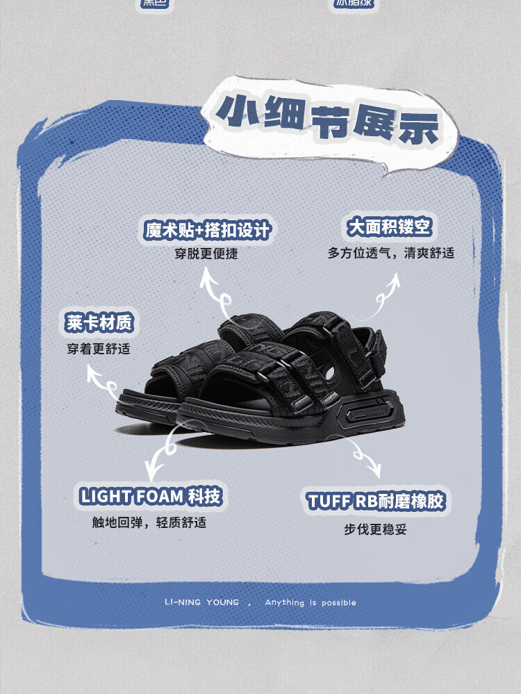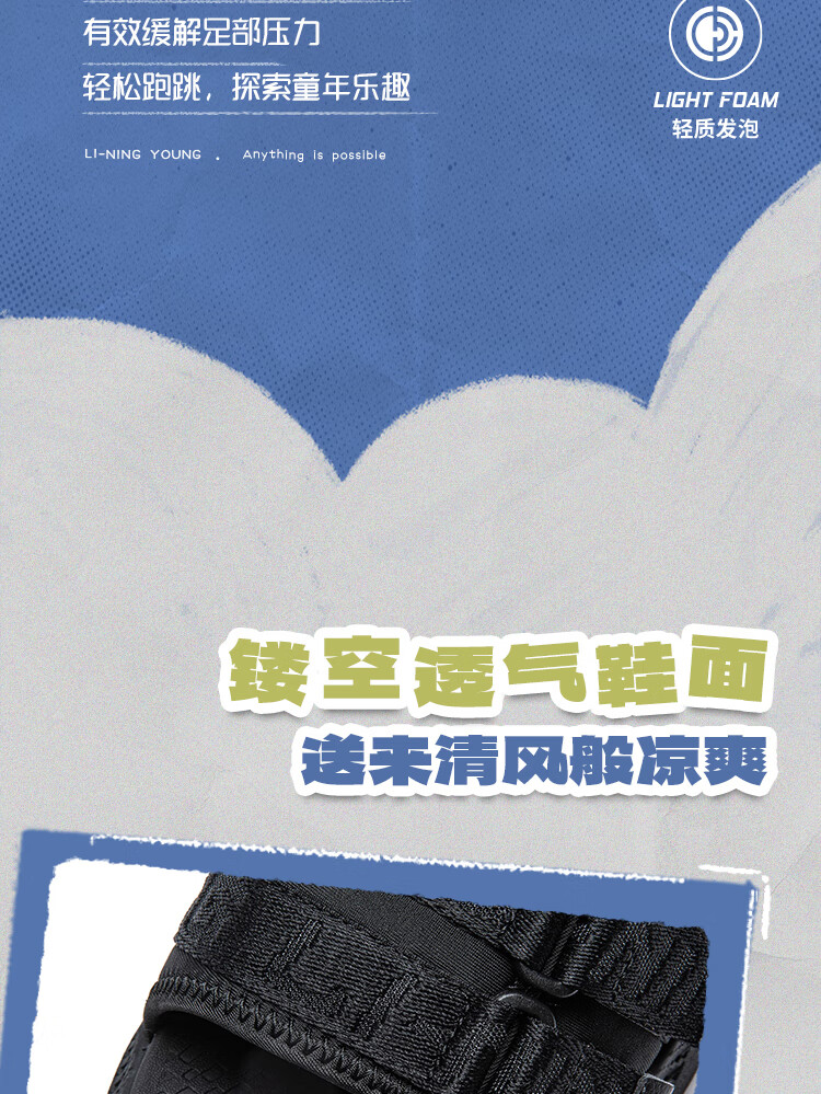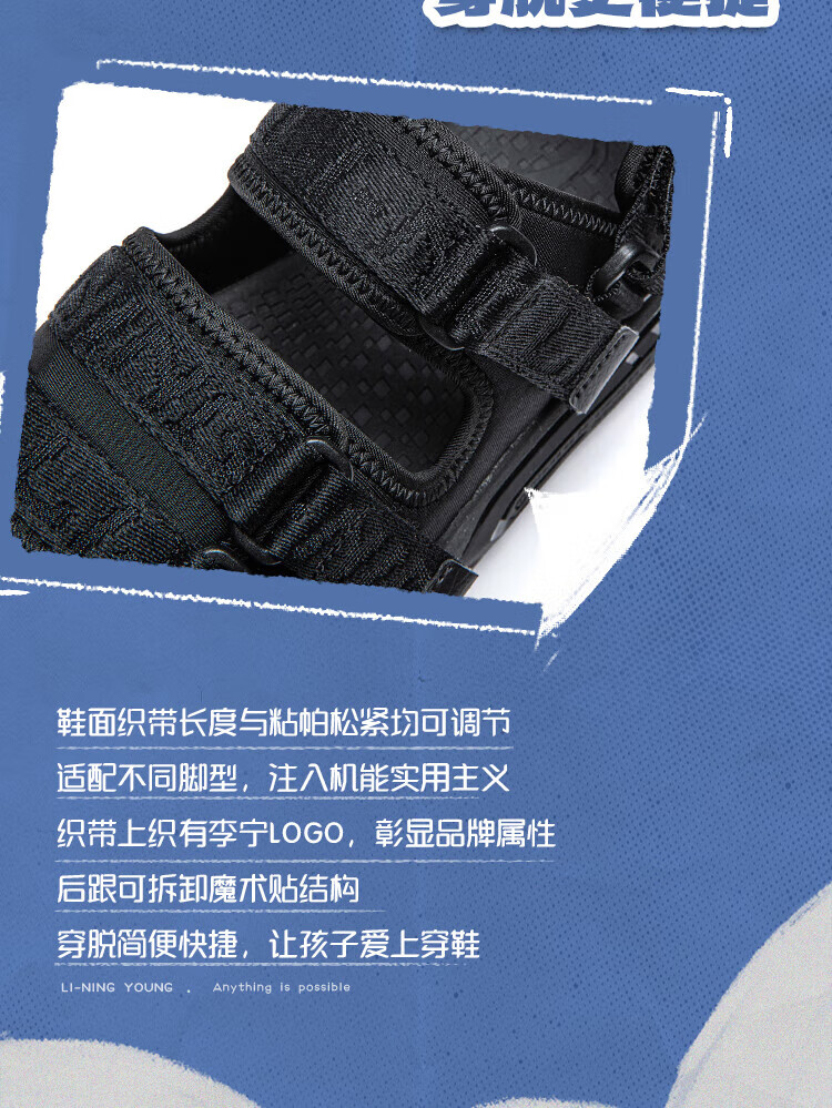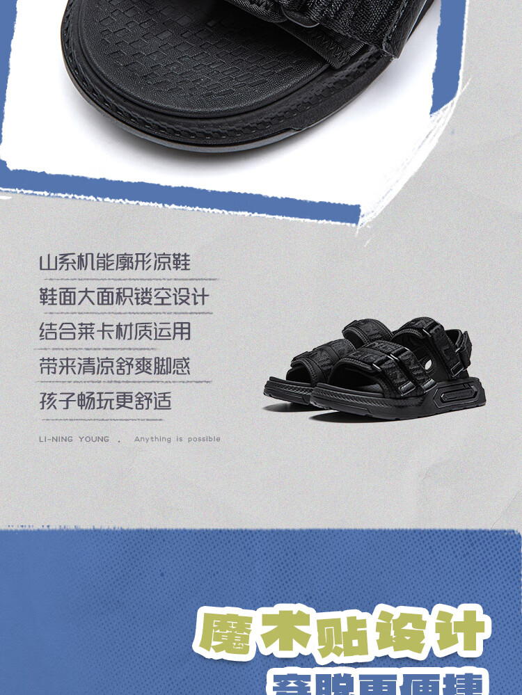Li Ning children's shoes children's sandals for boys COKAYOUNG smooth lightweight rebound comfortable casual shoes black-3 35