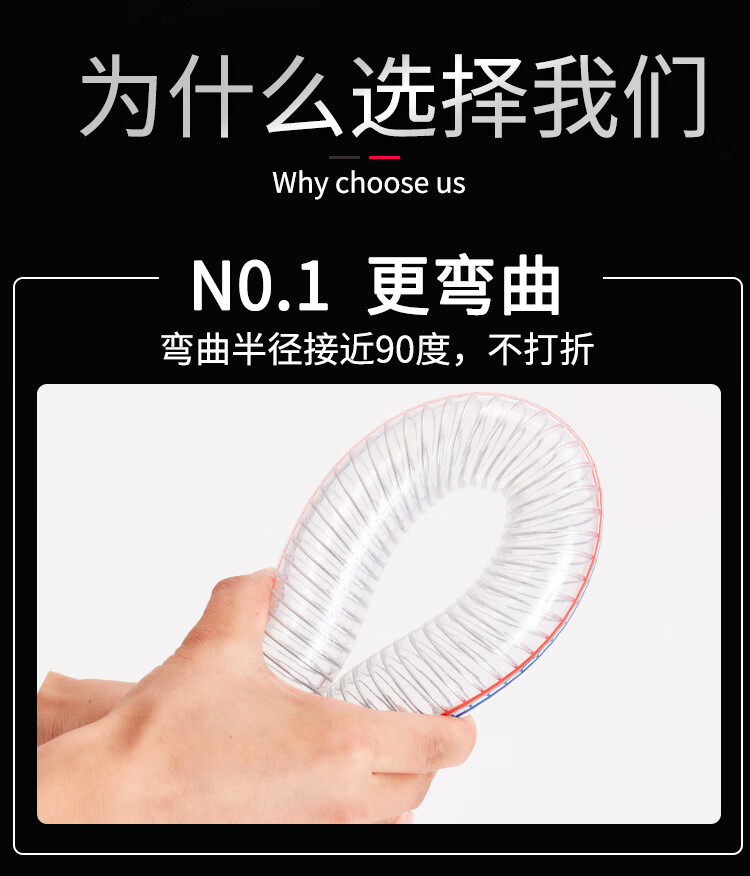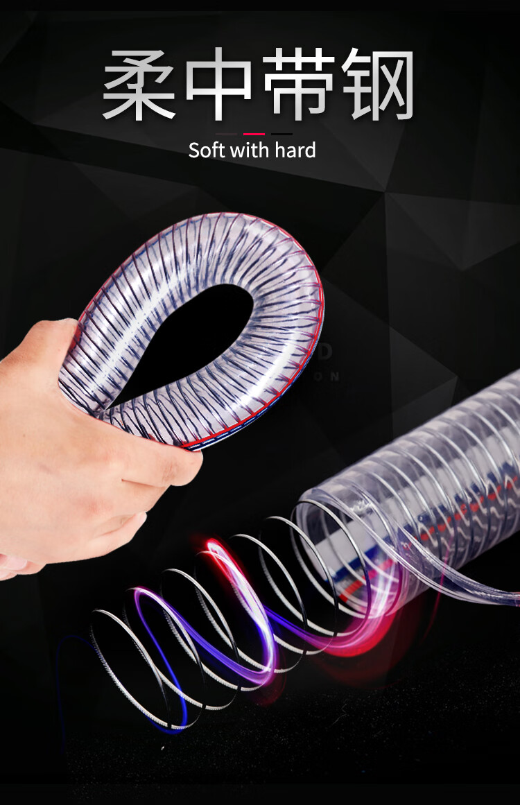 Zhuoji pvc steel wire hose plastic pipe high temperature resistant and corrosion resistant steel wire pipe pvc transparent water pipe with water pump 50 vacuum tube inner diameter 60 mm (2.2 inches) thick 4MM