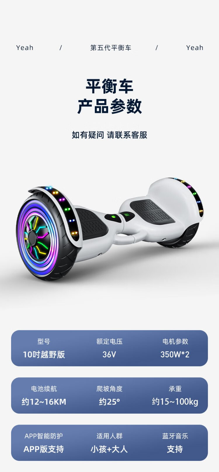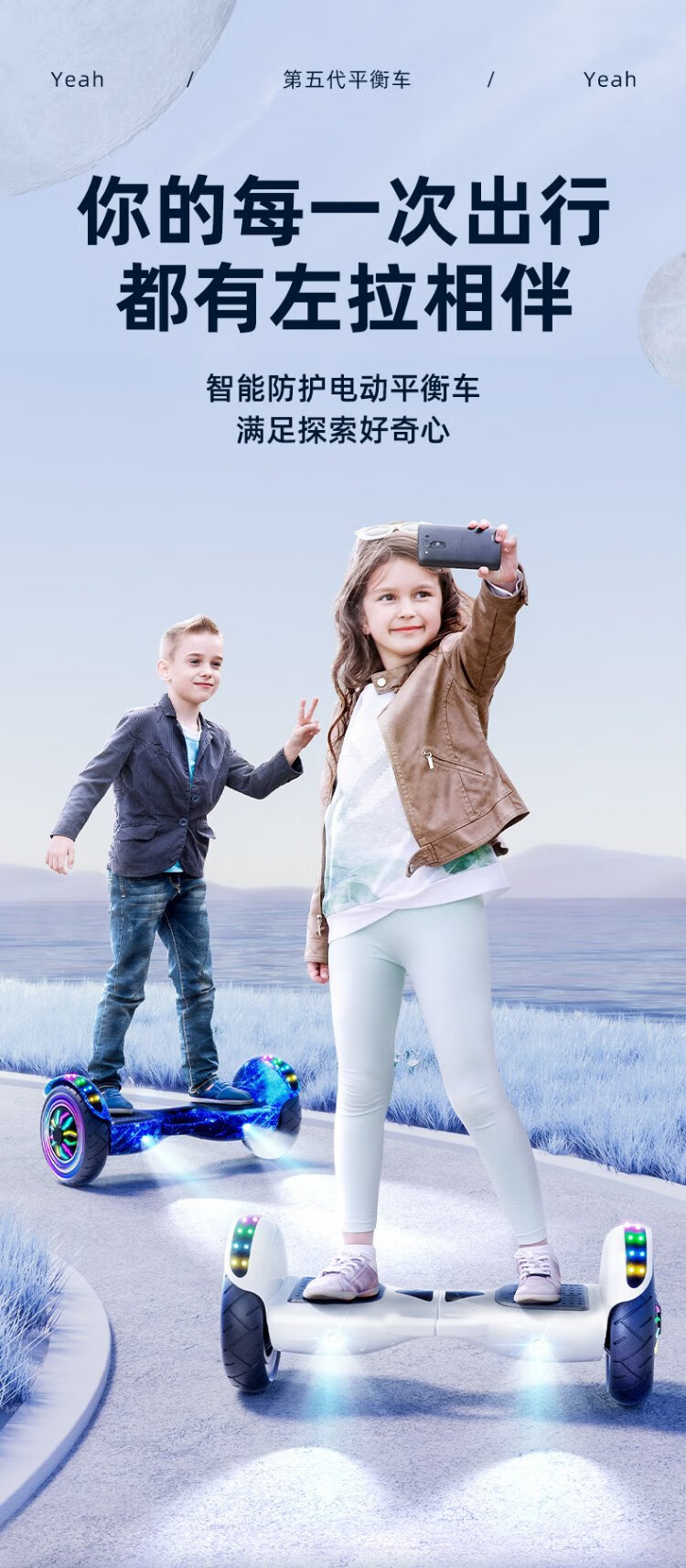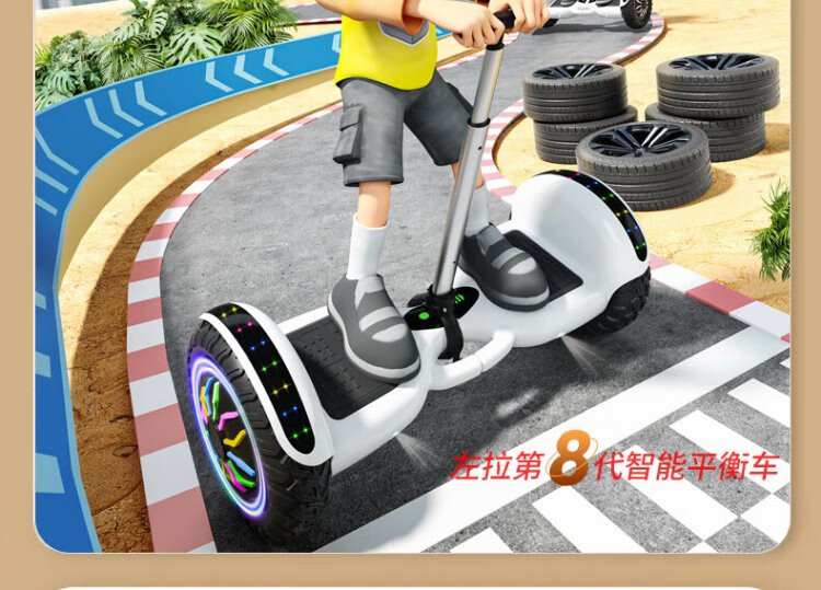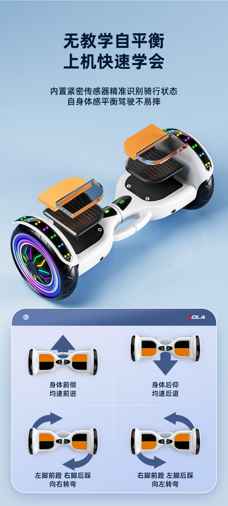 ZOLA electric balance car for children and adults somatosensory car parallel car two-wheel self-balancing 6-12 years old handrail off-road wheel 6.5-inch flagship white APP protection + glare wheel