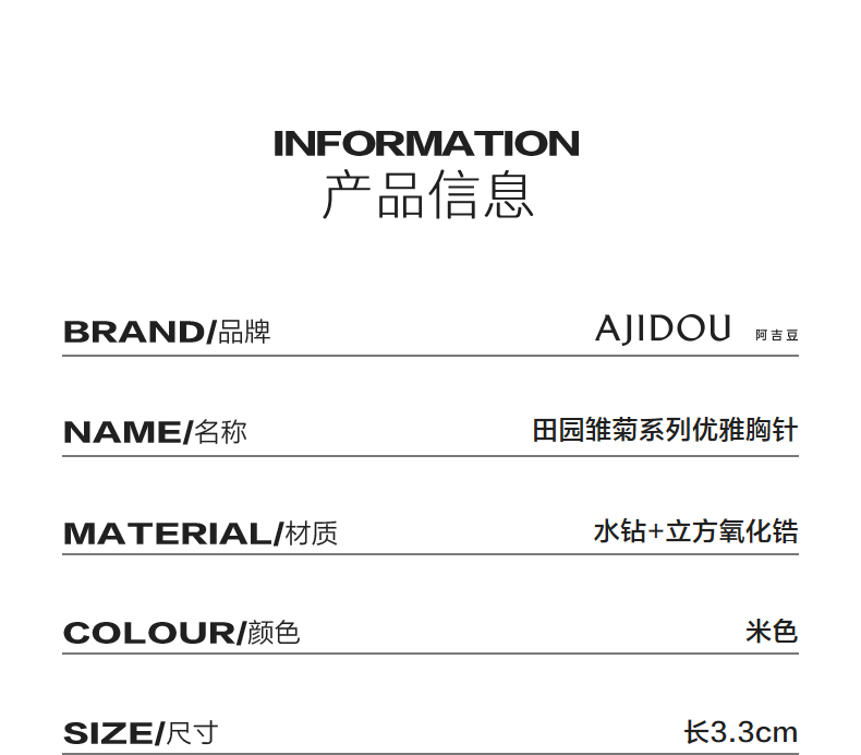 AJIDOU birthday gift AJIDOU pastoral daisy series elegant brooch beige length 3.3cm