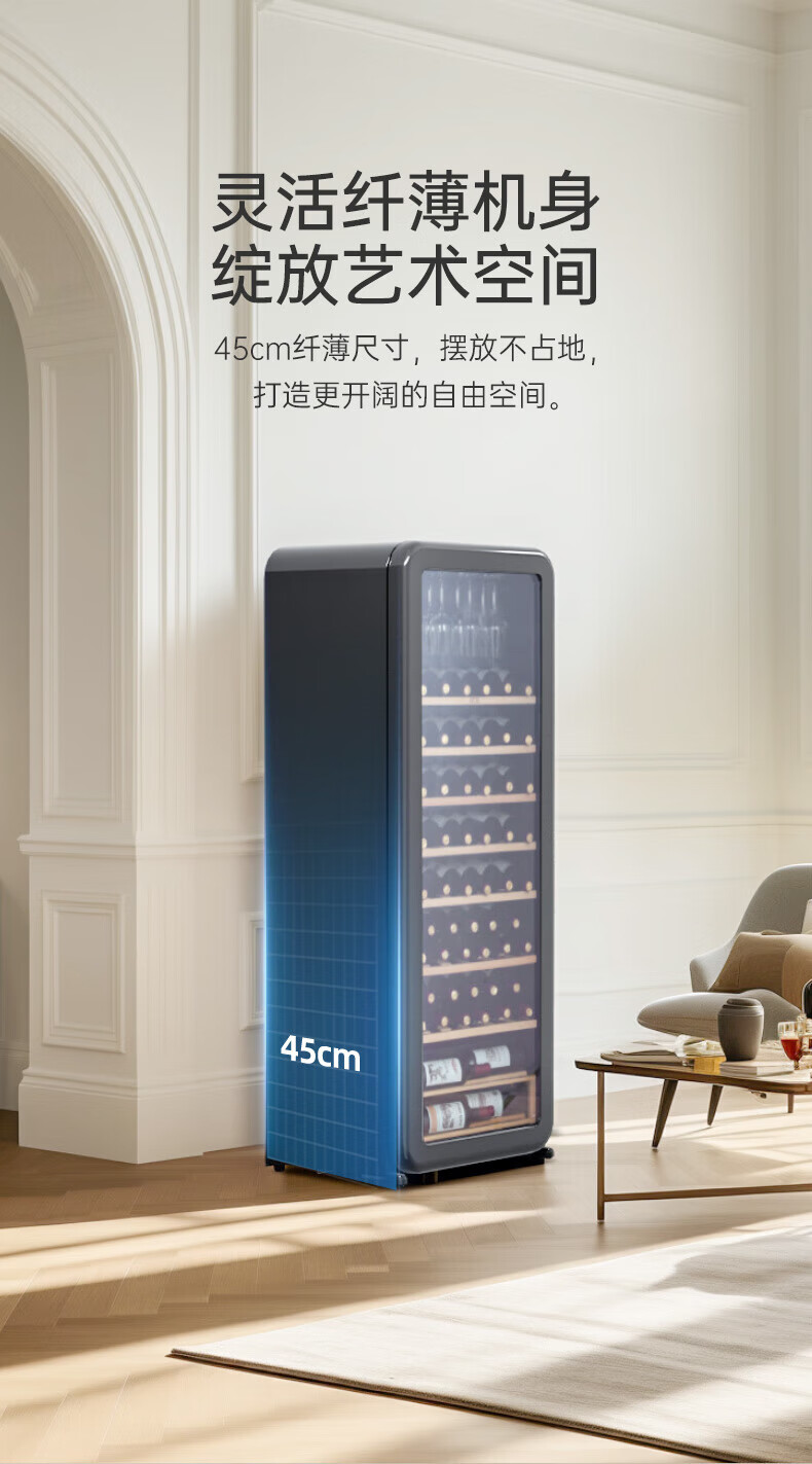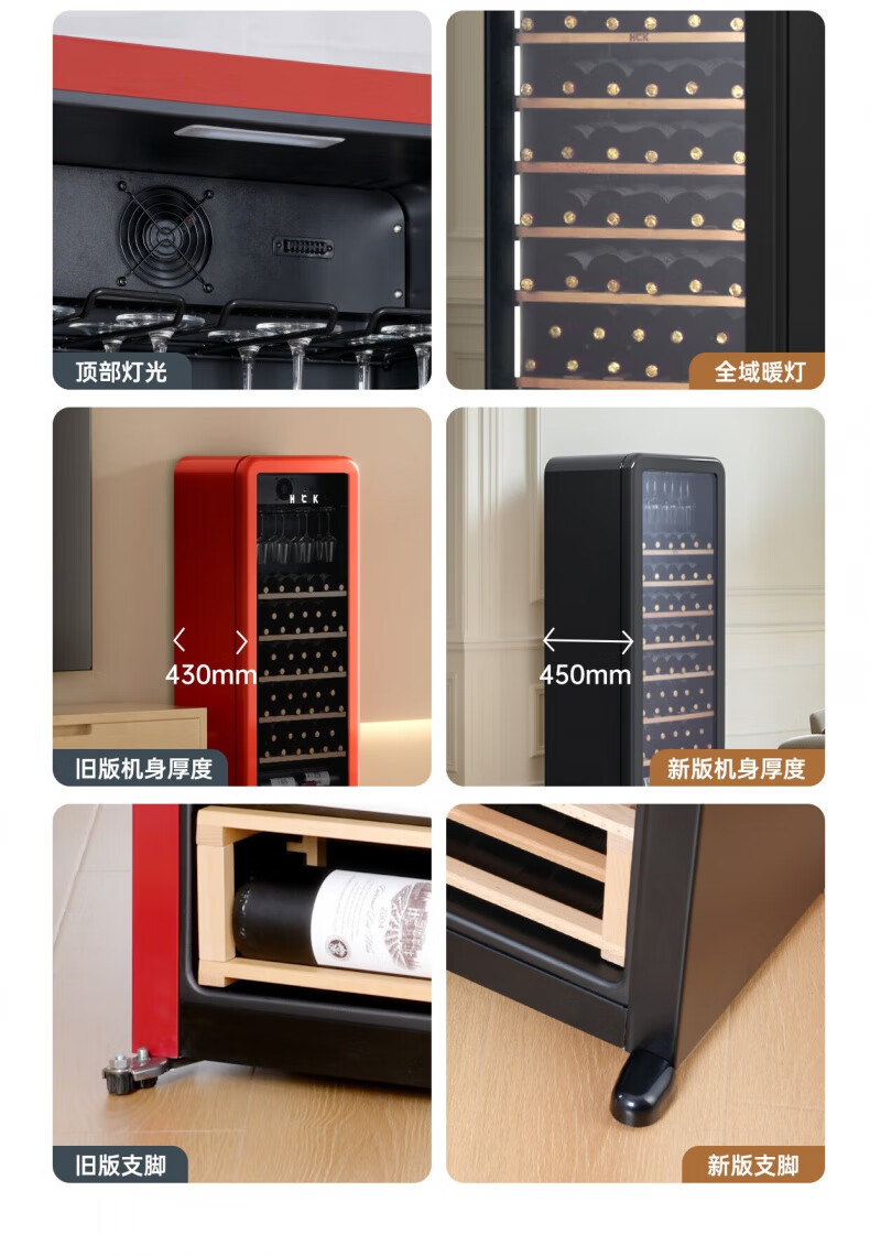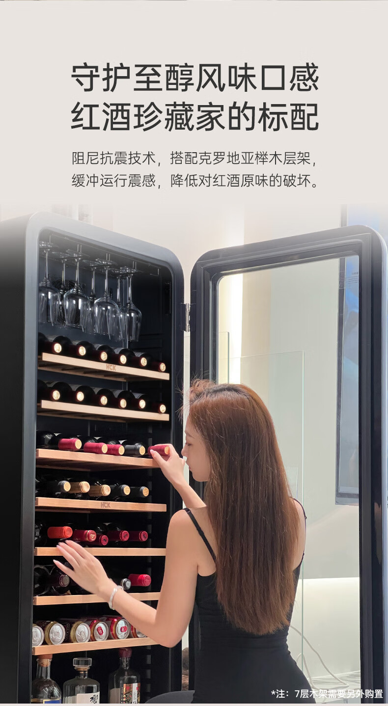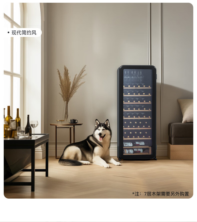 HCK Husky Wine Cabinet New Year's Must-Have 212L Ultra-Thin Home Refrigerator Constant Temperature Red Wine Cabinet Tea Humidifying Cabinet Embedded Living Room Red Wine Refrigerator Freezer Ice Bar Thin Wine Cabinet丨Starry Black | 85 Bottles 212L