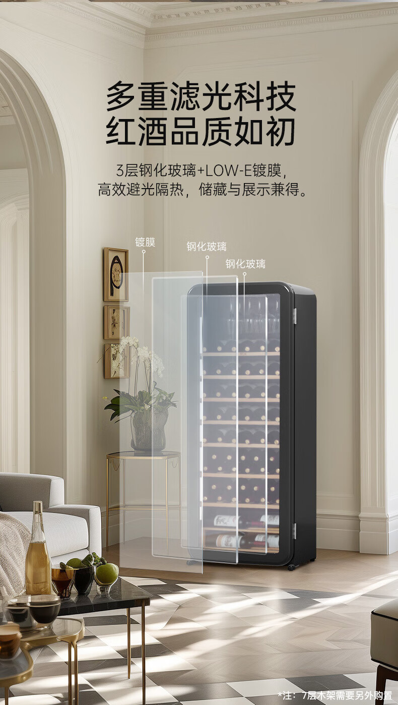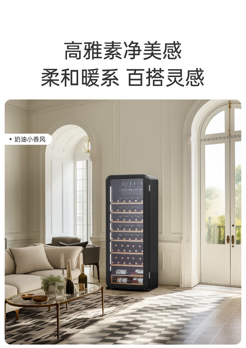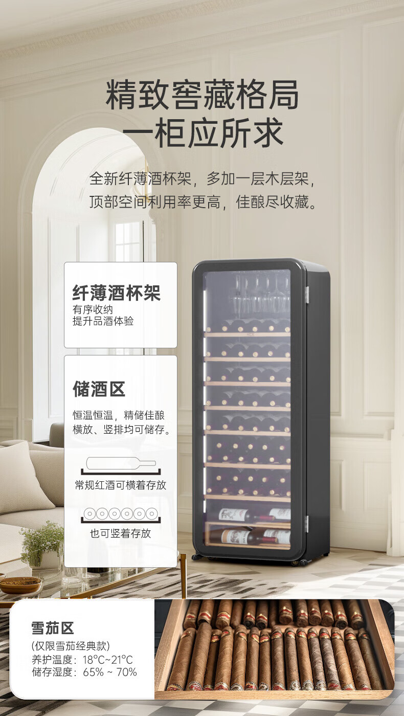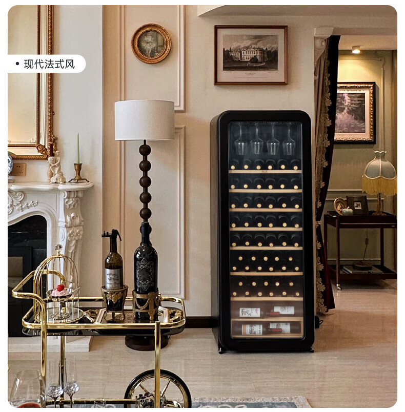 HCK Husky Wine Cabinet New Year's Must-Have 212L Ultra-Thin Home Refrigerator Constant Temperature Red Wine Cabinet Tea Humidifying Cabinet Embedded Living Room Red Wine Refrigerator Freezer Ice Bar Thin Wine Cabinet丨Starry Black | 85 Bottles 212L