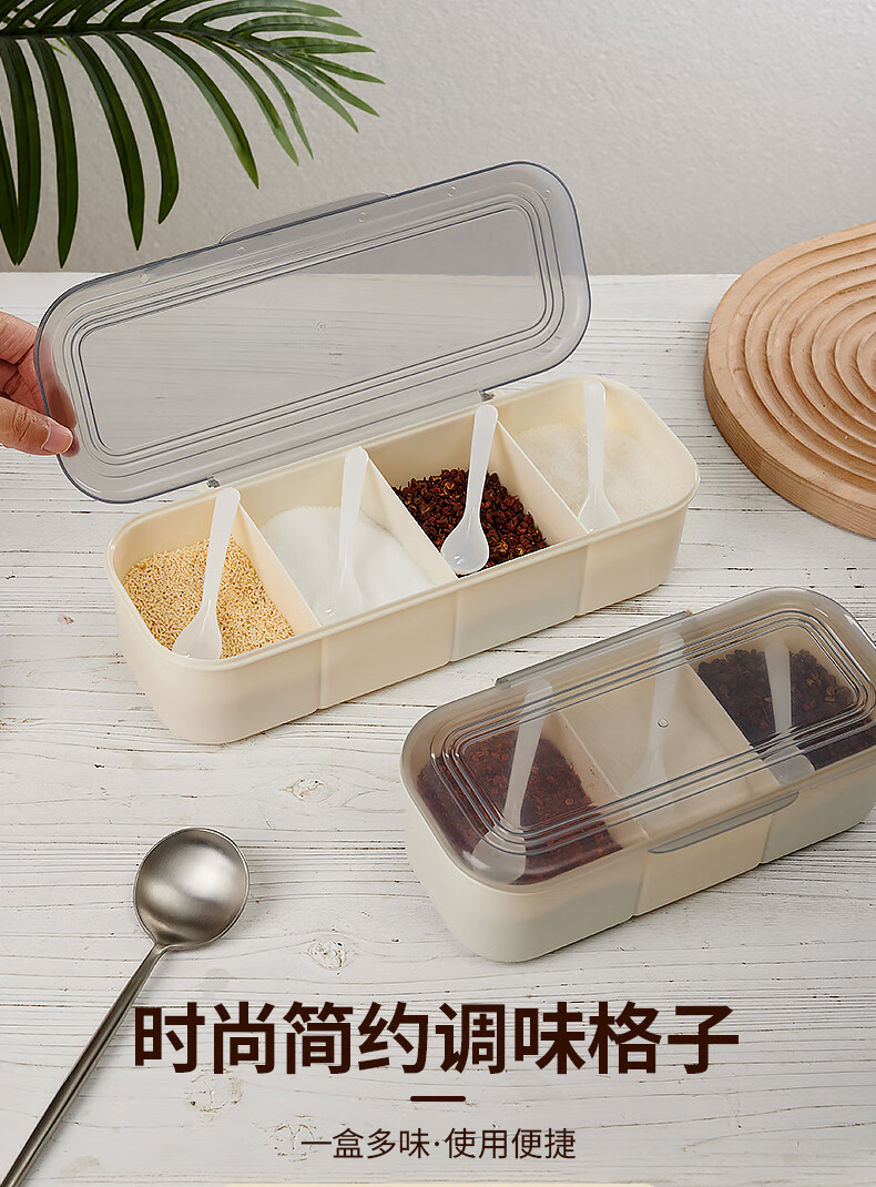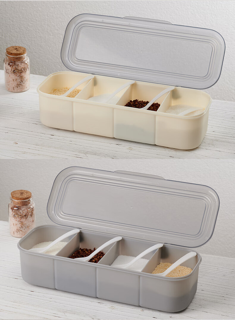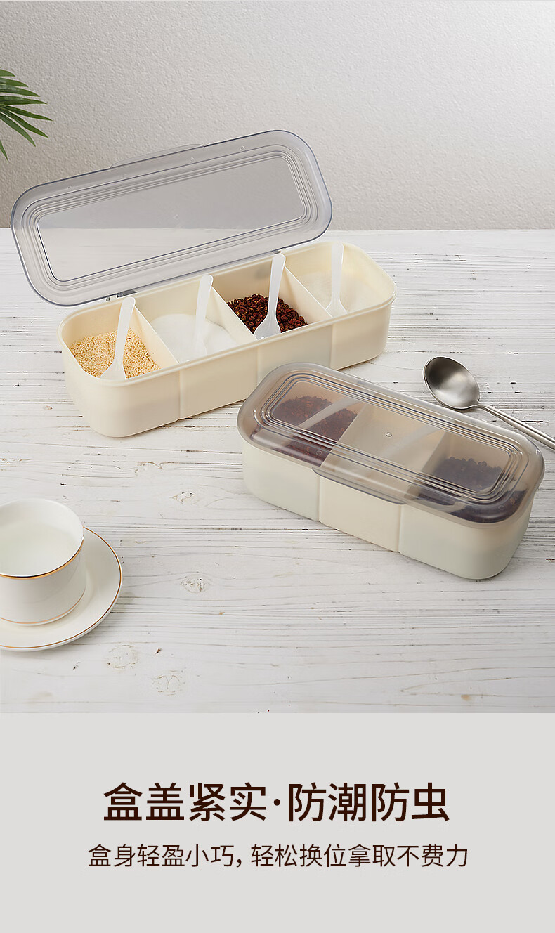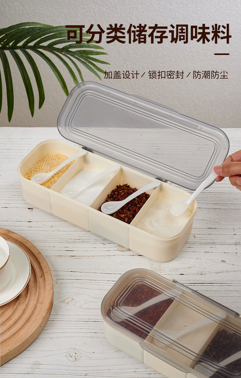 Zhenxiqi seasoning box multi-grid with 4 spoons seasoning jar seasoning box with lid plastic seasoning storage box seasoning box milk white 4 compartments + 4 spoons 2L