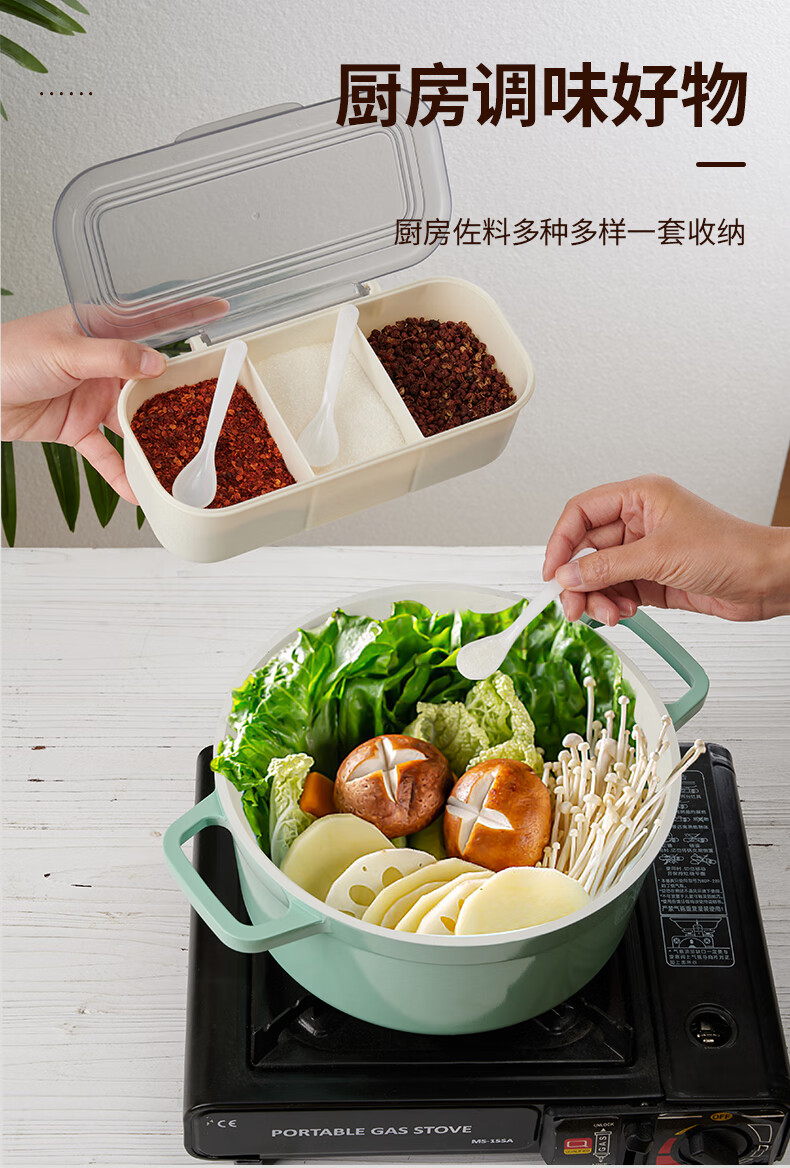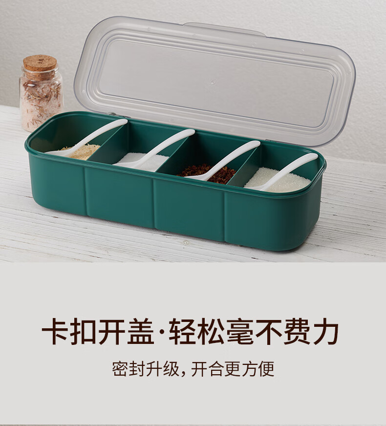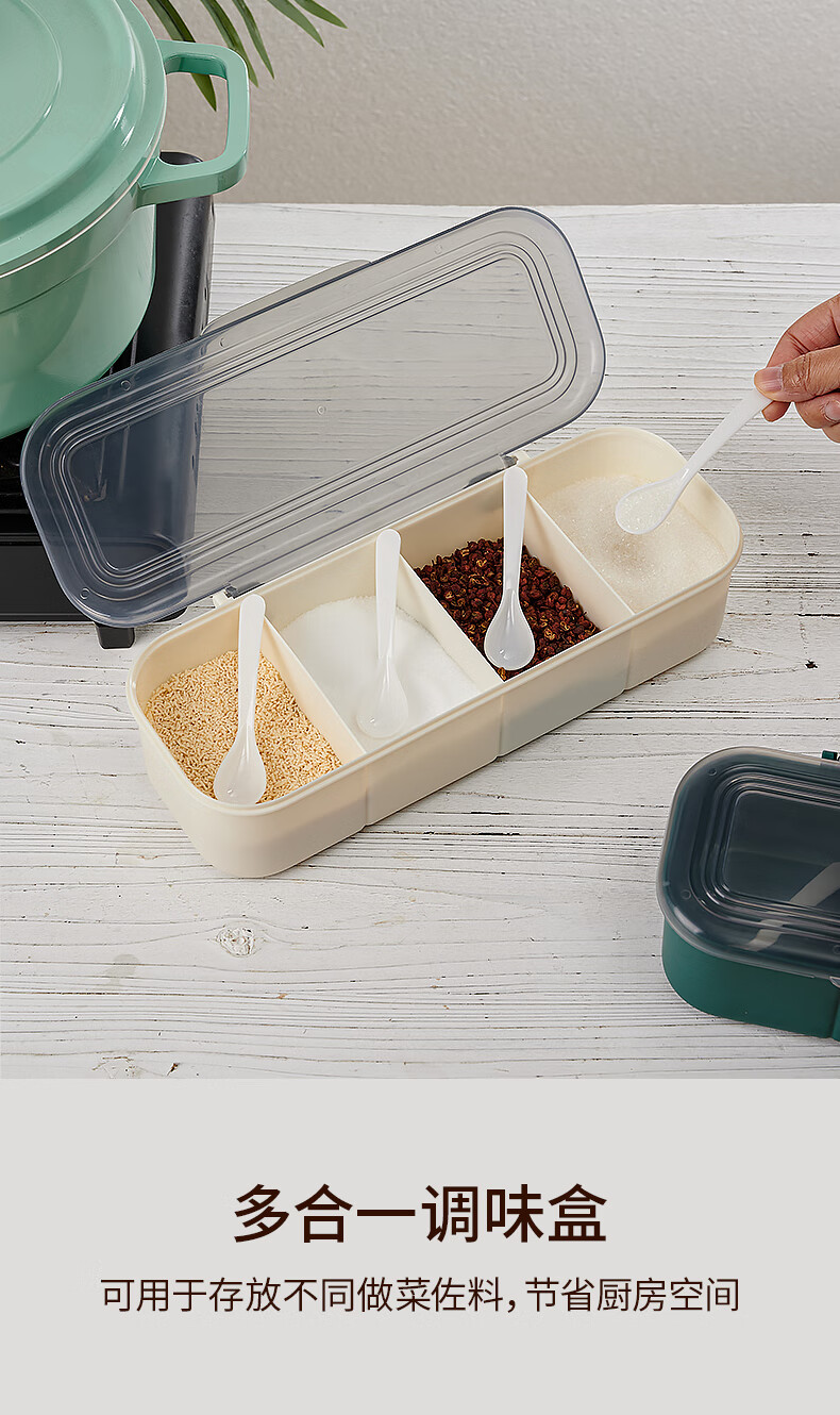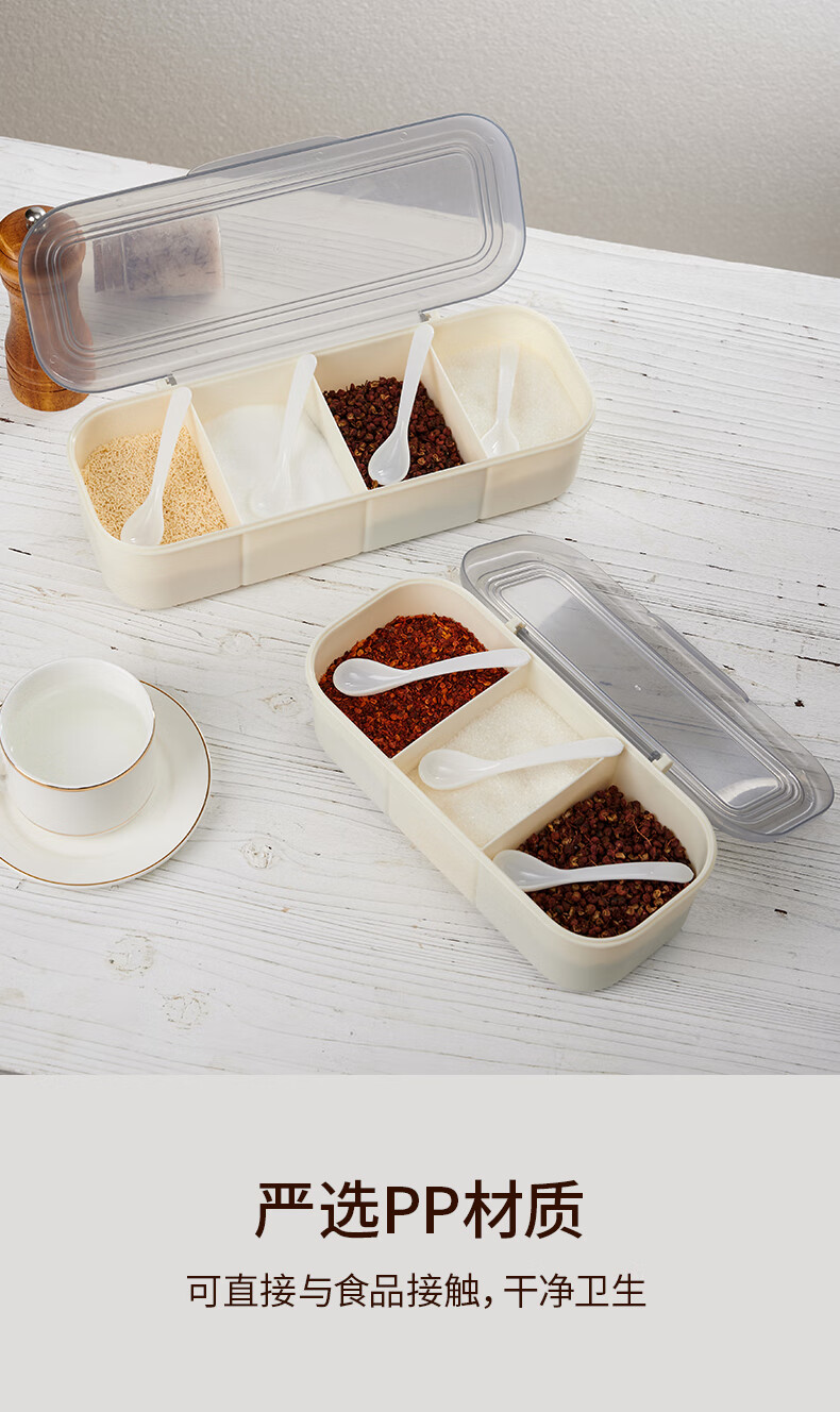 Zhenxiqi seasoning box multi-grid with 4 spoons seasoning jar seasoning box with lid plastic seasoning storage box seasoning box milk white 4 compartments + 4 spoons 2L