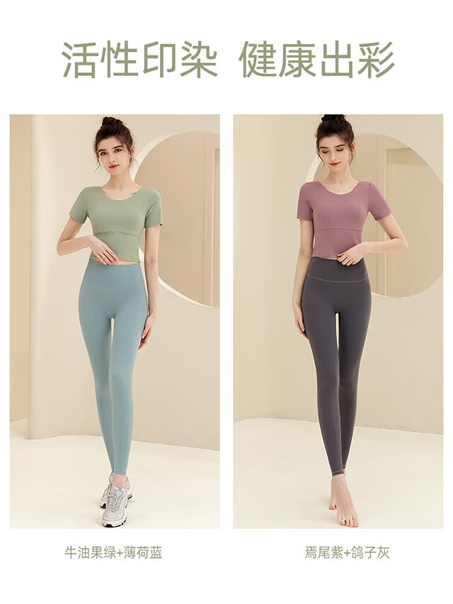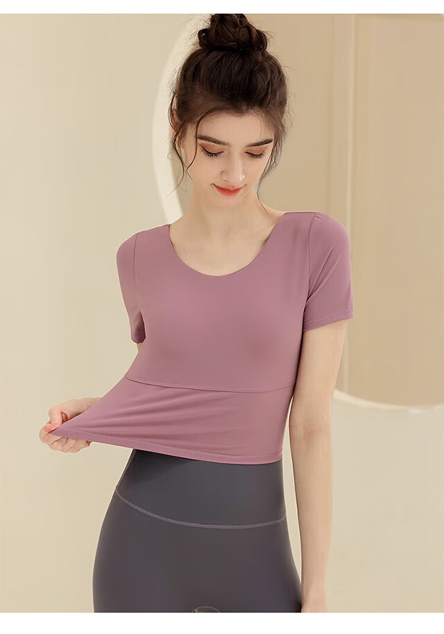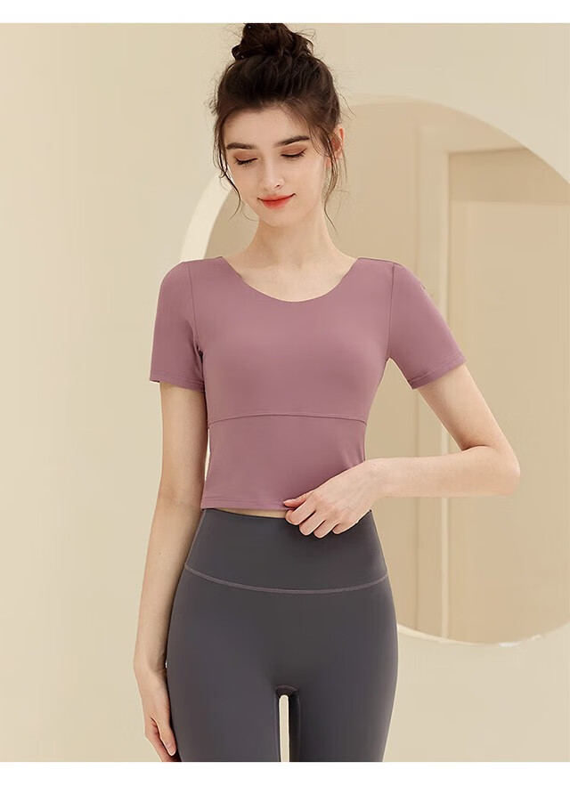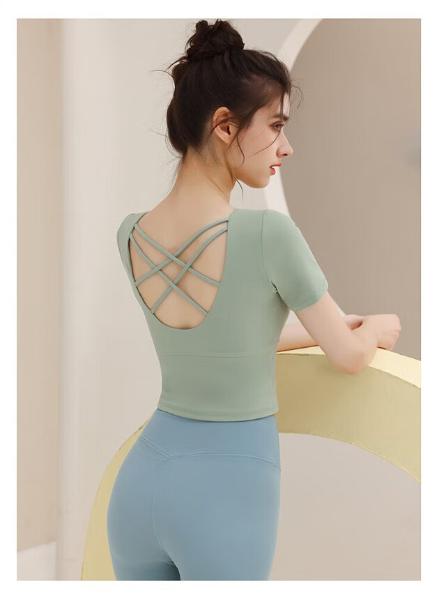 Shuangxiu yoga clothing top women's short-sleeved shock-proof belt with chest pad running fitness professional Pilates training sportswear beautiful back Klein blue top + dove gray pants L (110-120Jin Jin equals 0.5 kg)