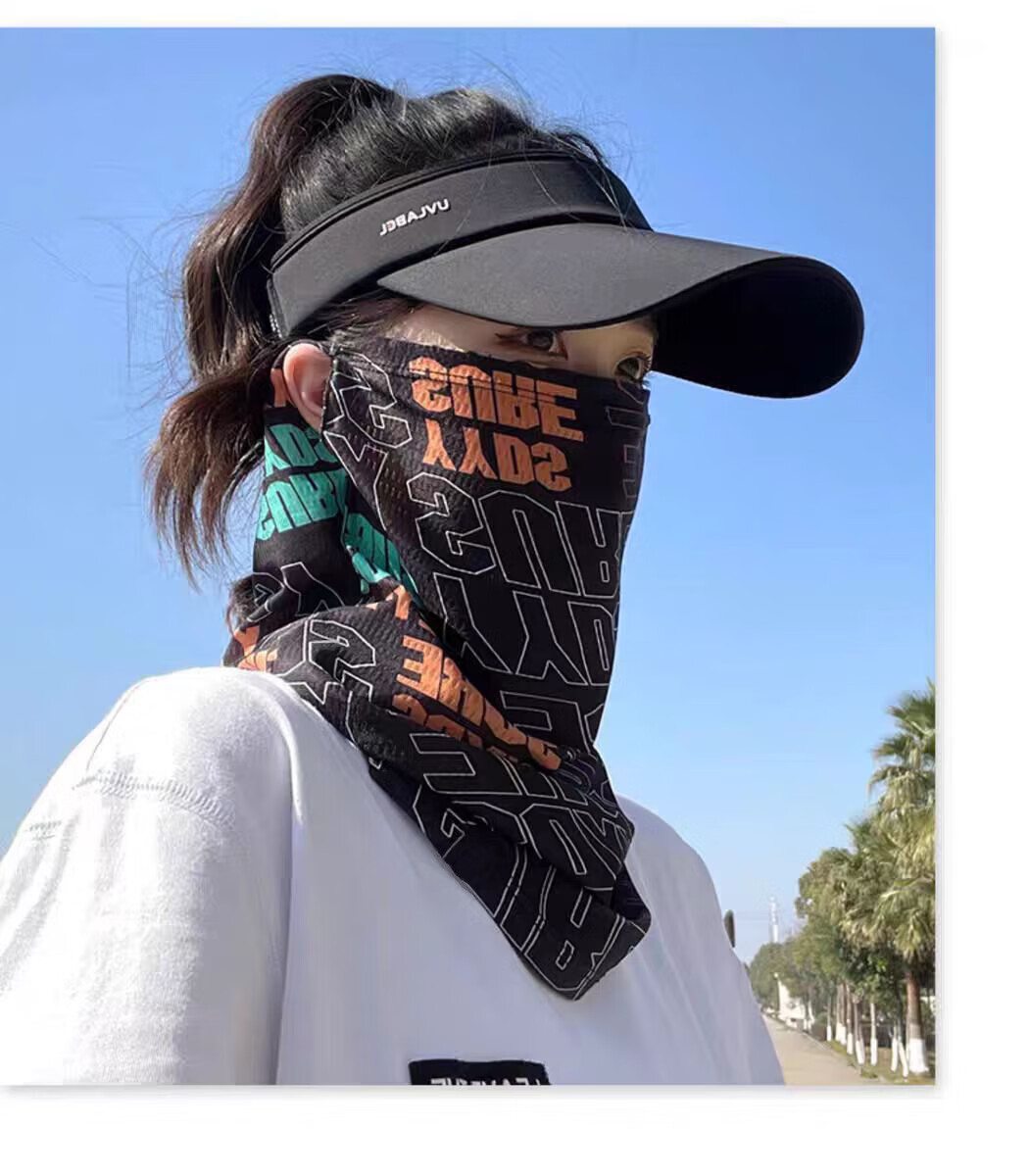 Shiftend sunscreen mask ice silk neck cover men's sunshade mask neck guard summer face mask fishing outdoor cycling summer thin black-mask