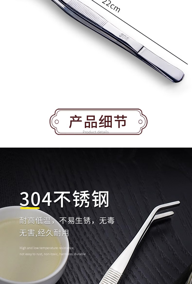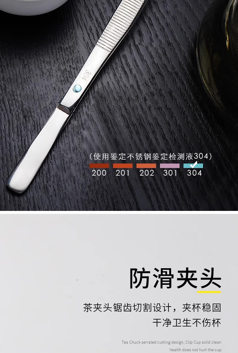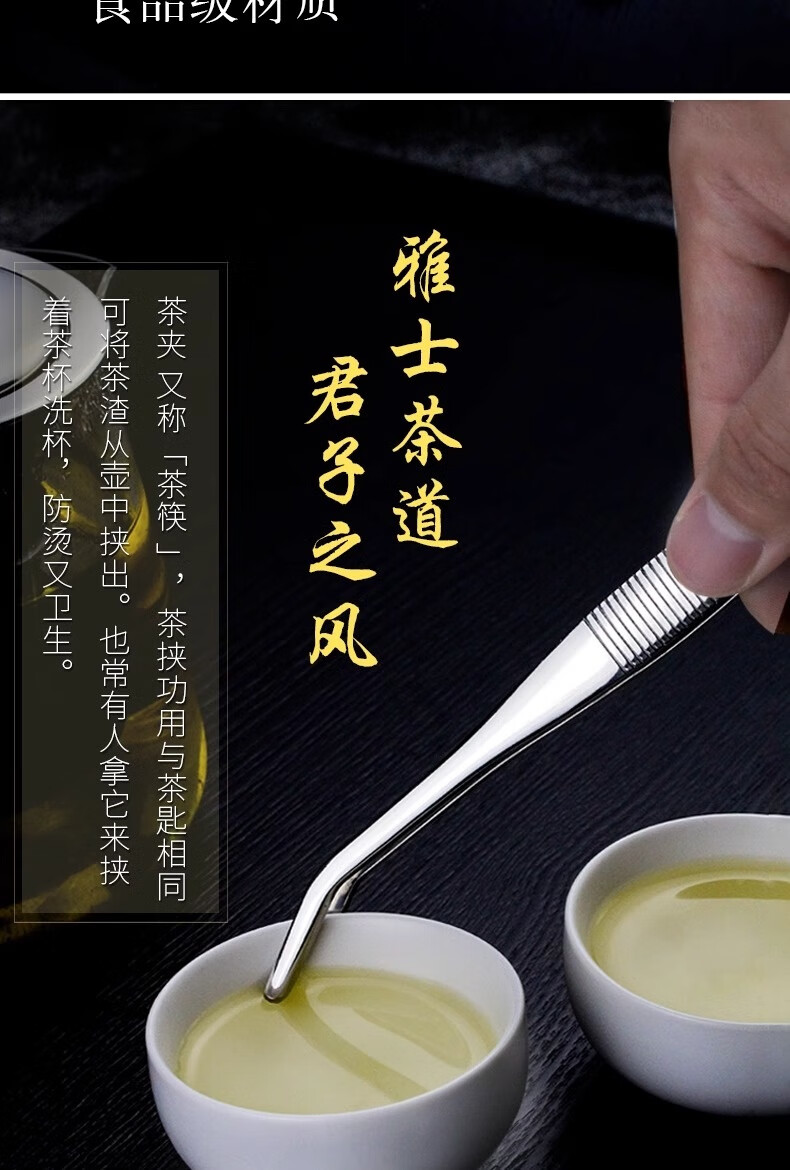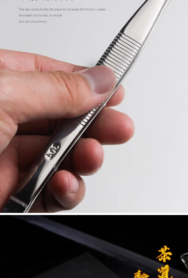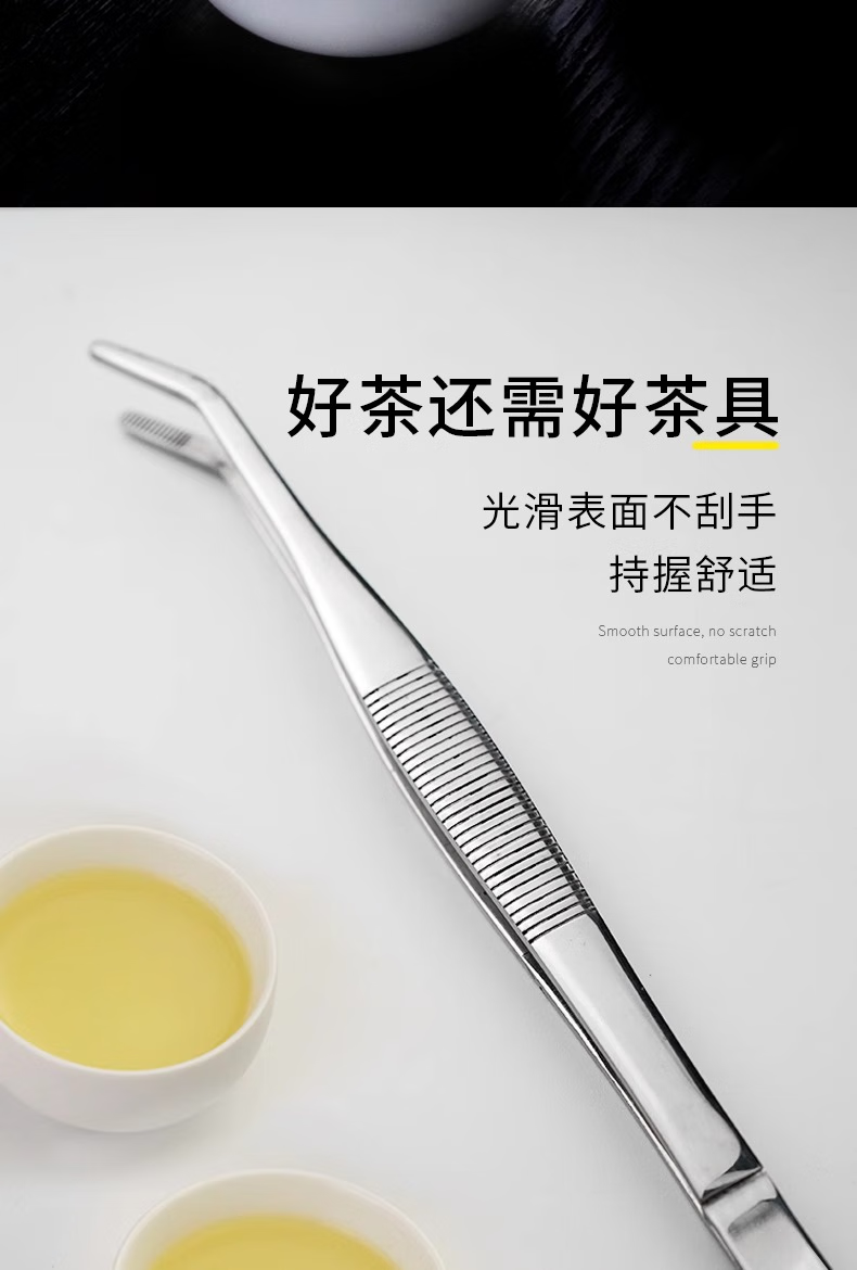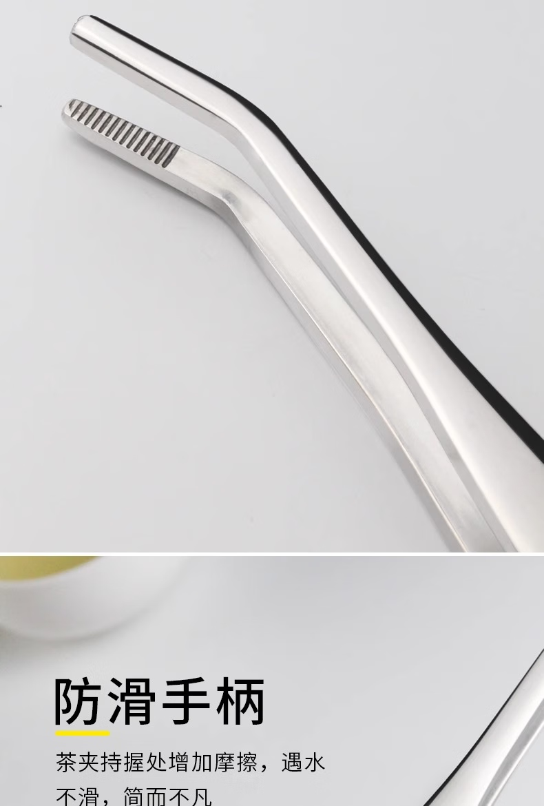 Mumer tea clip, tea tweezers, copper tea clip, non-slip cup clip, Kung Fu tea set accessories, stainless steel tea cup clip, tea tweezers, stainless steel titanium curved tea clip with teeth