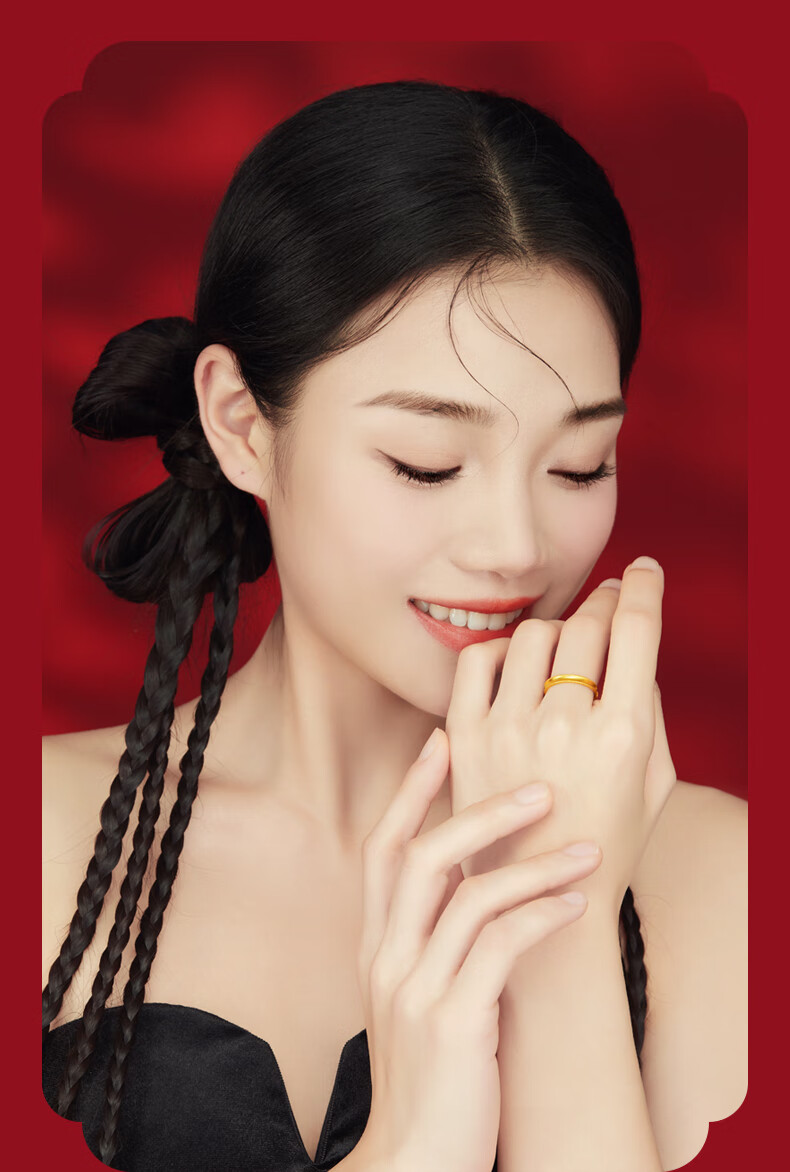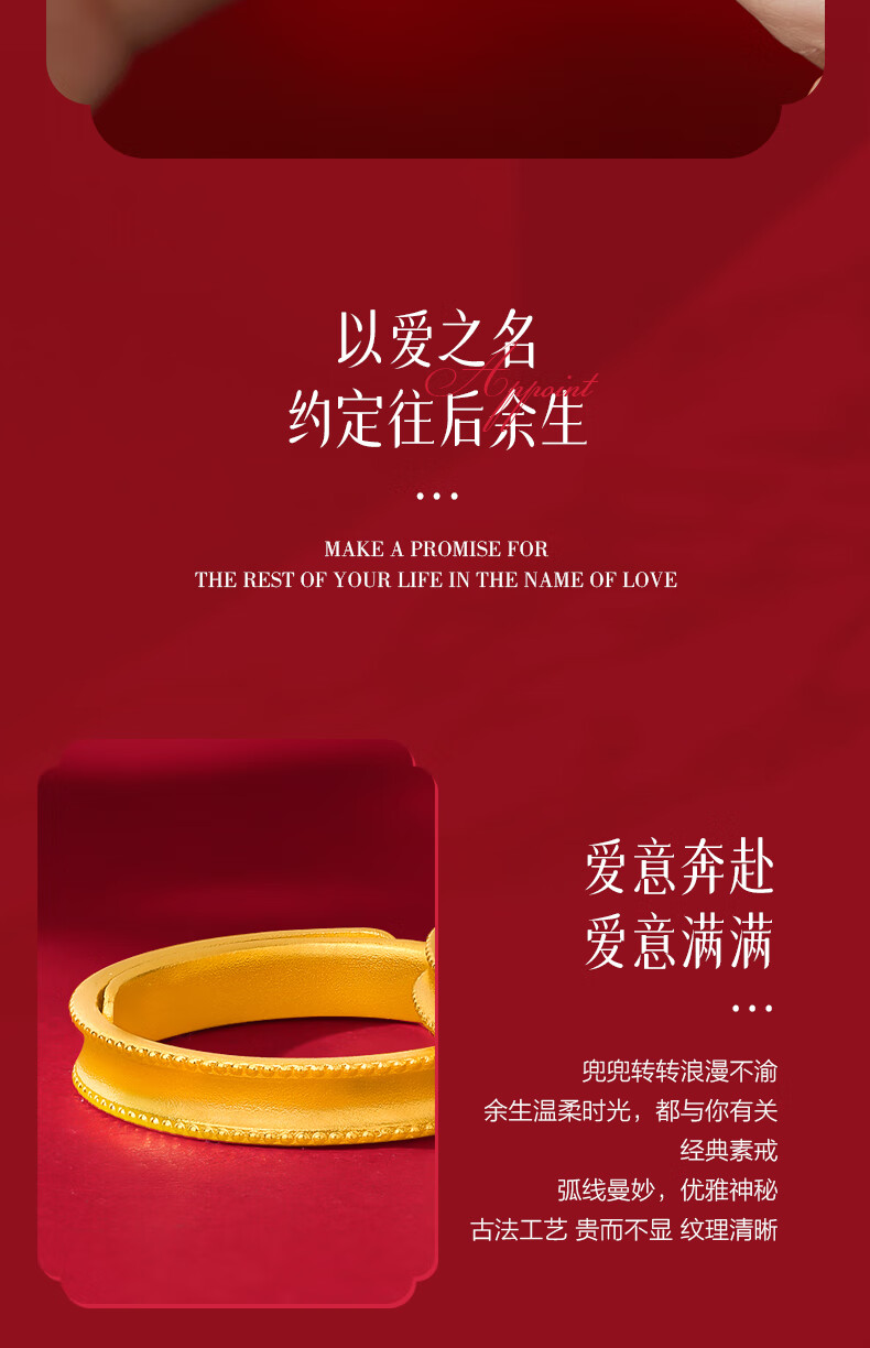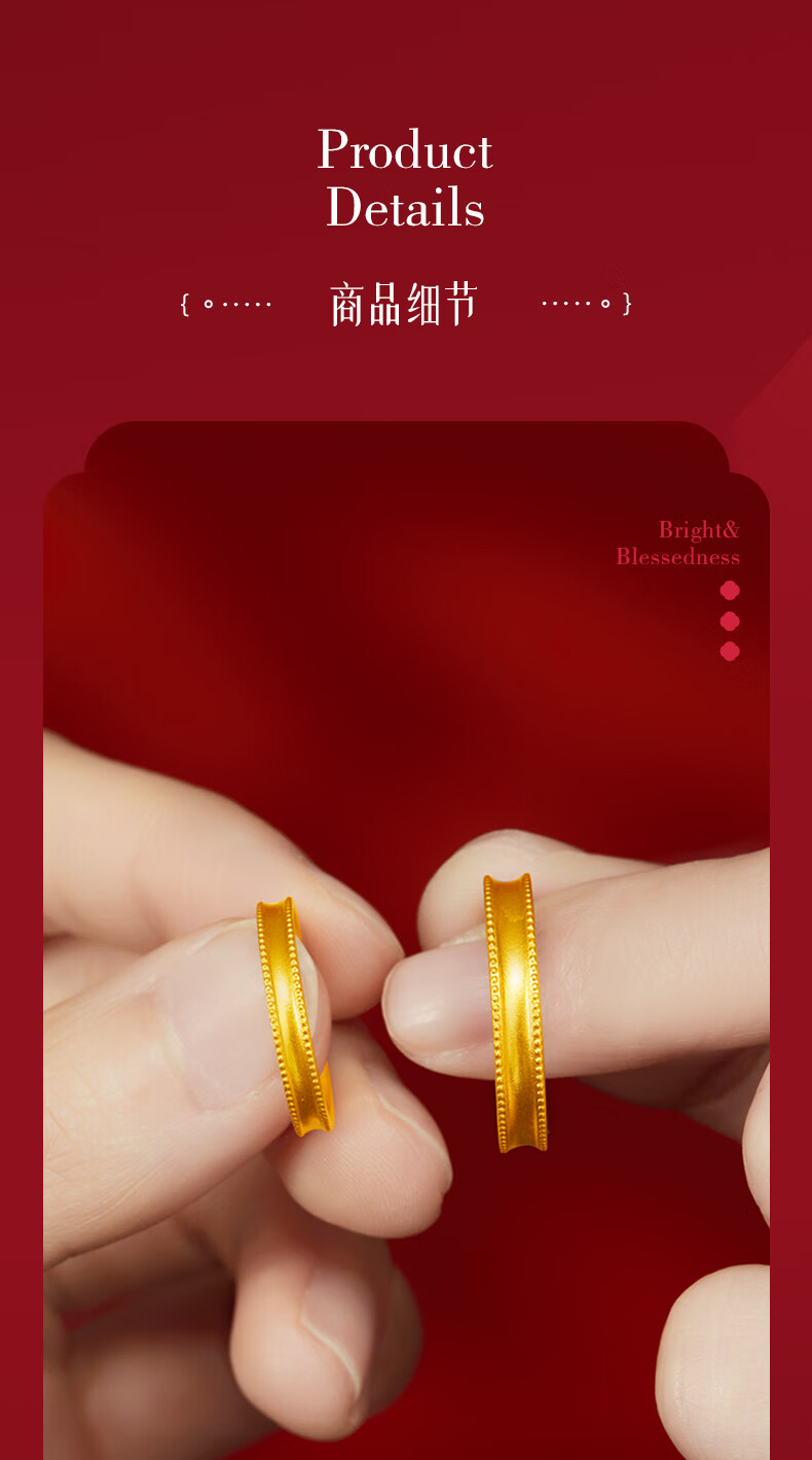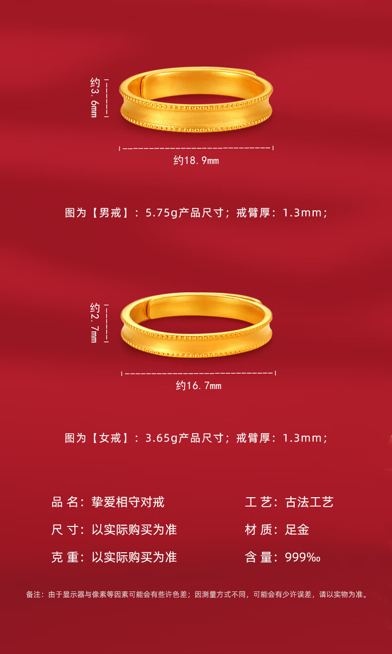 Zhongxin Jewelry Beloved Couple's Ancient Couple's Ring Gold Live Ring Wedding Jewelry Pure Gold 999 Plain Ring Wedding Ring 3.55g (Female Ring)