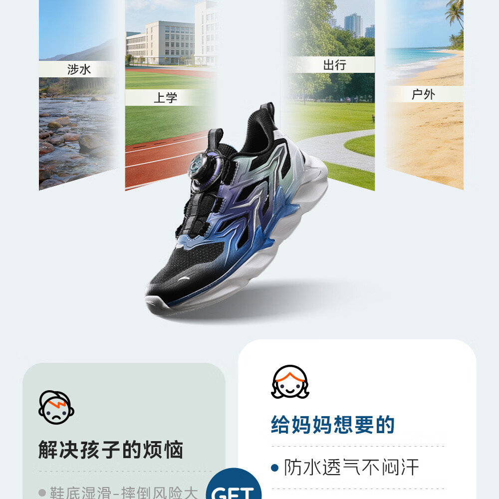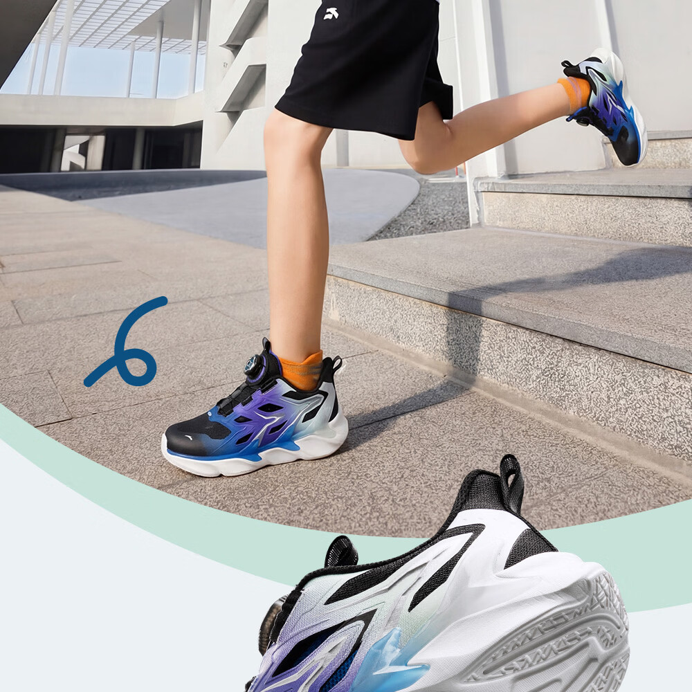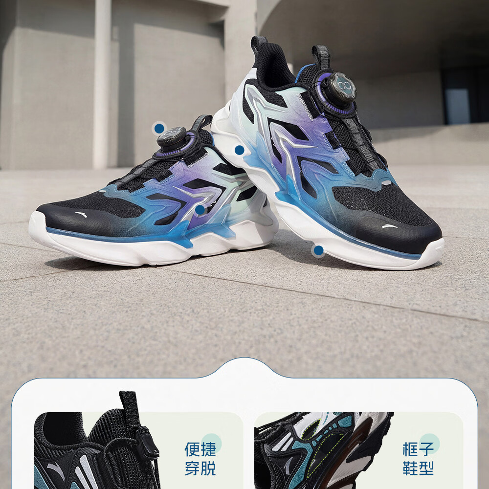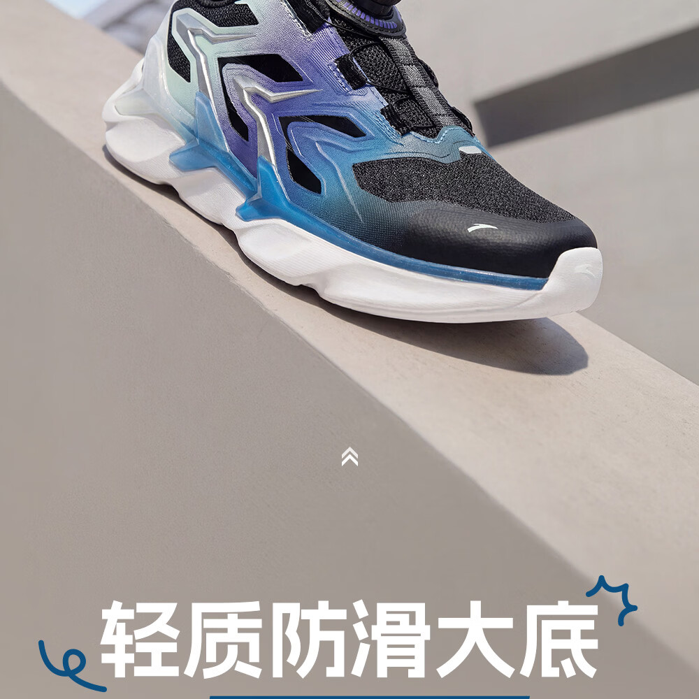 ANTA Children's Sandals Men's Big Children's Beach Shoes 2026 Summer New Bow Speed ​​Baotou Physical Education Class Frame Sports Running Shoes Black/Exciting Blue/Fluorescent Equatorial Green-2 37 Size