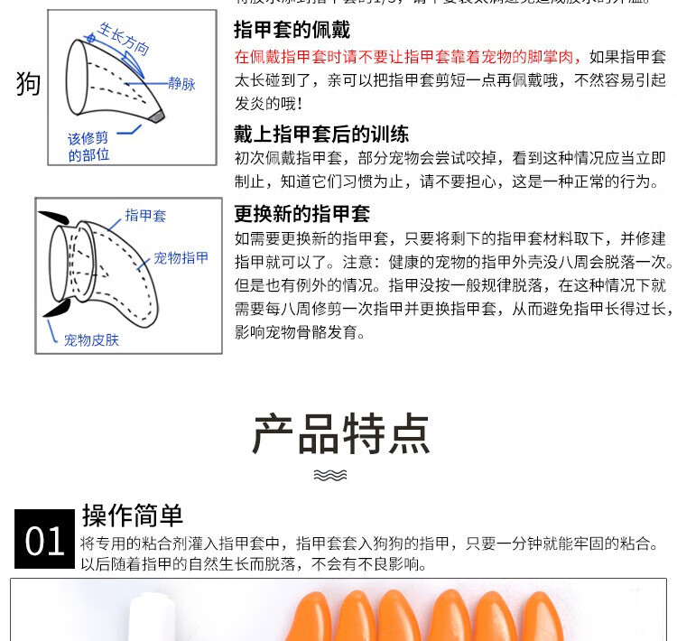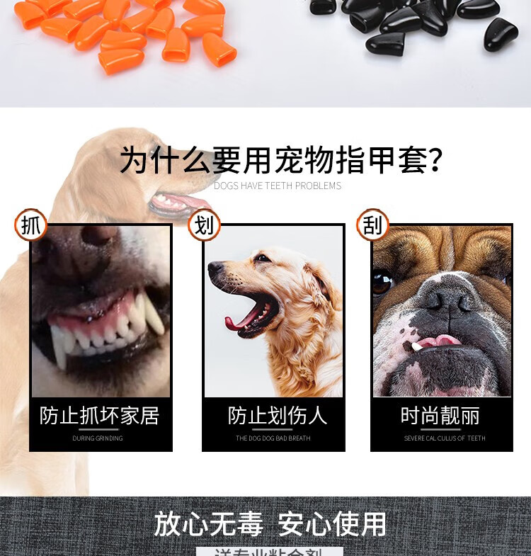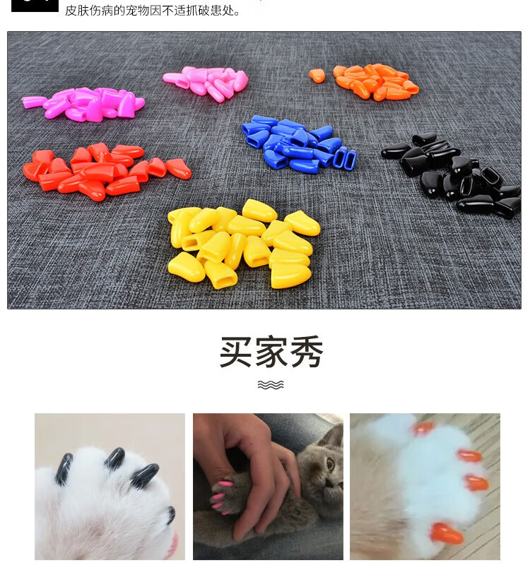 Gong Du pet nail cover for cats and dogs, anti-cat scratch sofa protection curtain artifact, cat claw cover for dogs to prevent scratches, orange for cats (20 pieces), S suitable (2.5-5kg)