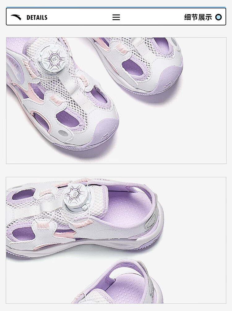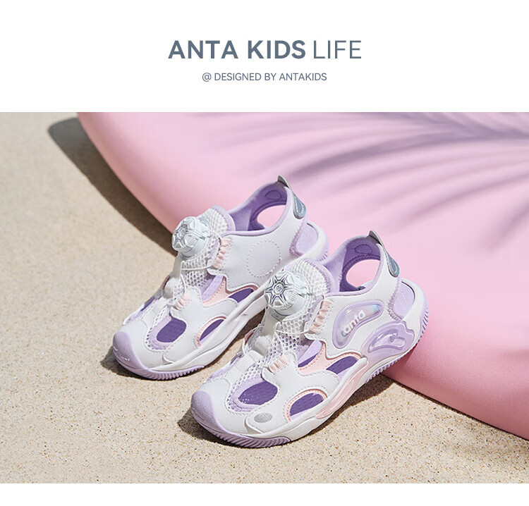 Anta Children's Sandals Girls Beach Shoes 2025 Summer New Baotou Breathable and Comfortable Student Frame Shoes Anta White/Pearl Pink/Silver-1 31