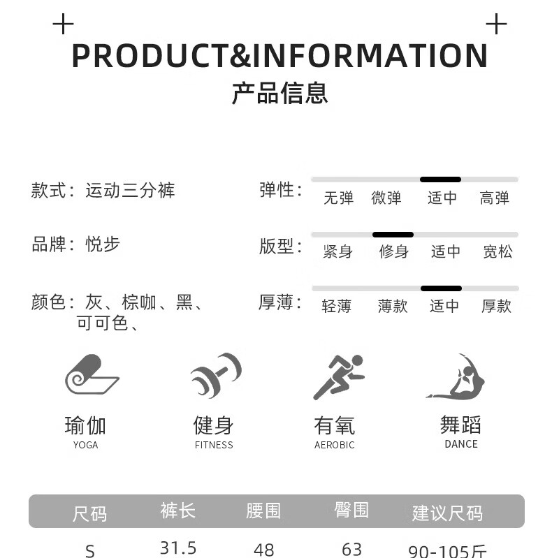 Yuebu Yoga Shorts Three-quarter Pants Women's Summer Thin Cycling Outerwear High-waisted Hip-Lifting Fitness Pants Running Sports Pilates Ebony Gray Three-quarter Pants M Recommended Weight 105-115Jin Jin is equal to 0.5 kg