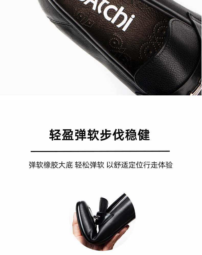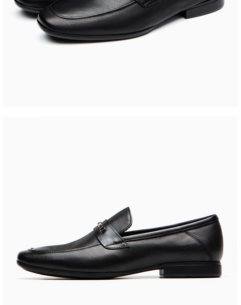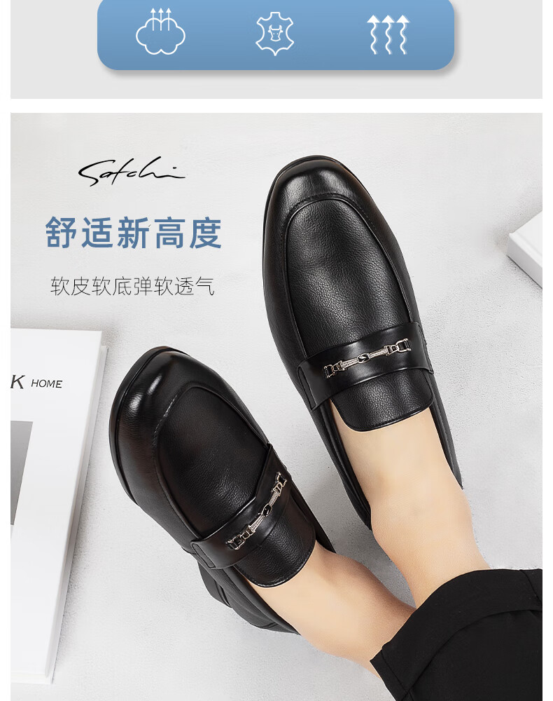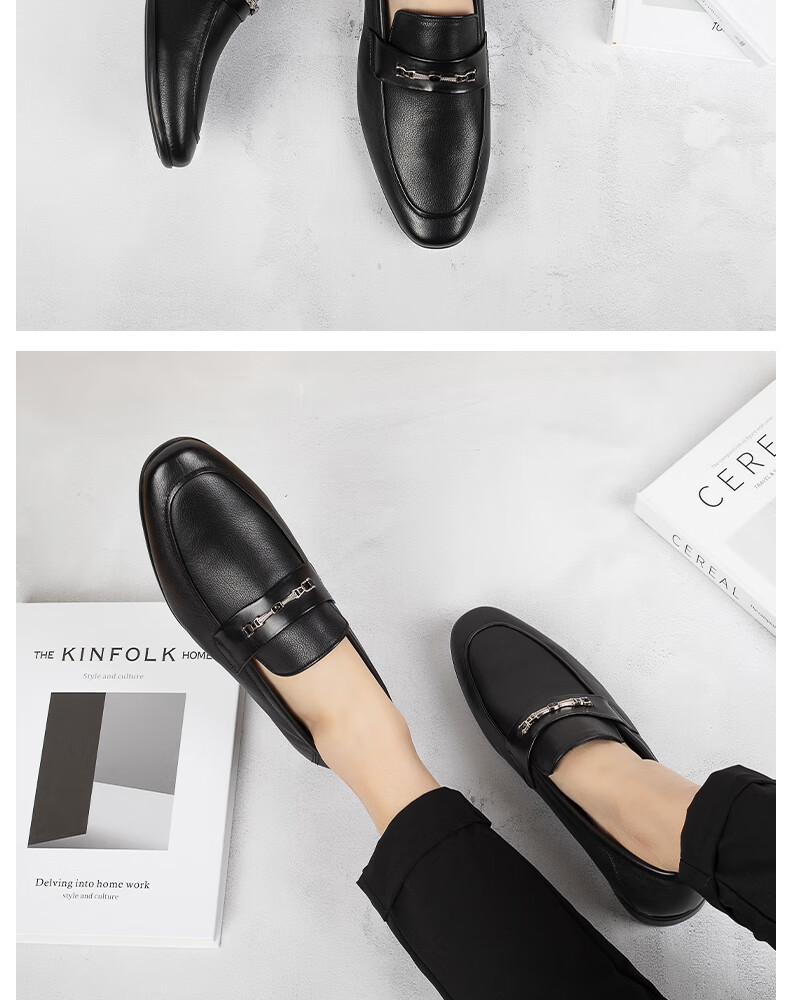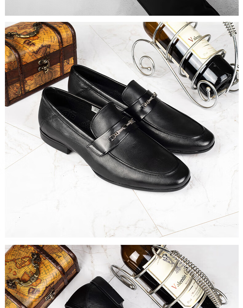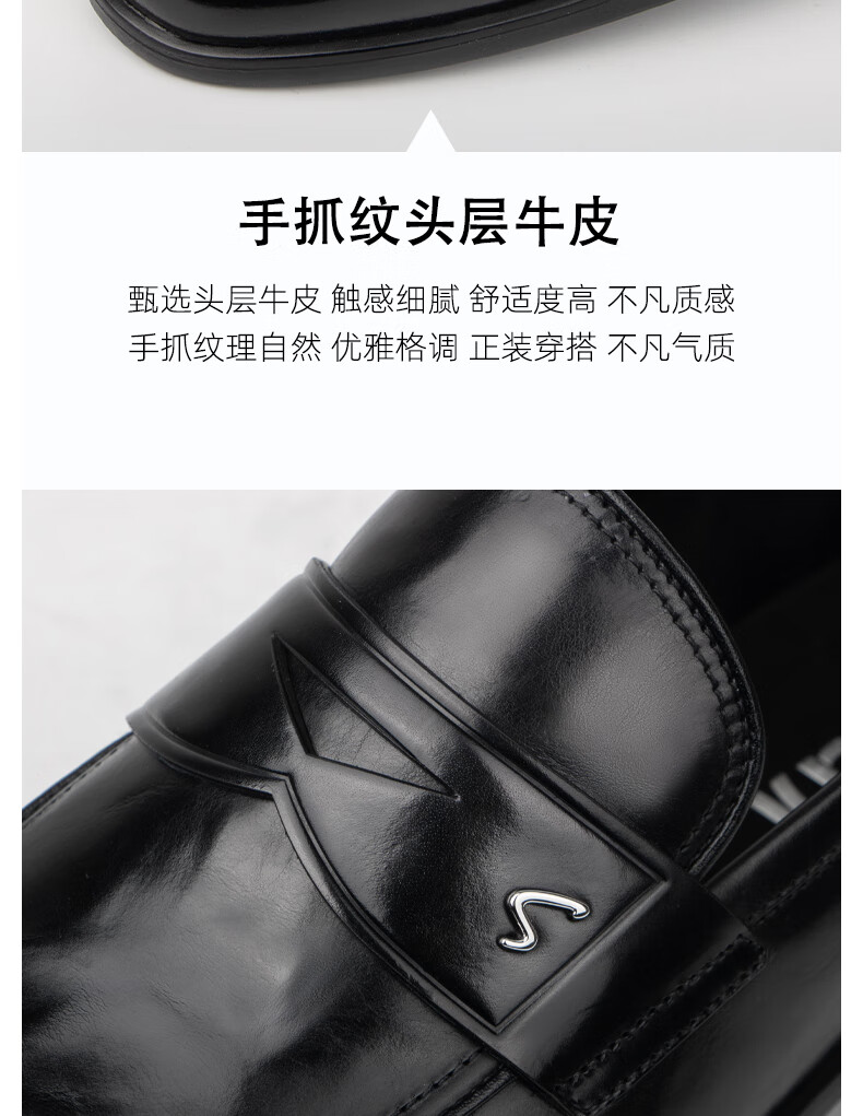 Sachi Men's Shoes Autumn Men's Casual Leather Shoes Business Formal Breathable Soft Sole Slip-on Black Hand Scratch Pattern 38