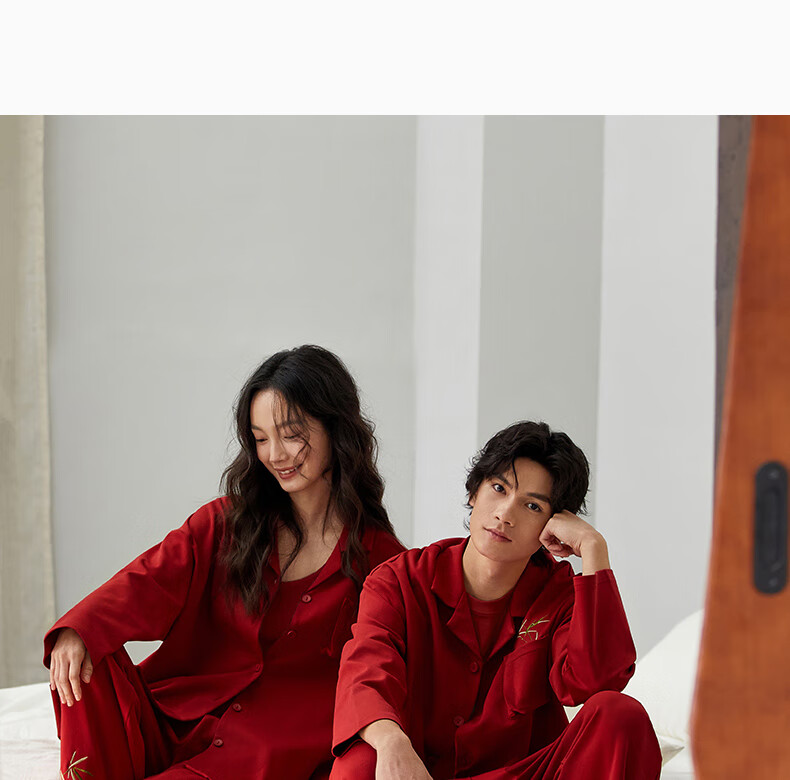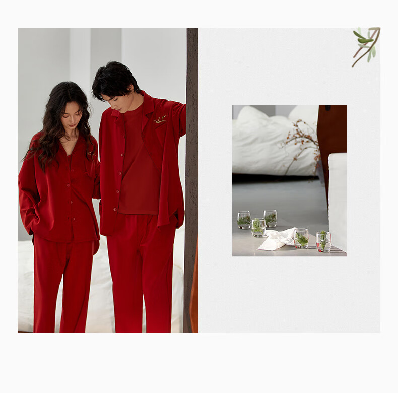 Yuenei Pajamas Wedding Newlywed Couple Suit Women's Spring and Autumn Pure Cotton Red Home Clothes Men's Zodiac Year Chinese Style New Chinese Style 22033 Chinese Red Women's Single Set L (Male 110-140 Jin Jin equals 0.5 kg / Female 110-120 Jin Jin equals 0.5 kg)