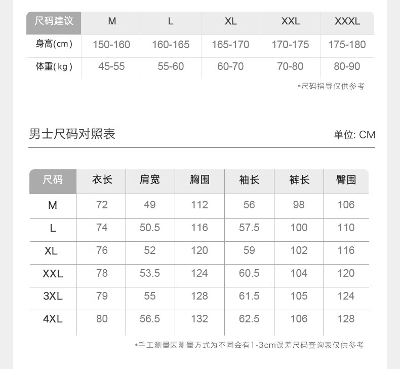 China (cm) 160-165/84-86 165-170 / 88-90 167-172 / 92-96 168-173 / 98-102 170-176 / 106-110