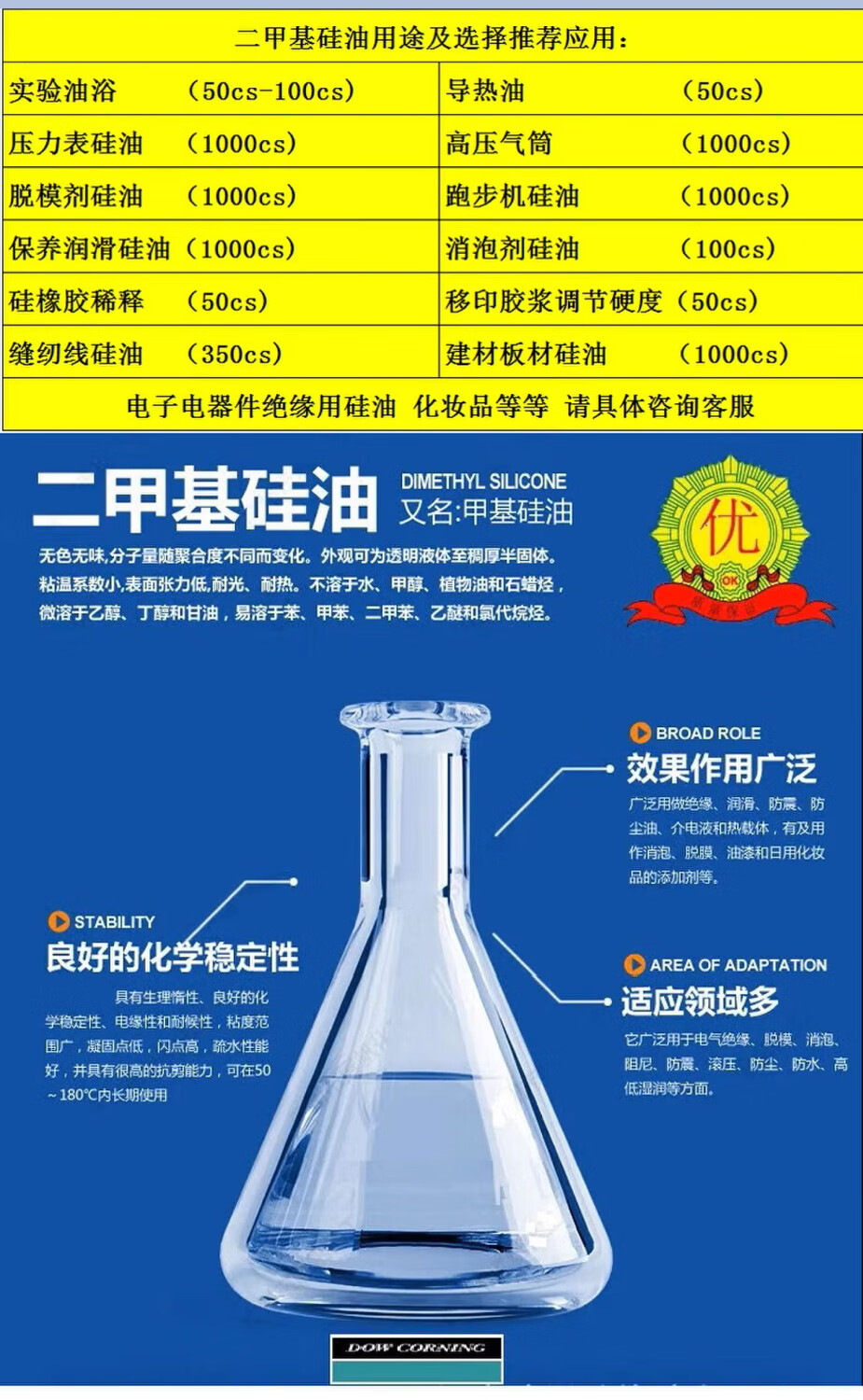 Tao Xidao Corning imported dimethyl silicone oil PMX-200 high temperature oil bath thermal oil release agent defoaming agent mechanical lubrication maintenance silicone oil insulation multi-viscosity optional Please consult customer service for more viscosities (do not take pictures, the default is 10CS) 100ML