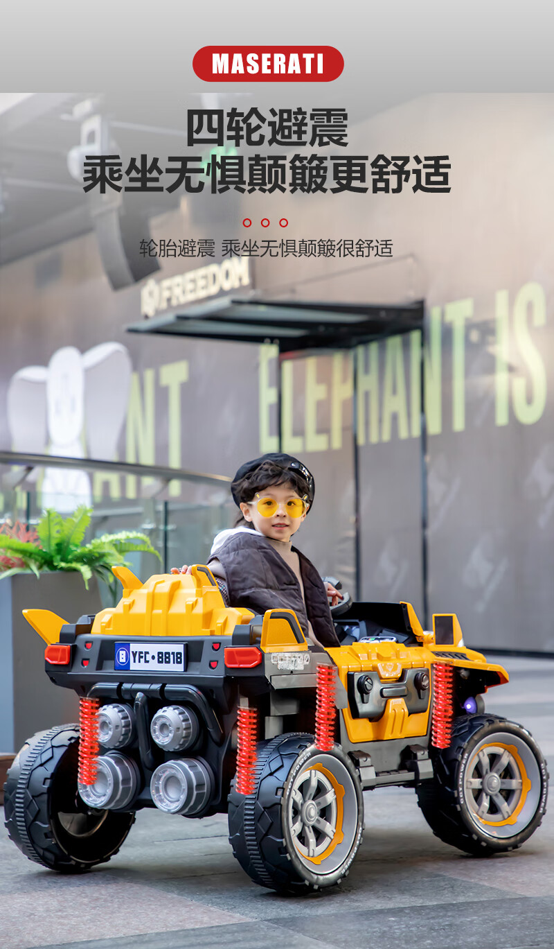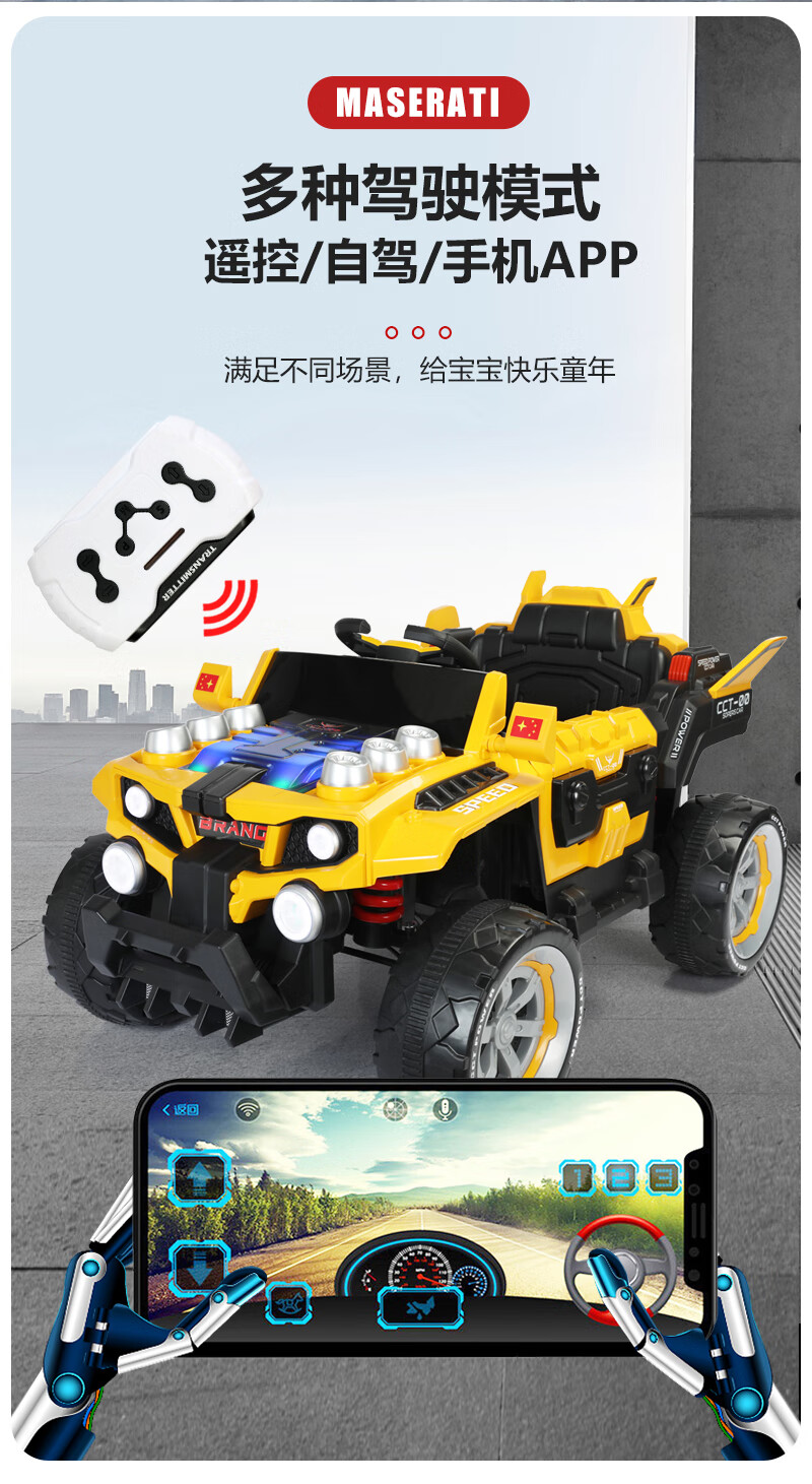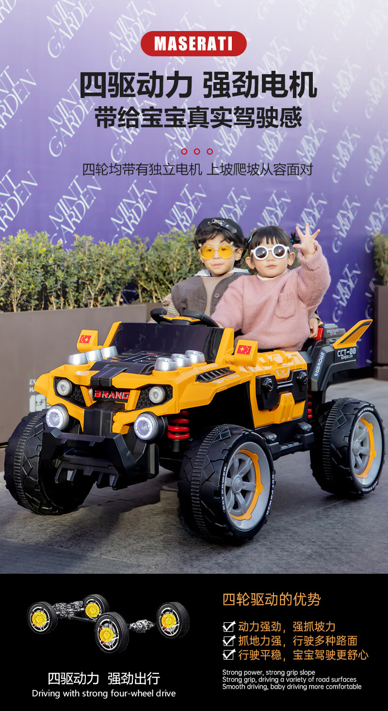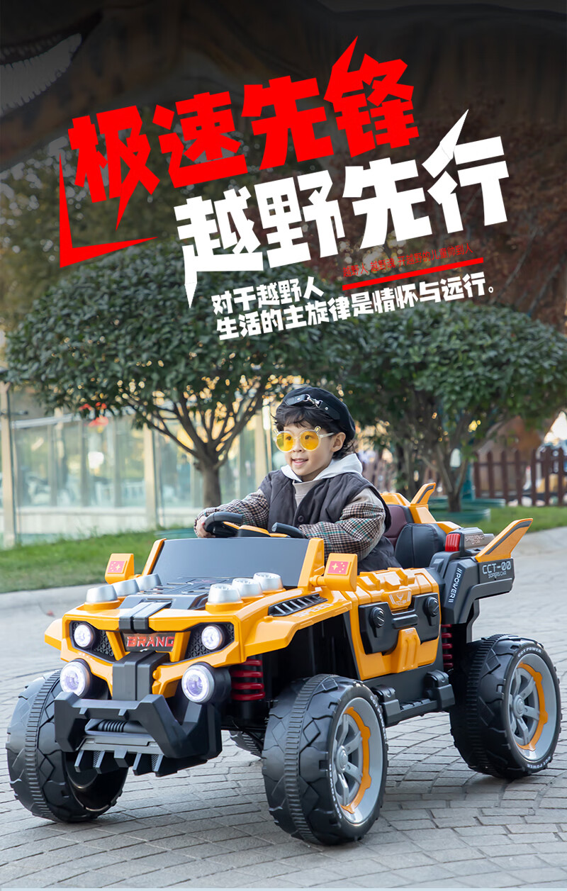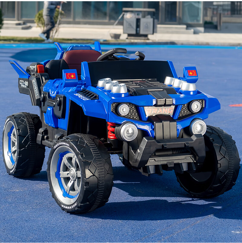 Chichengtong large electric remote control off-road vehicle for men and women can drive first birthday gift children's electric vehicle four-wheel drive four-wheel drive blue Chaowei 12V14 large battery leather seat luminous soft wheel