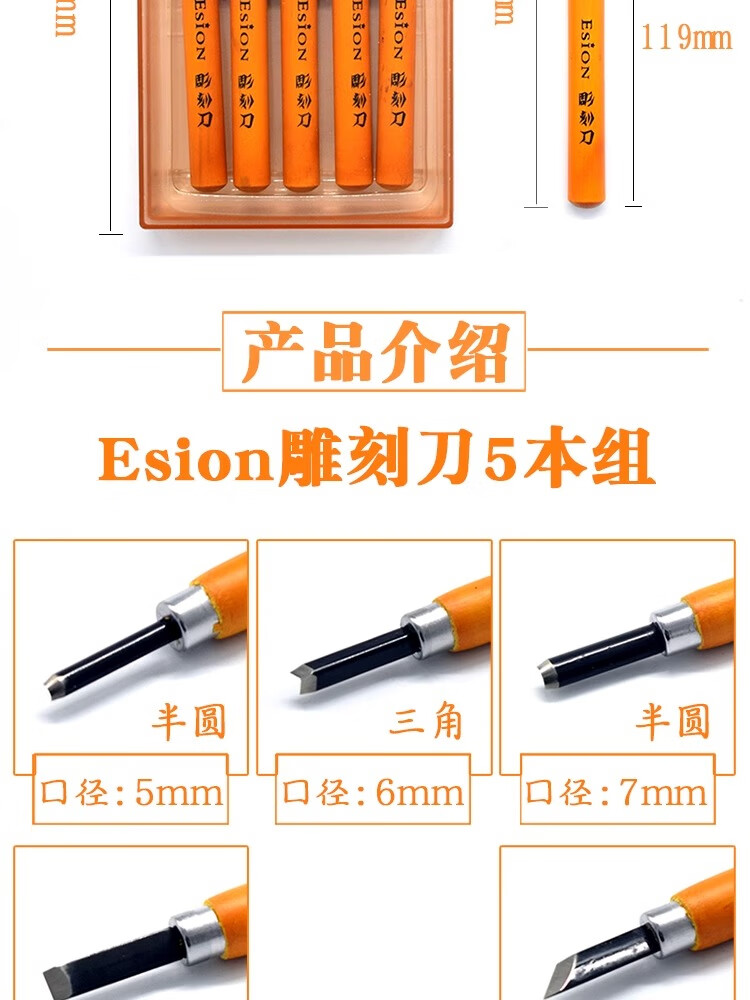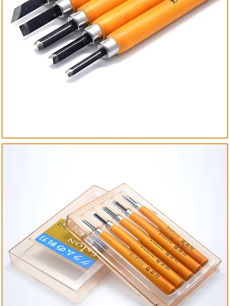 Esion Art Cuchillo para tallar madera, sello de goma, calabaza de nogal, grabado, cuchillo para tallar de acero al carbono, cuchillo esquinero, cuchillo plano, cuchillo redondo, cuchillo oblicuo, sello de goma para tallar, cuchillo para tallar en madera, juego de talla de ladrillos de goma, 5 juegos, piedra de afilar gratis