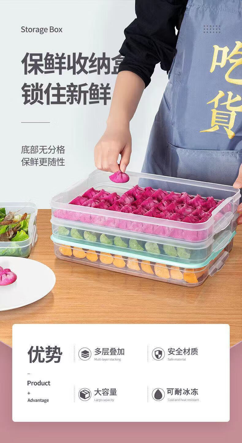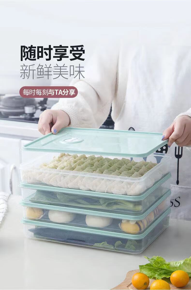 Artisan Time Home Quick-frozen Dumpling Box Multi-layer Refrigerator Frozen Dumpling Storage Box Large Food-Grade Dumplings and Wontons Extra Large and Thickened Matcha Green Matcha Green Dumpling Box 1 Layer 1 Cover Can Hold 60 Dumplings