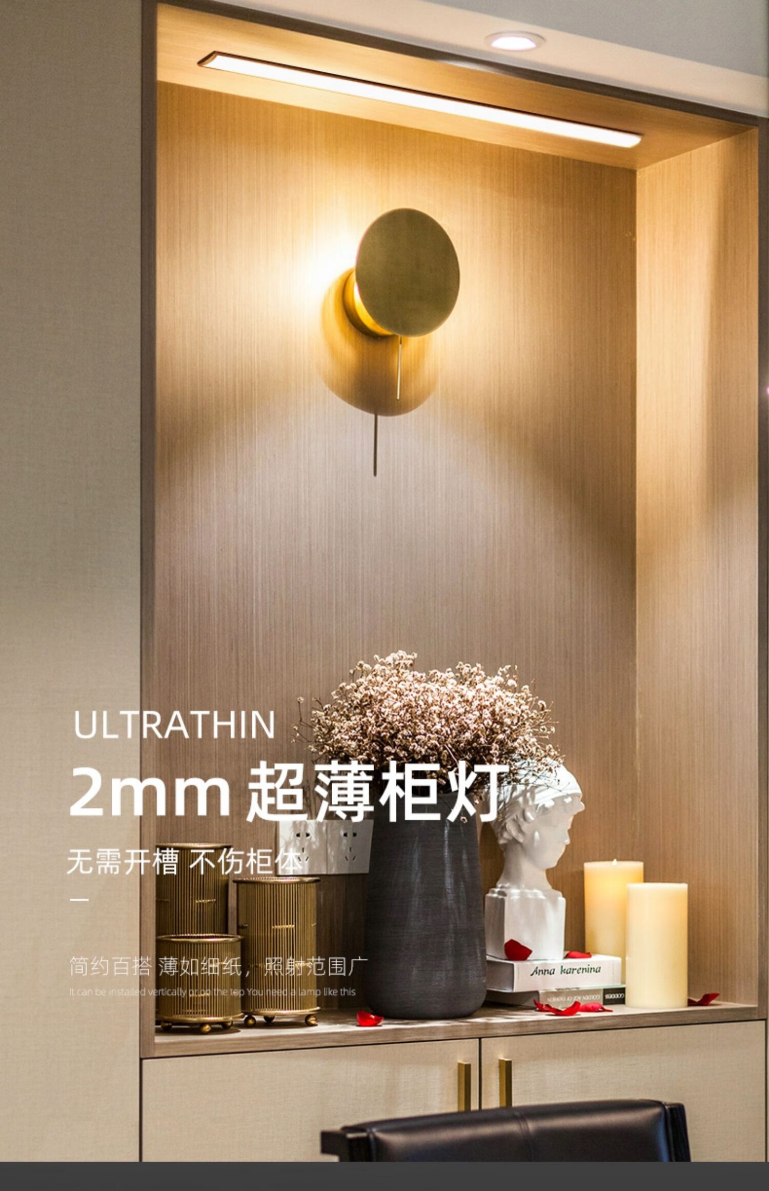 Lamp Lover 2mm slot-free ultra-thin cabinet light surface-mounted line light with wine cabinet shelf light led induction wardrobe showcase light strip surface-mounted ultra-thin shelf light-180CM