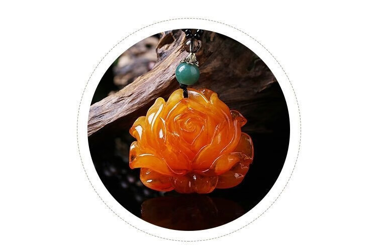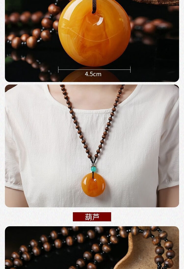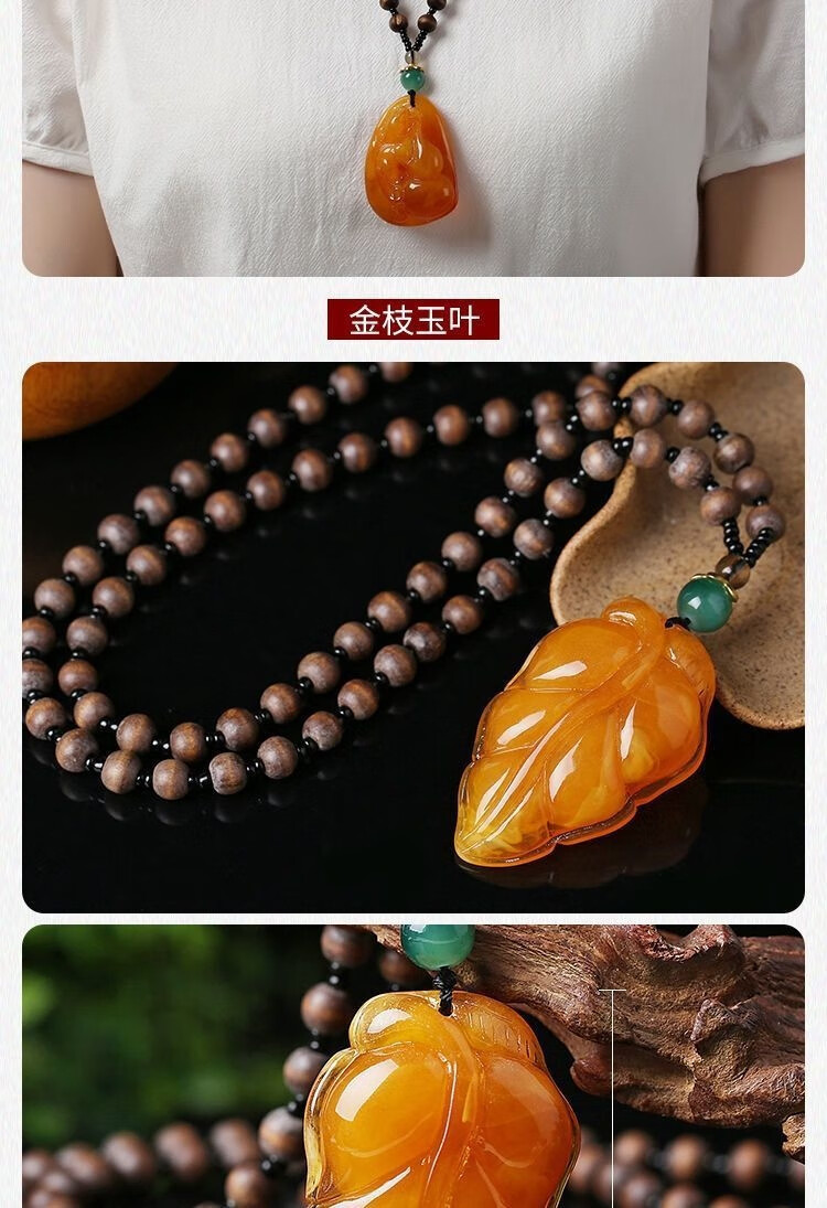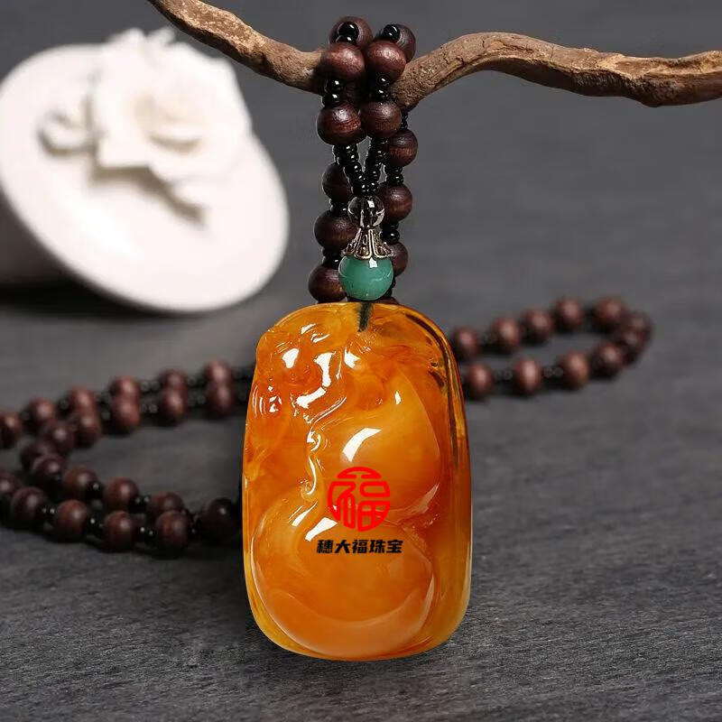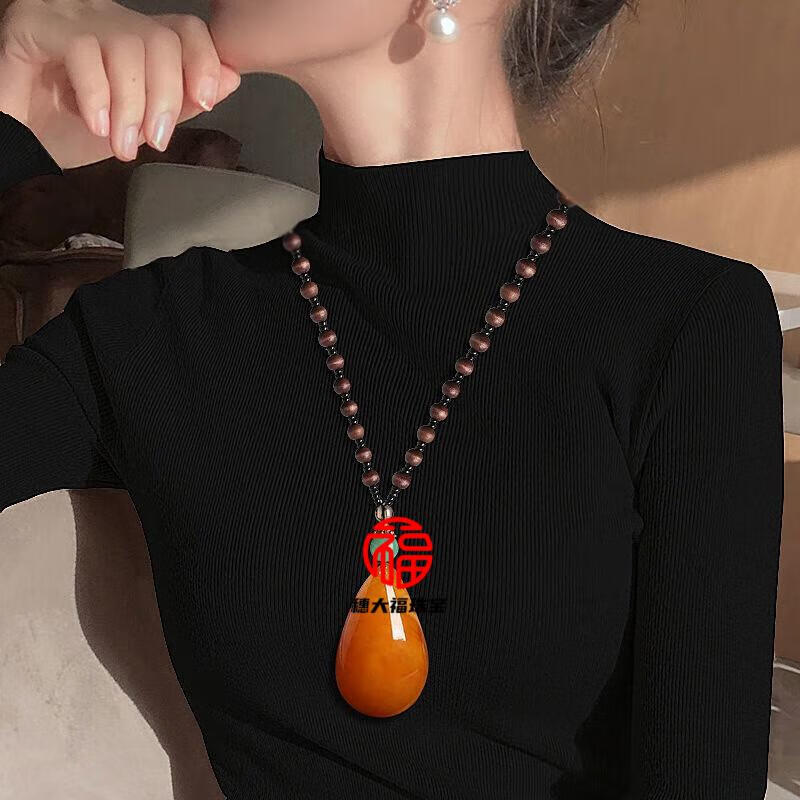 Fat Donglai same style beeswax pendant old color water drop long men and women ethnic style amber necklace chicken oil yellow square brand sweater old material beeswax water drop pendant