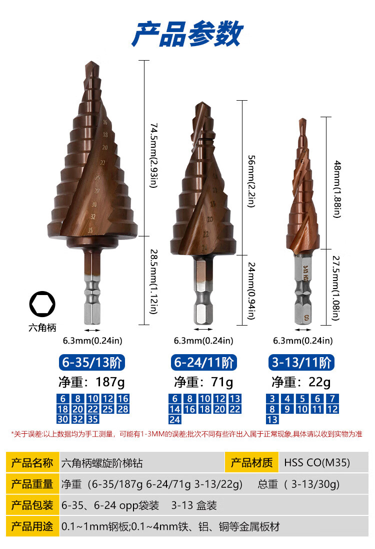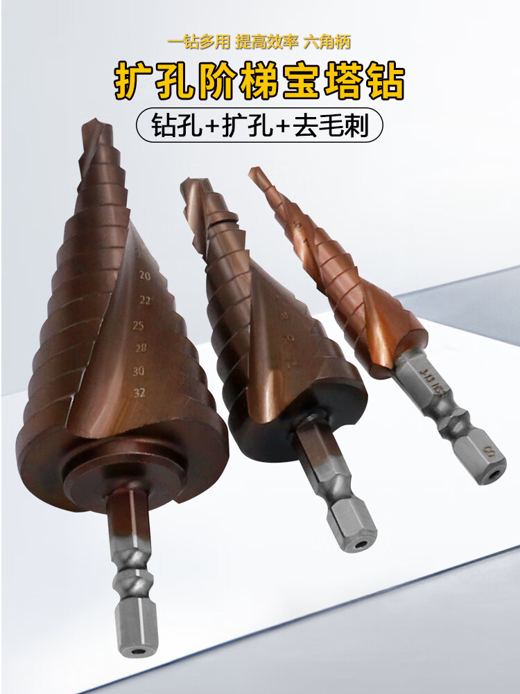M35/Co cobalt-containing material high hardness reamer drill hexagonal shank pagoda drill bit stainless steel industrial grade hole reamer M35 hexagonal shank pagoda drill bit 3-13