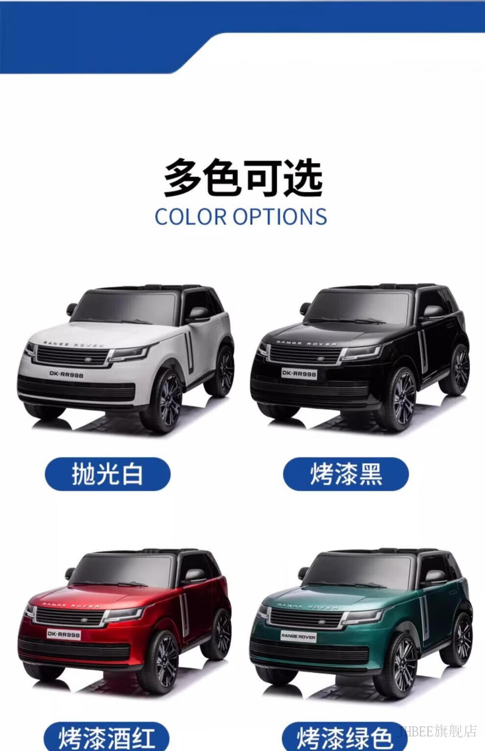 JHBEE Land Rover Range Rover children's electric car 1-6 years old four-wheeled with remote control toy car can sit in off-road car for children polished white (four-wheel drive + Bluetooth + 12V10A large battery +