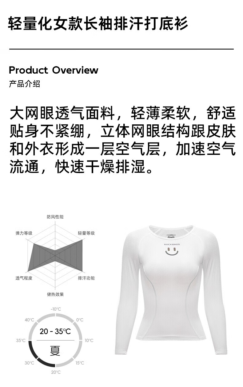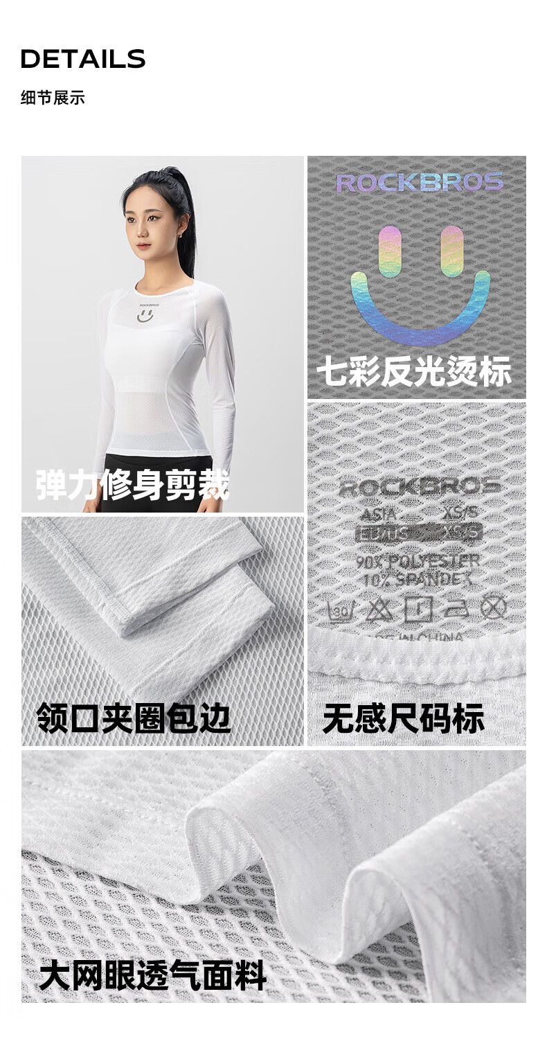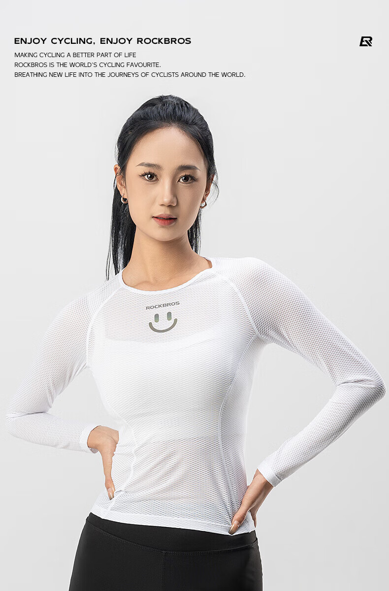 ROCKBROS sweatshirt women's quick-drying breathable long-sleeved top bottoming mountain road cycling jersey summer white M /L