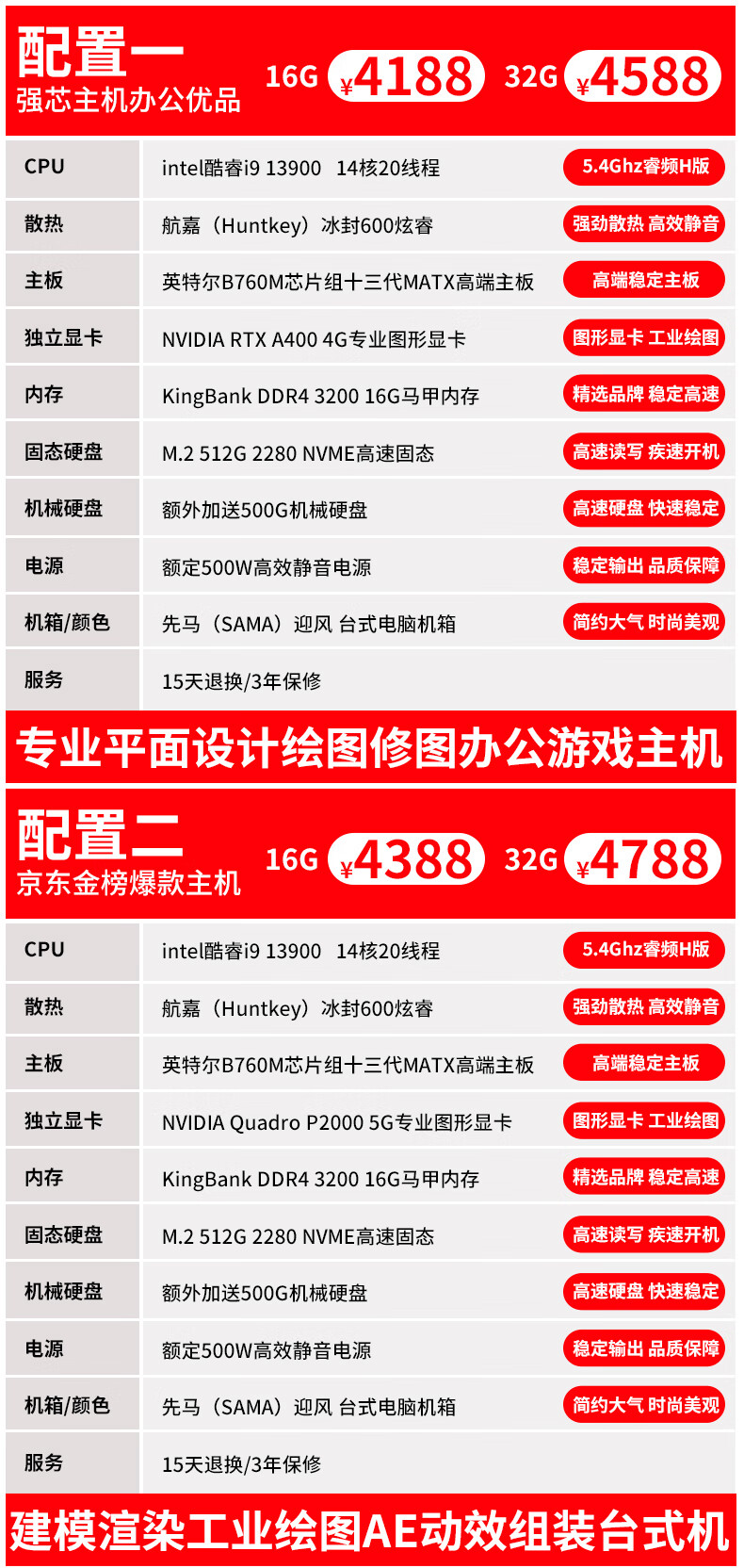 Kalijia Core i9 13900 Leadtek P2000/A1000/RTX2000Ada graphics card designer drawing assembly desktop computer host complete machine 32G configuration four 13th generation i9丨RTX4000 8G