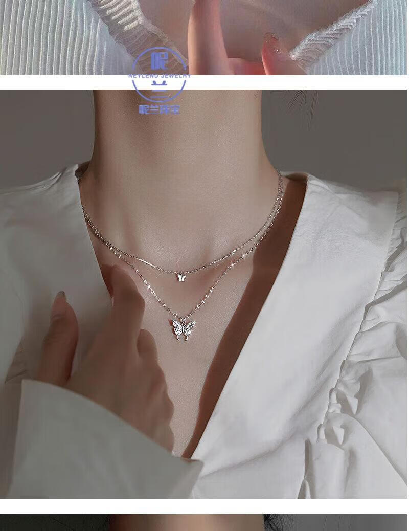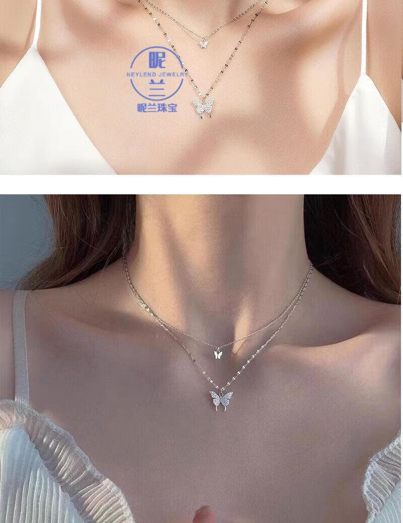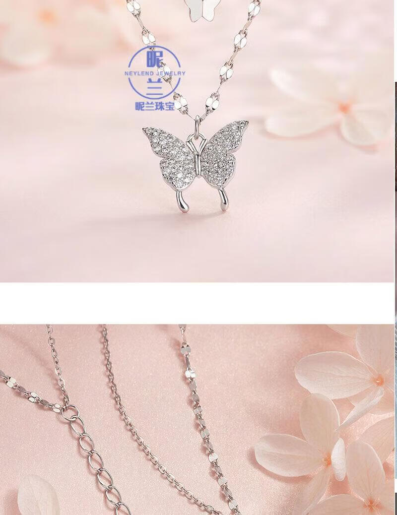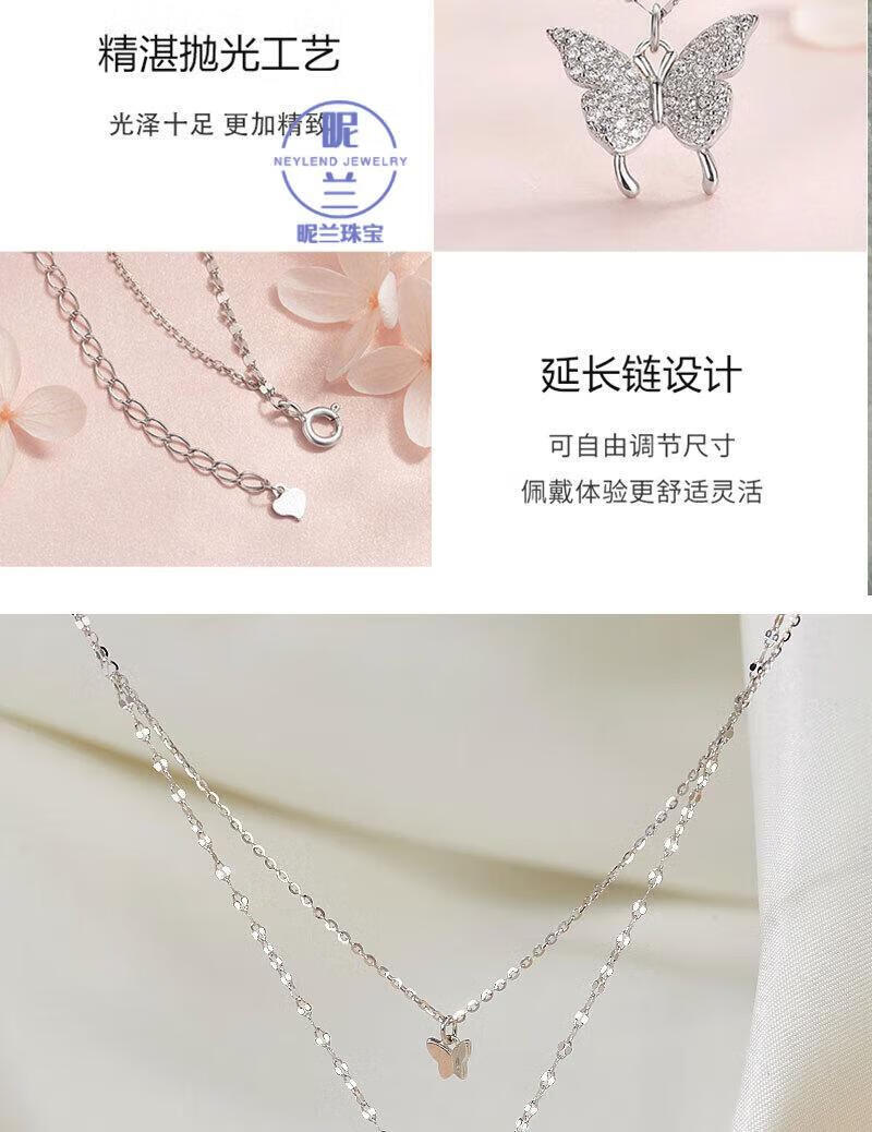Nilan PT950 platinum necklace for women, double-layer butterfly simple temperament pendant, clavicle chain for girlfriend's birthday, bow necklace, small and fresh