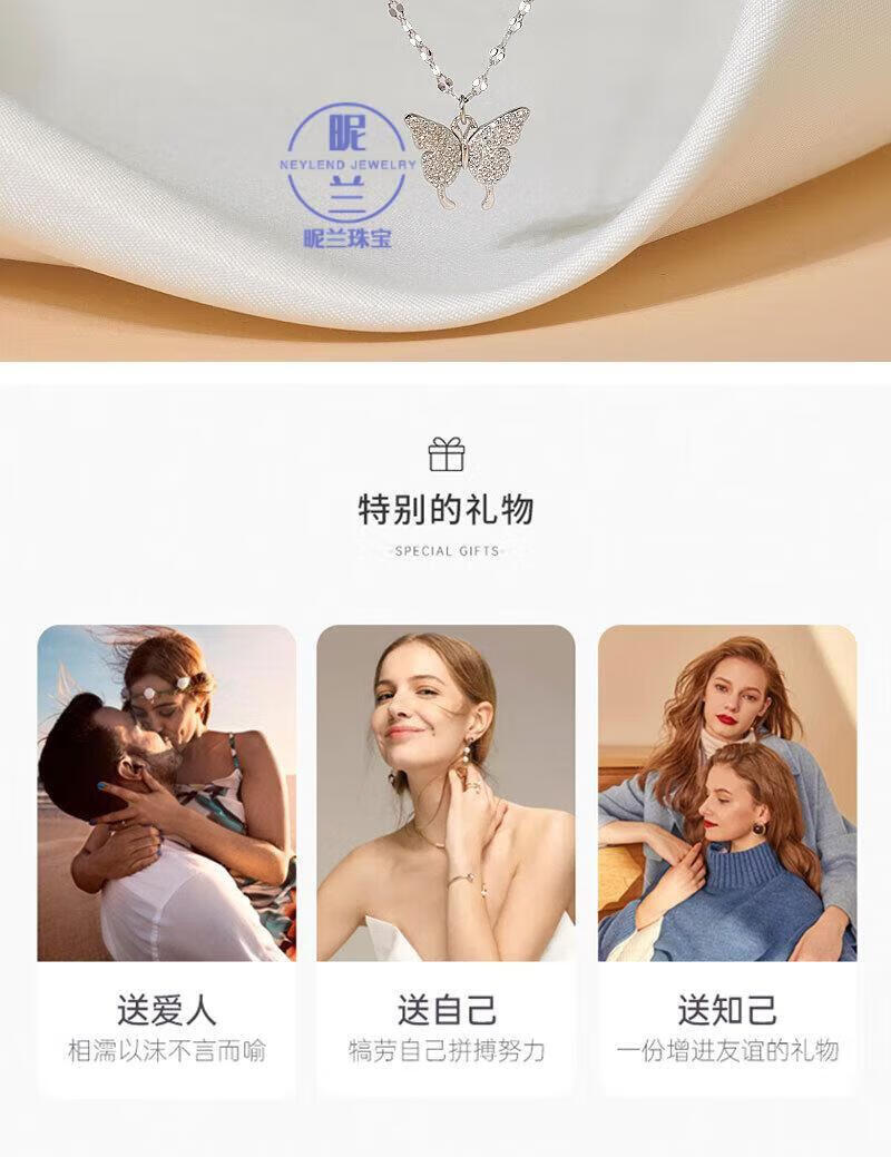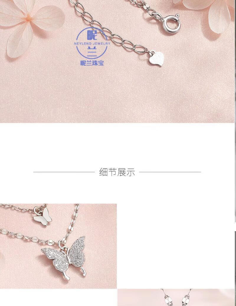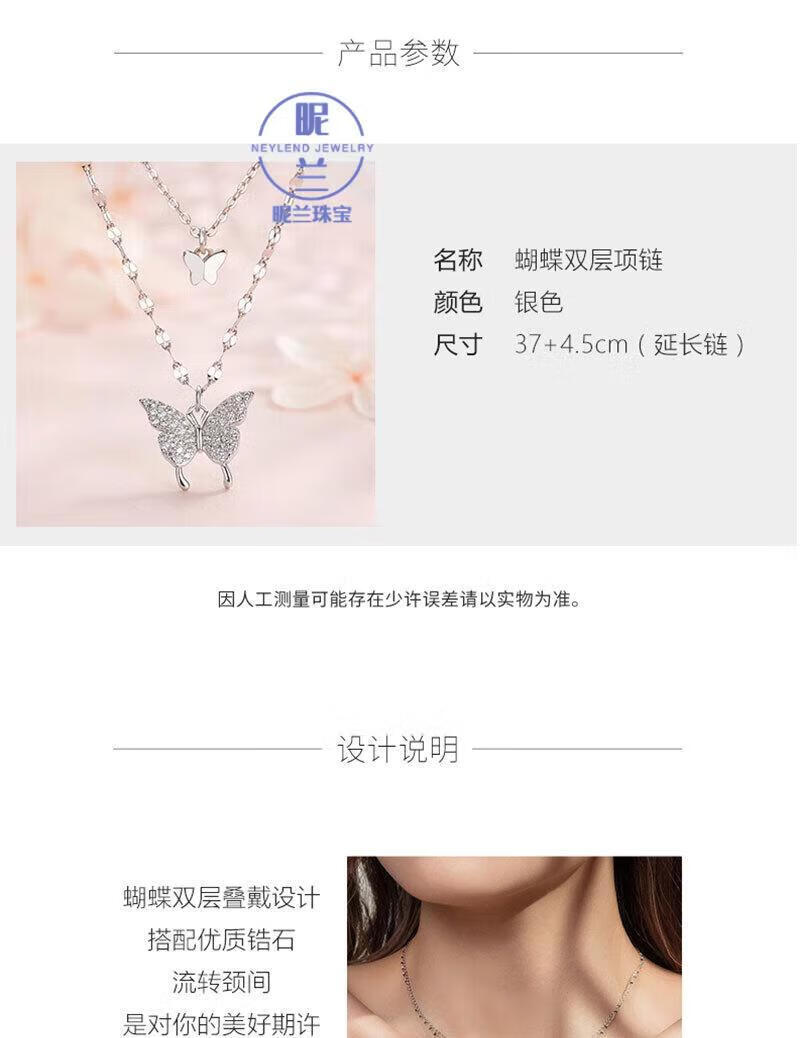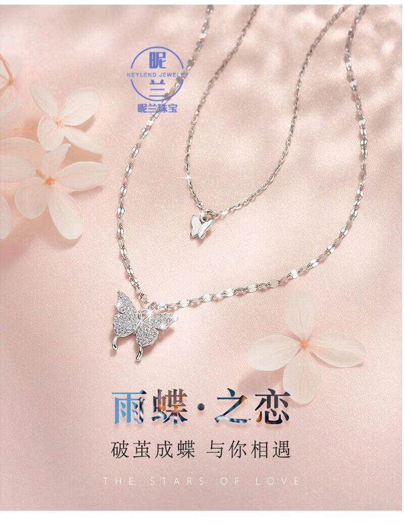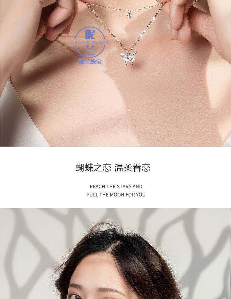 Nilan PT950 platinum necklace for women, double-layer butterfly simple temperament pendant, clavicle chain for girlfriend's birthday, bow necklace, small and fresh